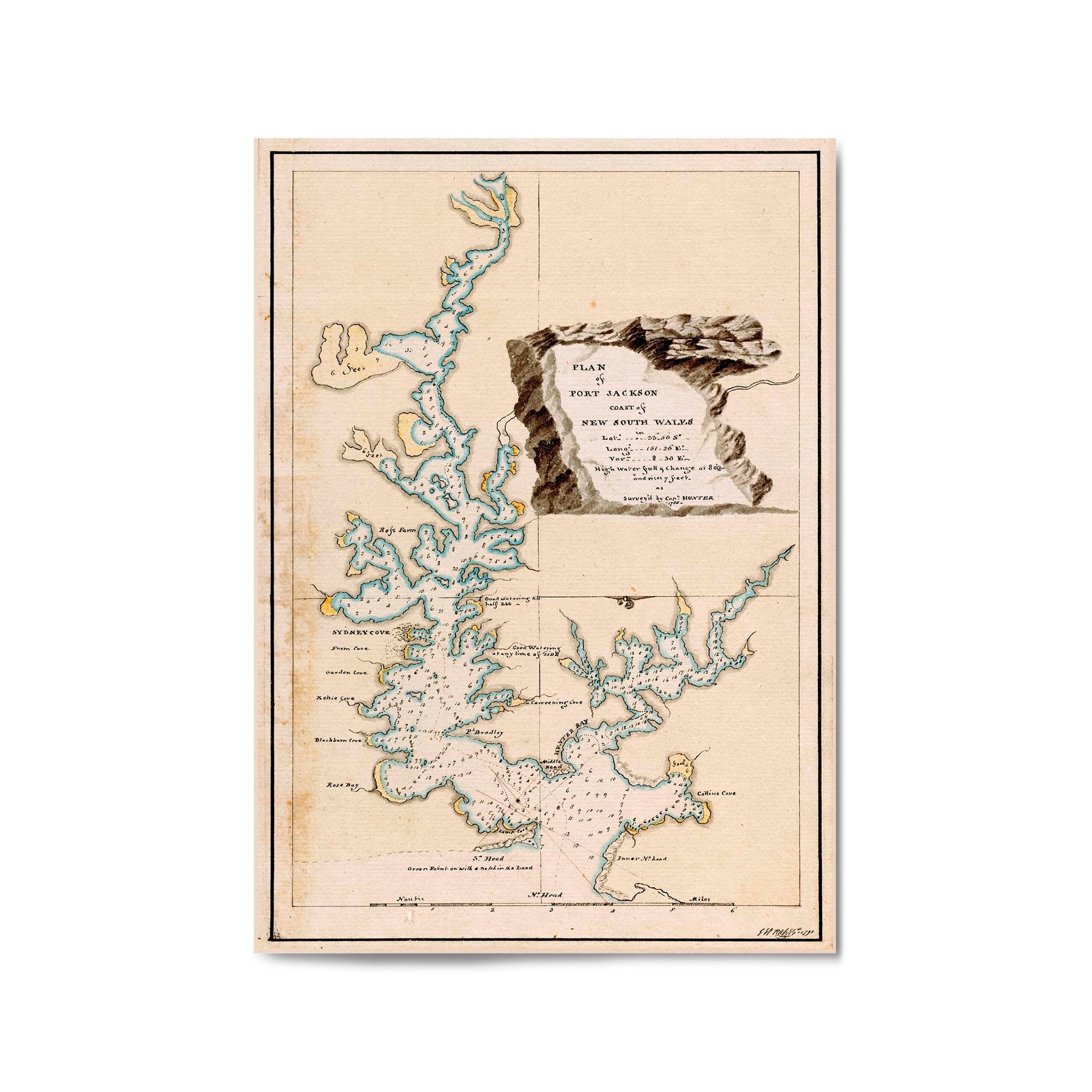 Map of Port Jackson, New South Wales. Relief is shown by bathymetric soundings.