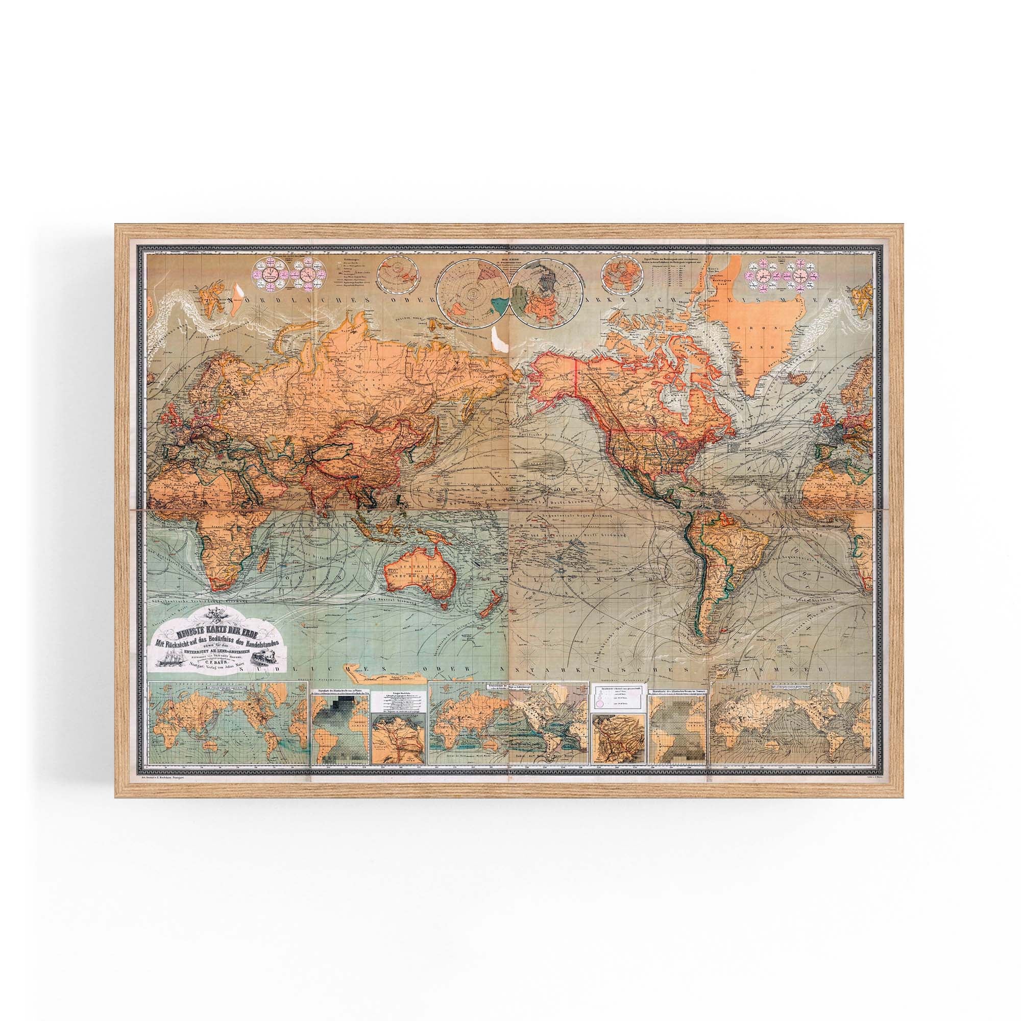 A vastly complex and enormously proportioned c. 1870 German map of the world by C. F. Baur and Traugott Bromme.