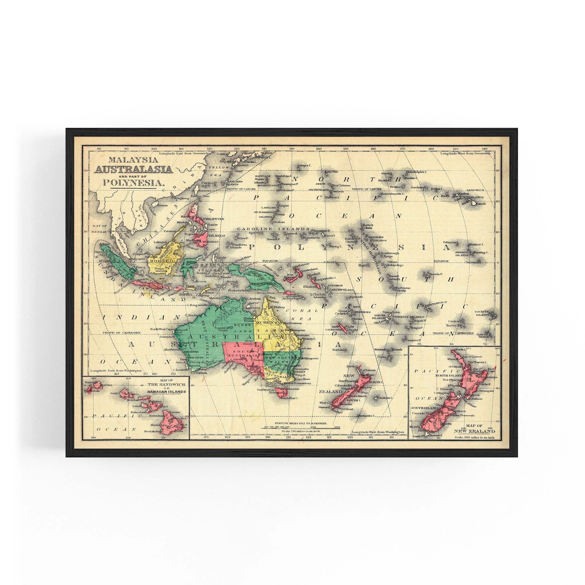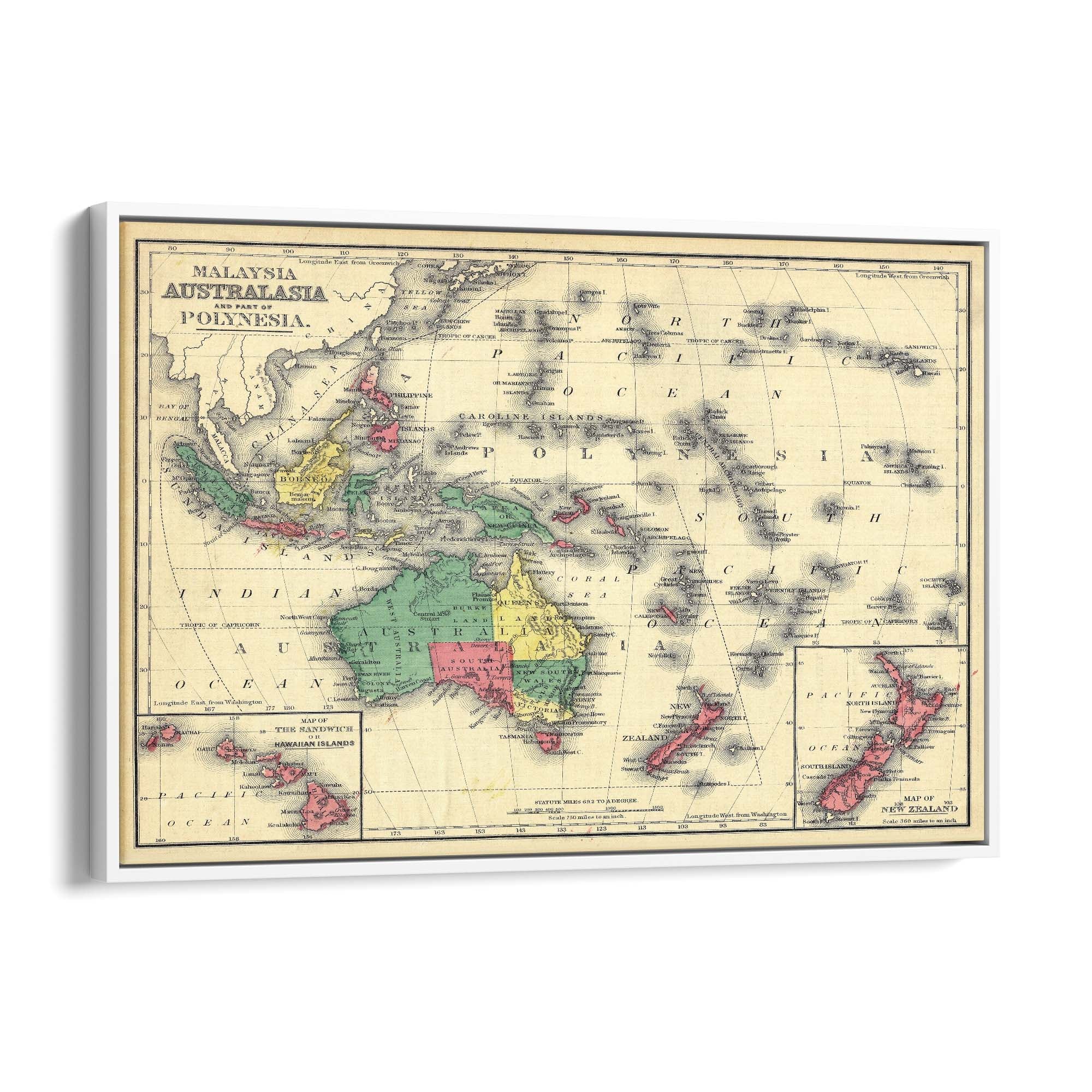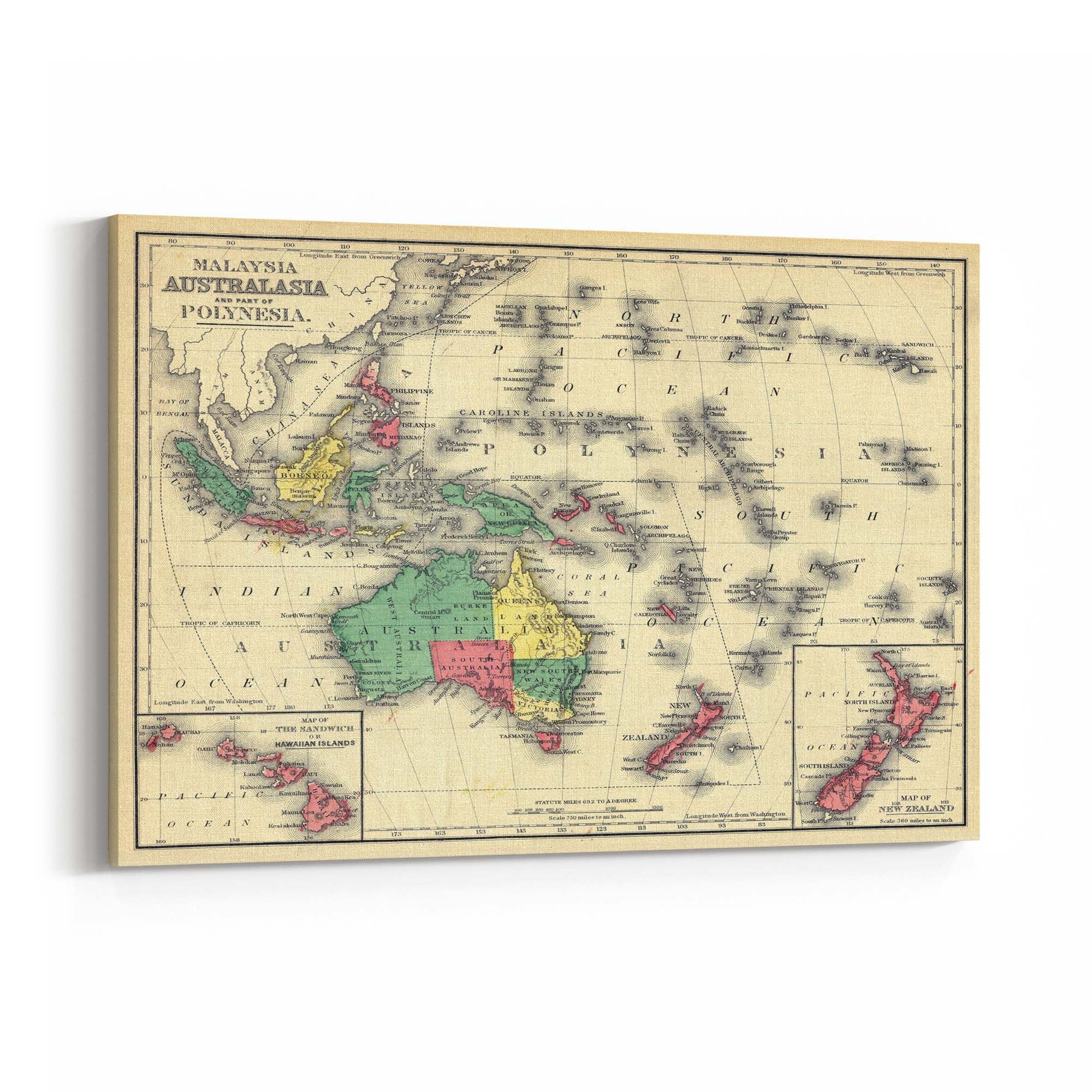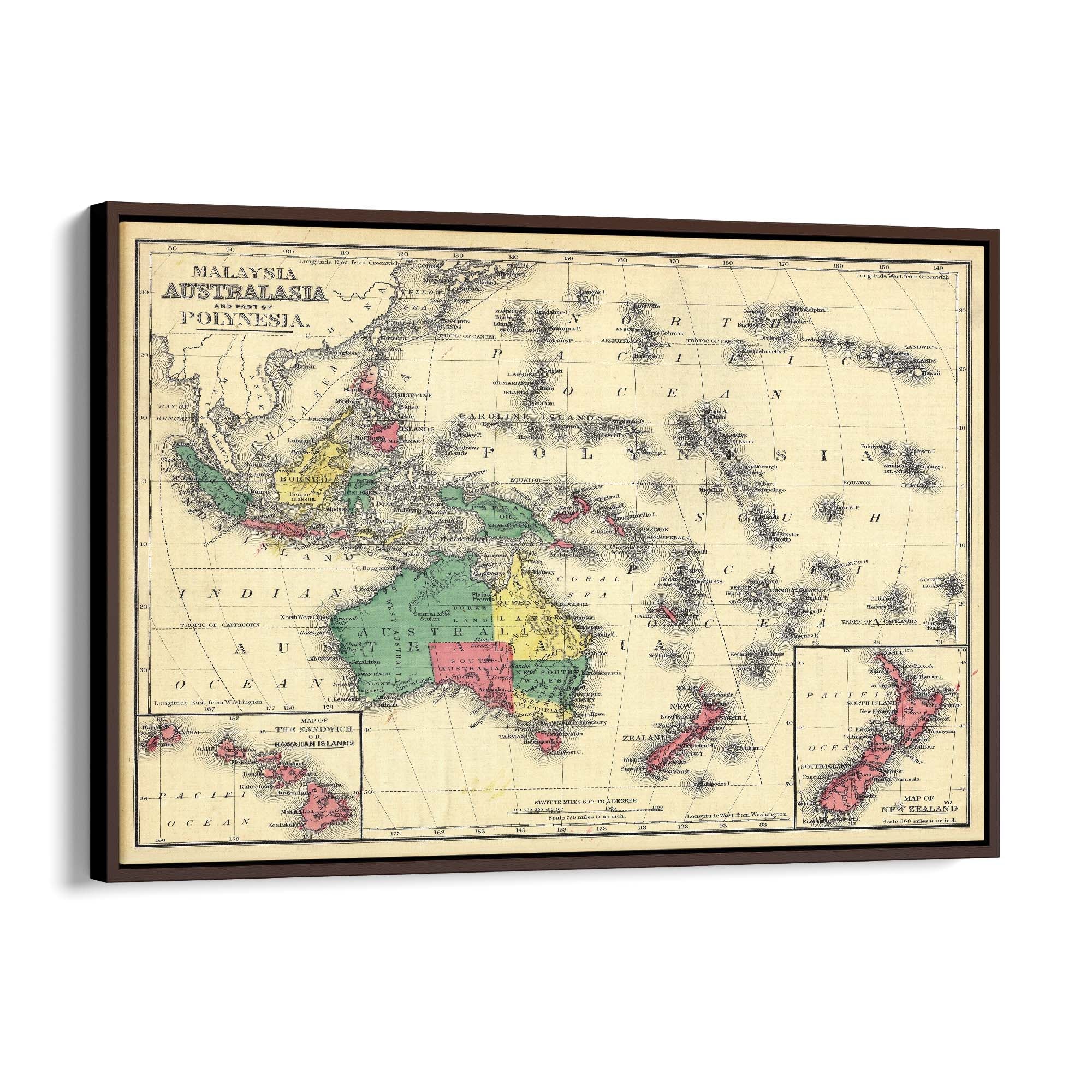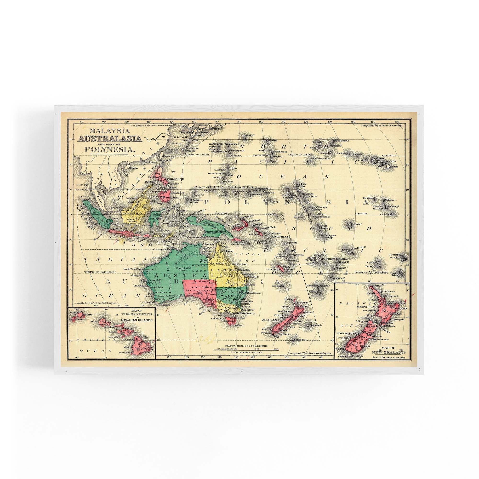 Map showing Australasia, Malaysia, New Zealand and part of Polynesia.