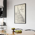 If you choose the "Unframed Print" option, you will receive an unframed paper print of your map. The paper we use to print on is 250 GSM museum-quality, thick, durable, matte paper (non-reflective & non-glossy). The inks we use are high-quality and UV protected and they will last a lifetime. This option is commonly chosen by those who wish to frame the map themselves.
