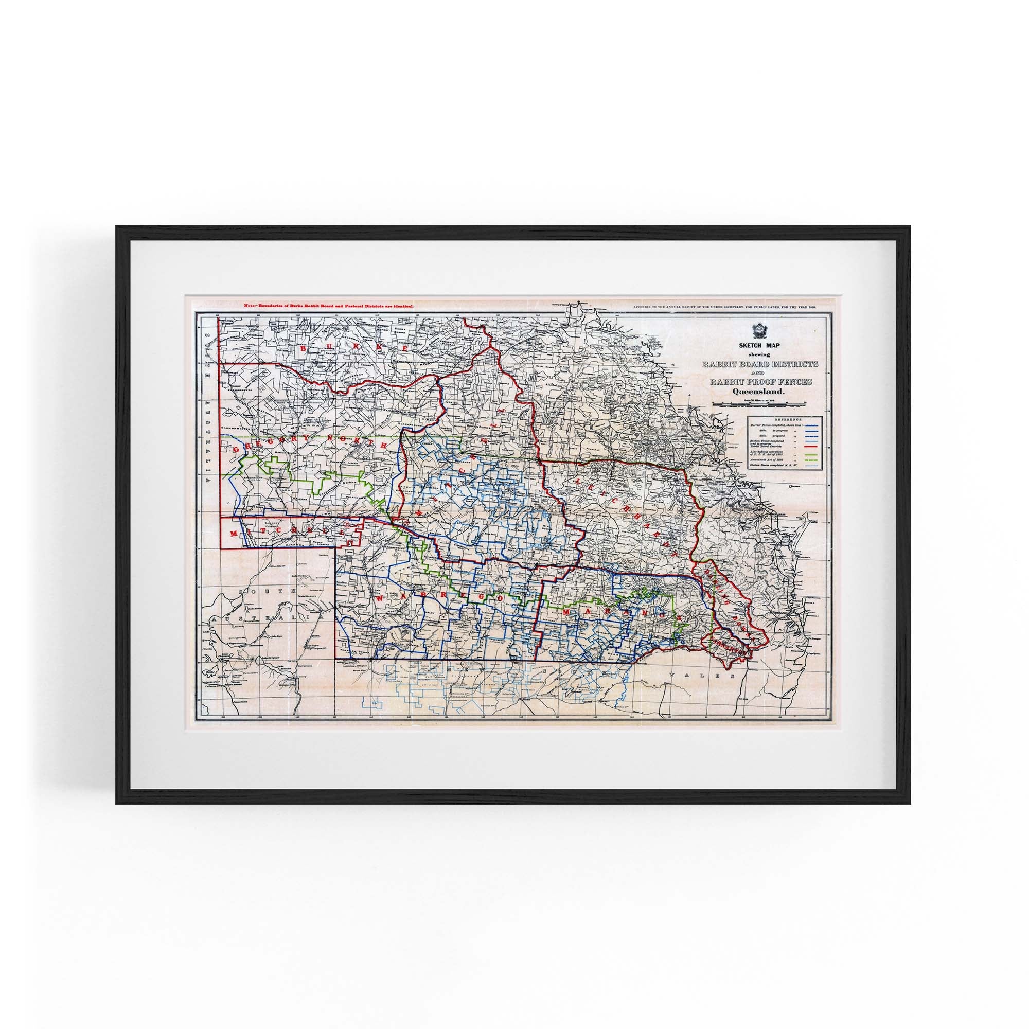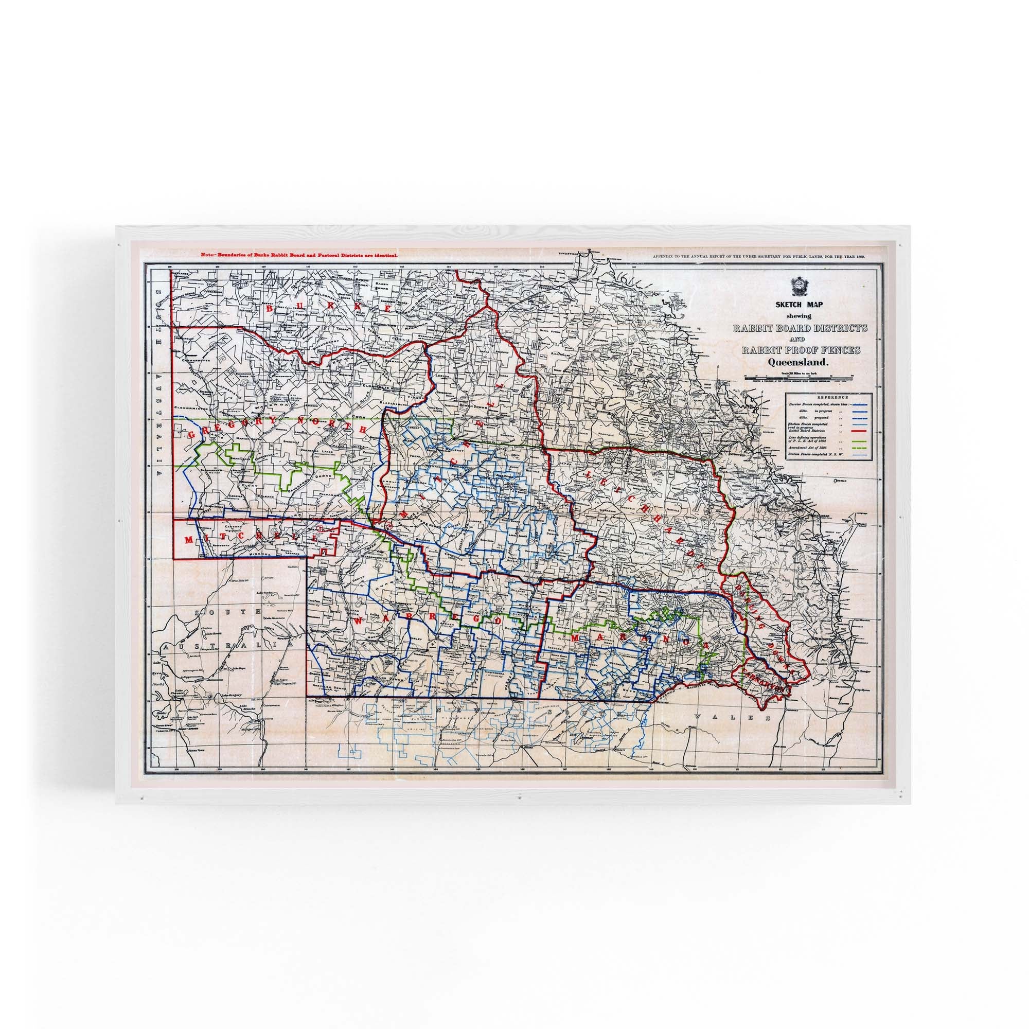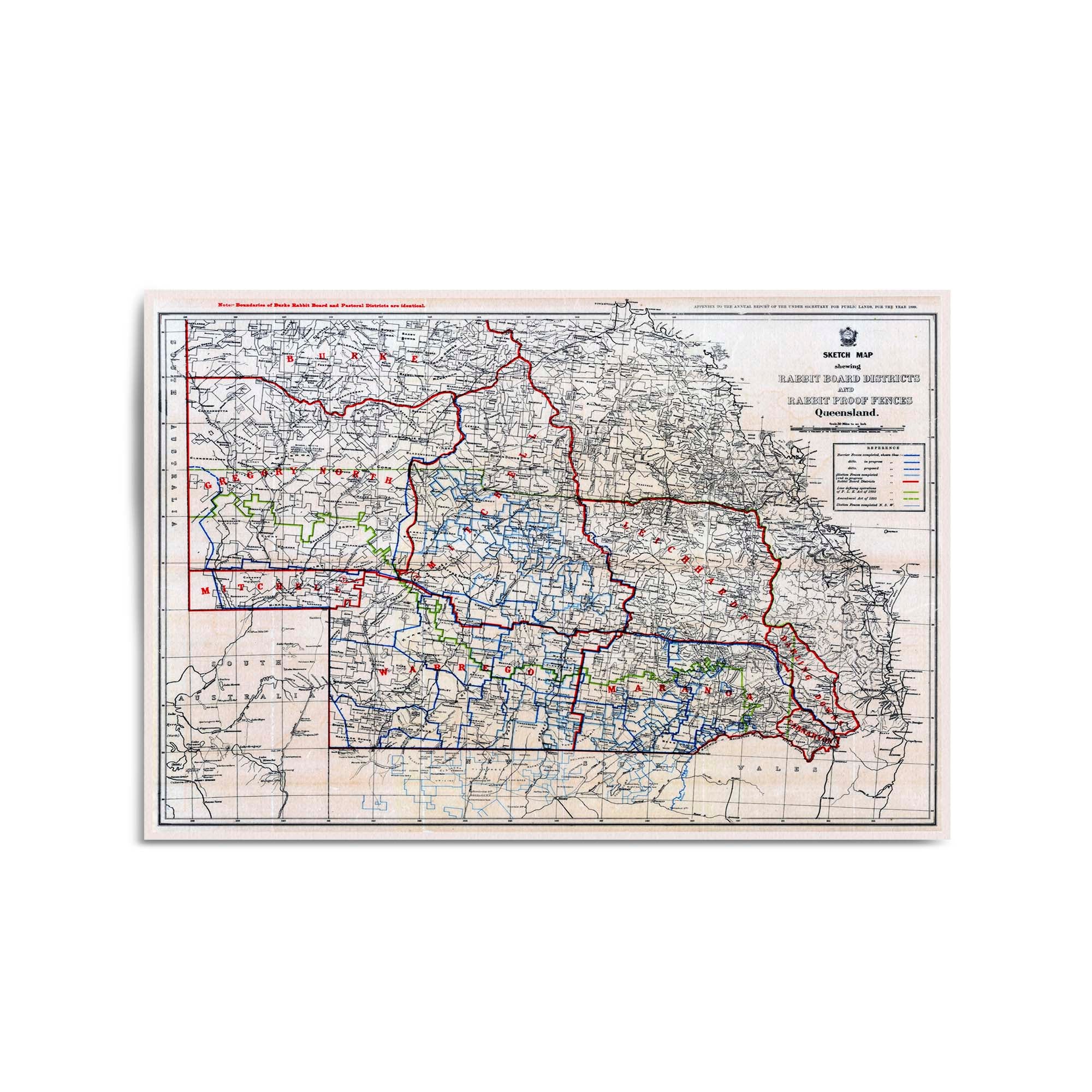 1900 Map of Queensland Showing Rabbit Proof Fences