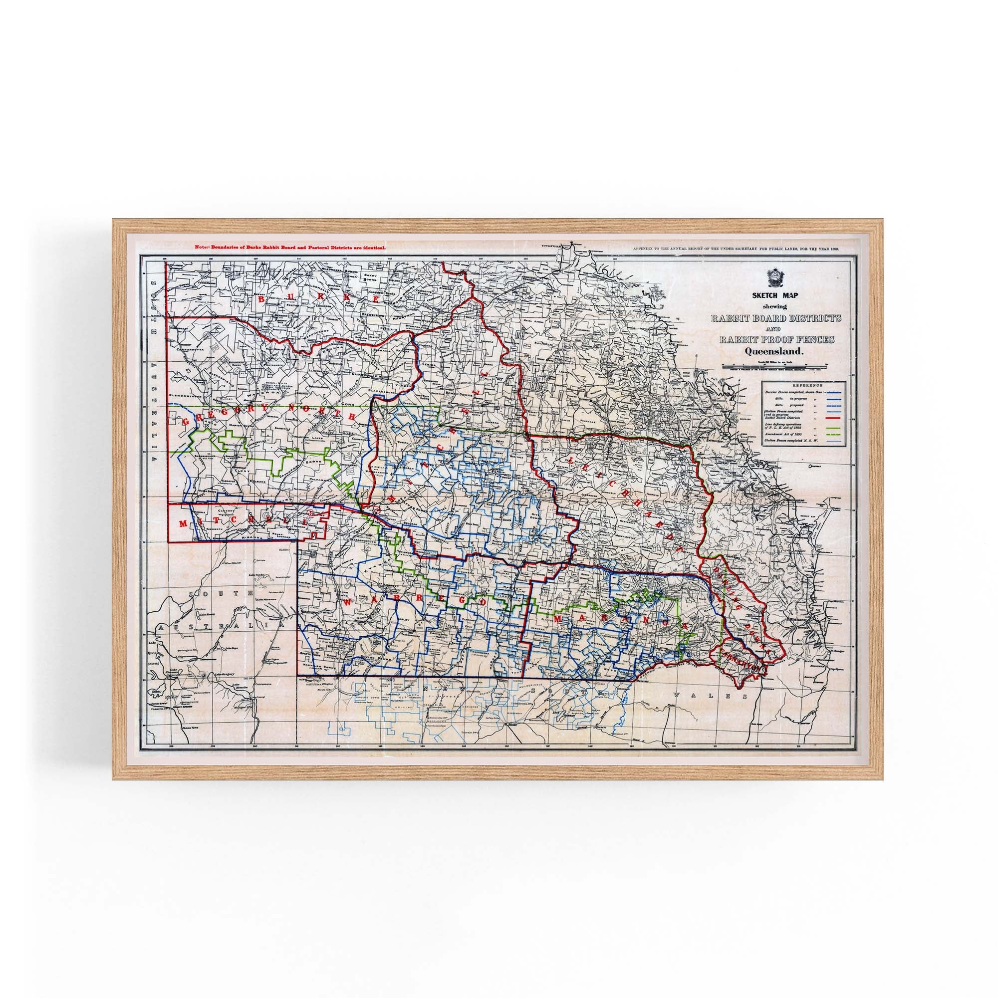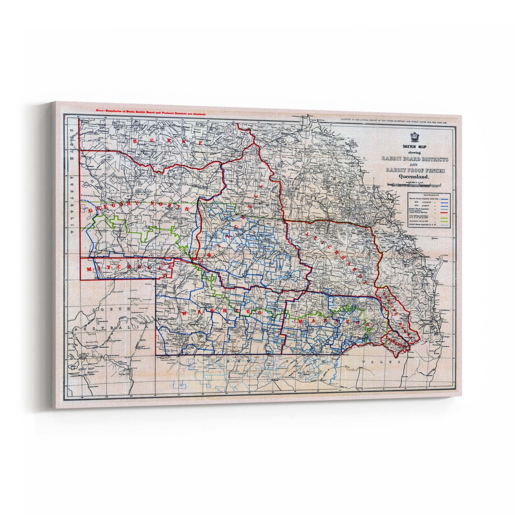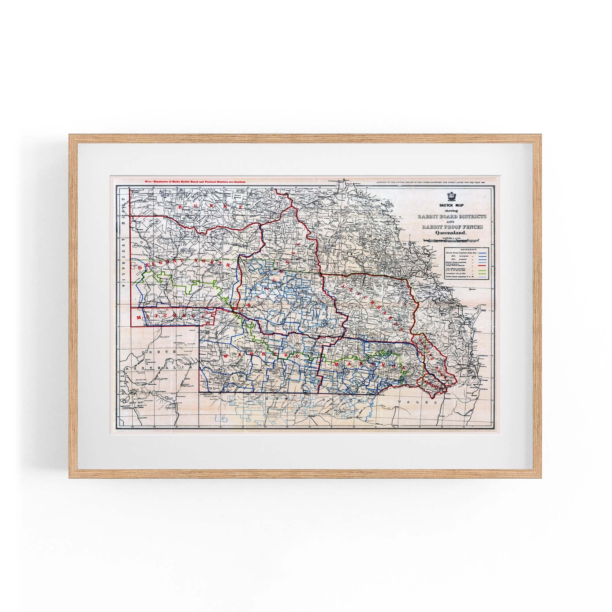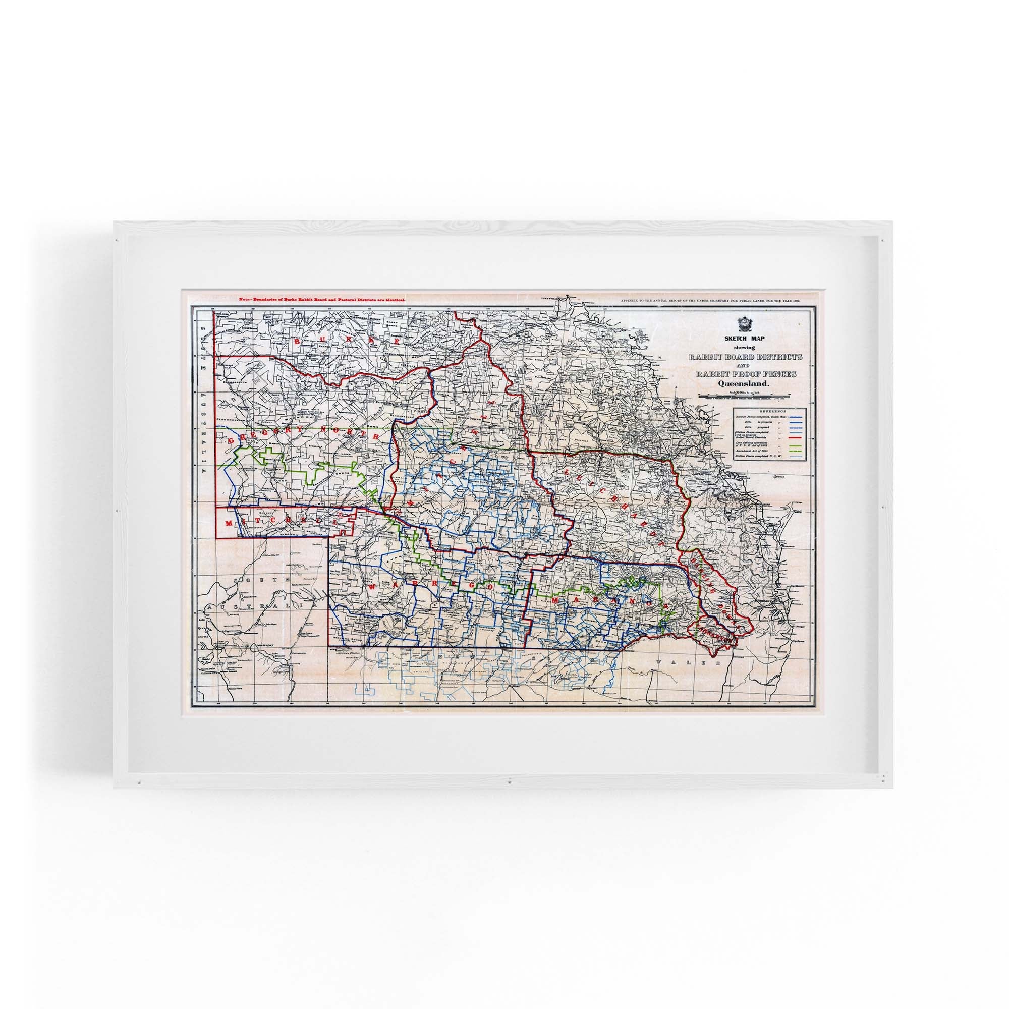 1900 Map of Queensland Showing Rabbit Proof Fences
