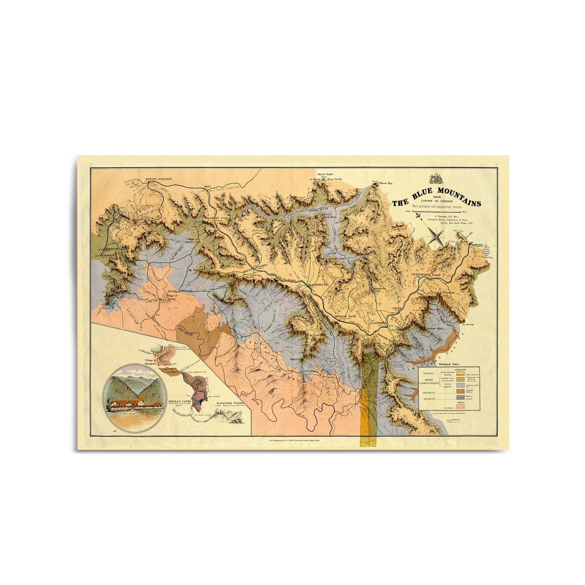 Map of the Blue Mountains, New South Wales. From Lawson to Lithgow. With relief shown by hachures and rock drawing.