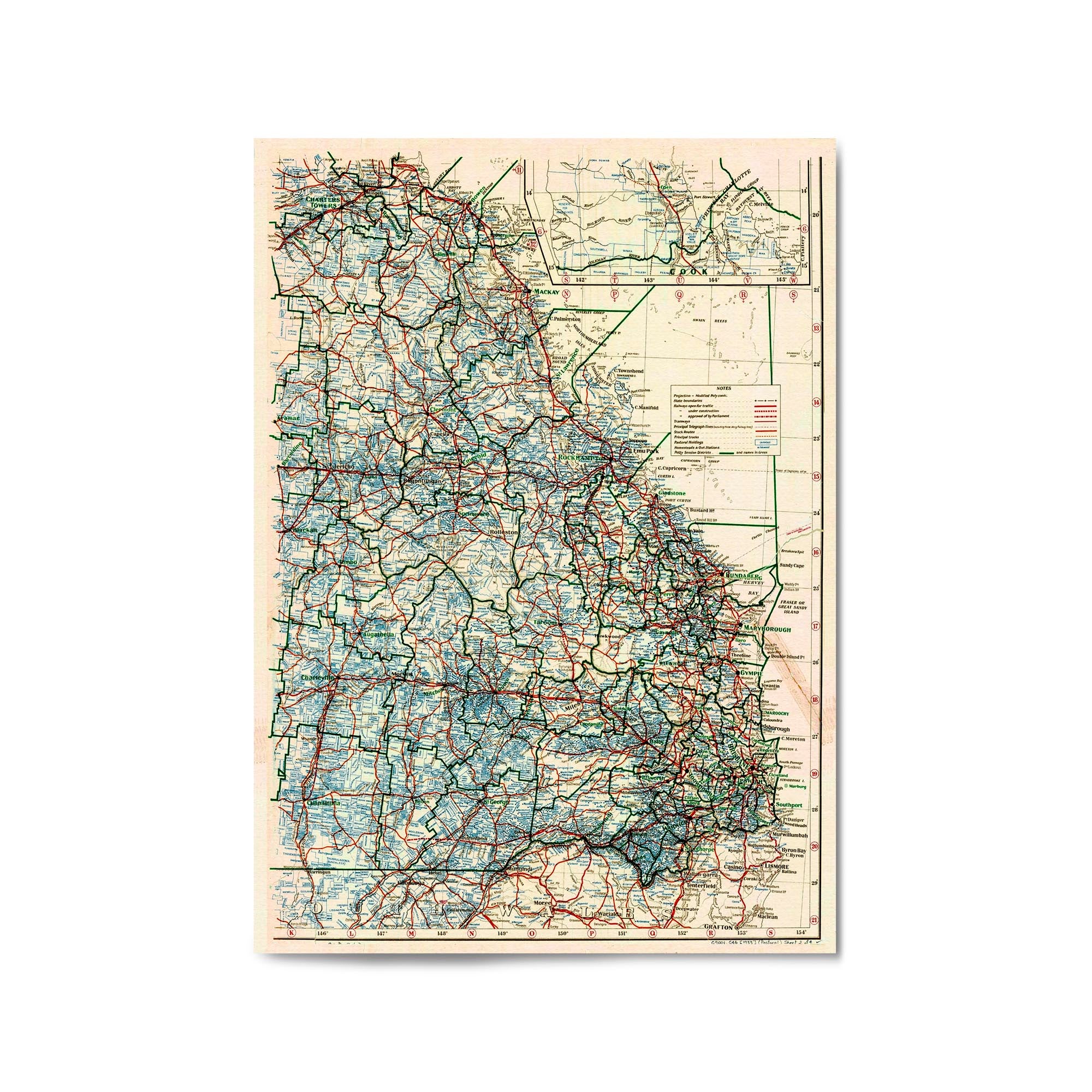 State Map of Queensland, showing MacKay to Surfers Paradise.