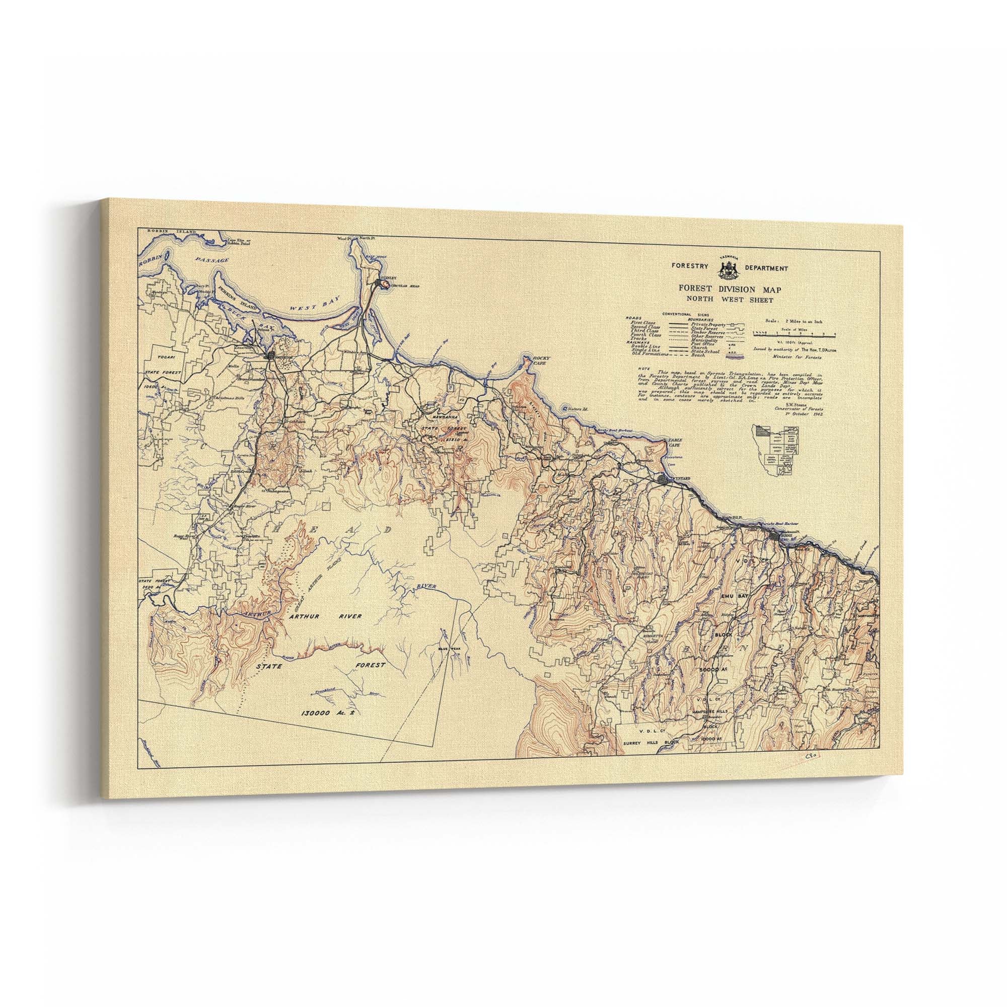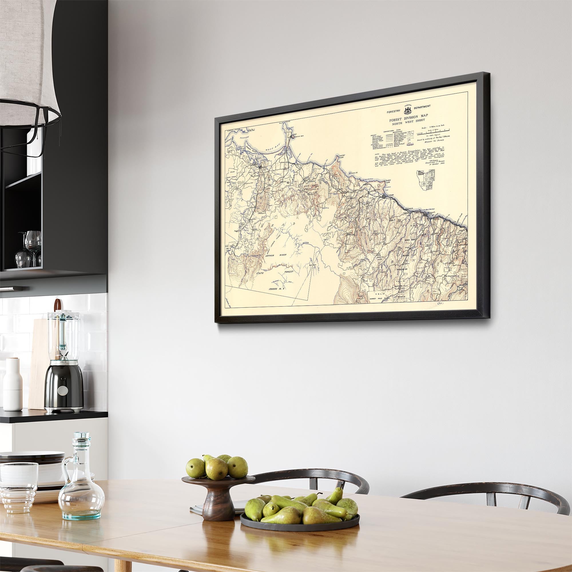 Recently moving to Harcourt and being interested in the history of the area, it seemed fitting to purchase a vintage map of the area which is displayed on our kitchen wall for us to study easily, identifying the block of land we bought. Nicely framed too.