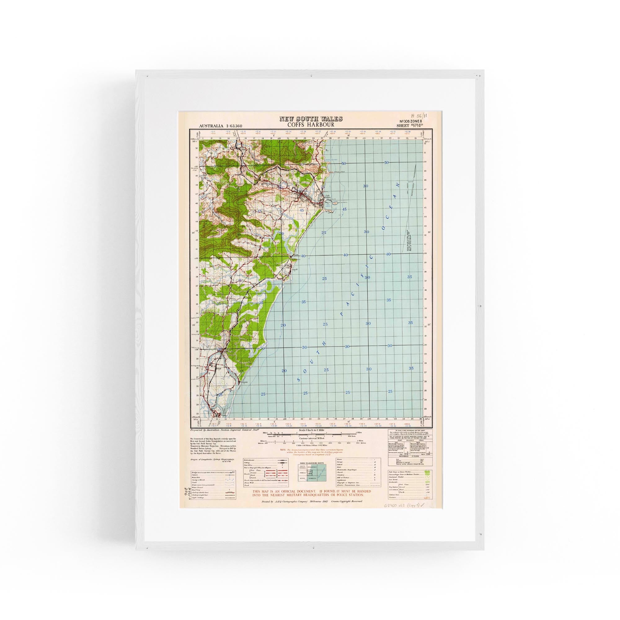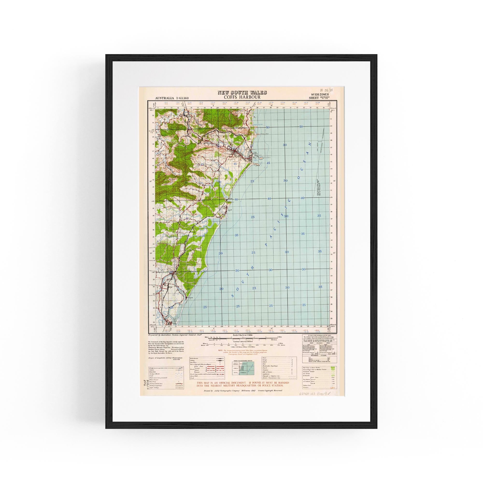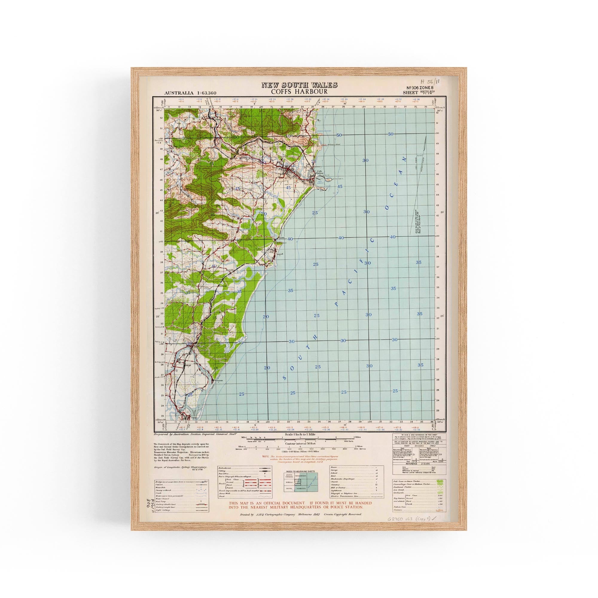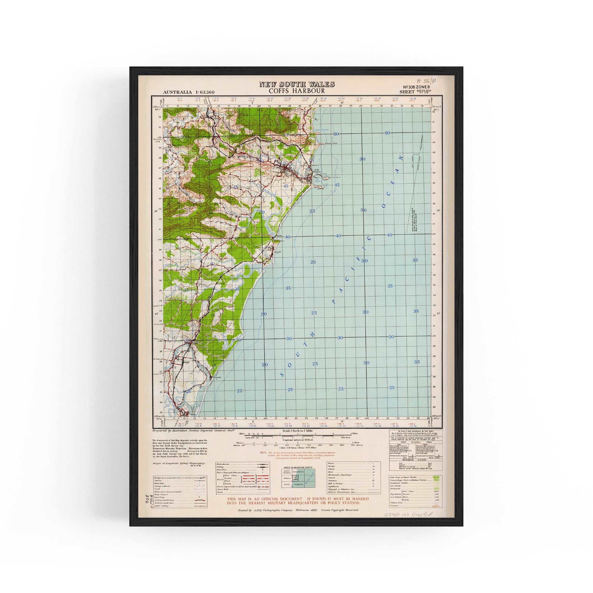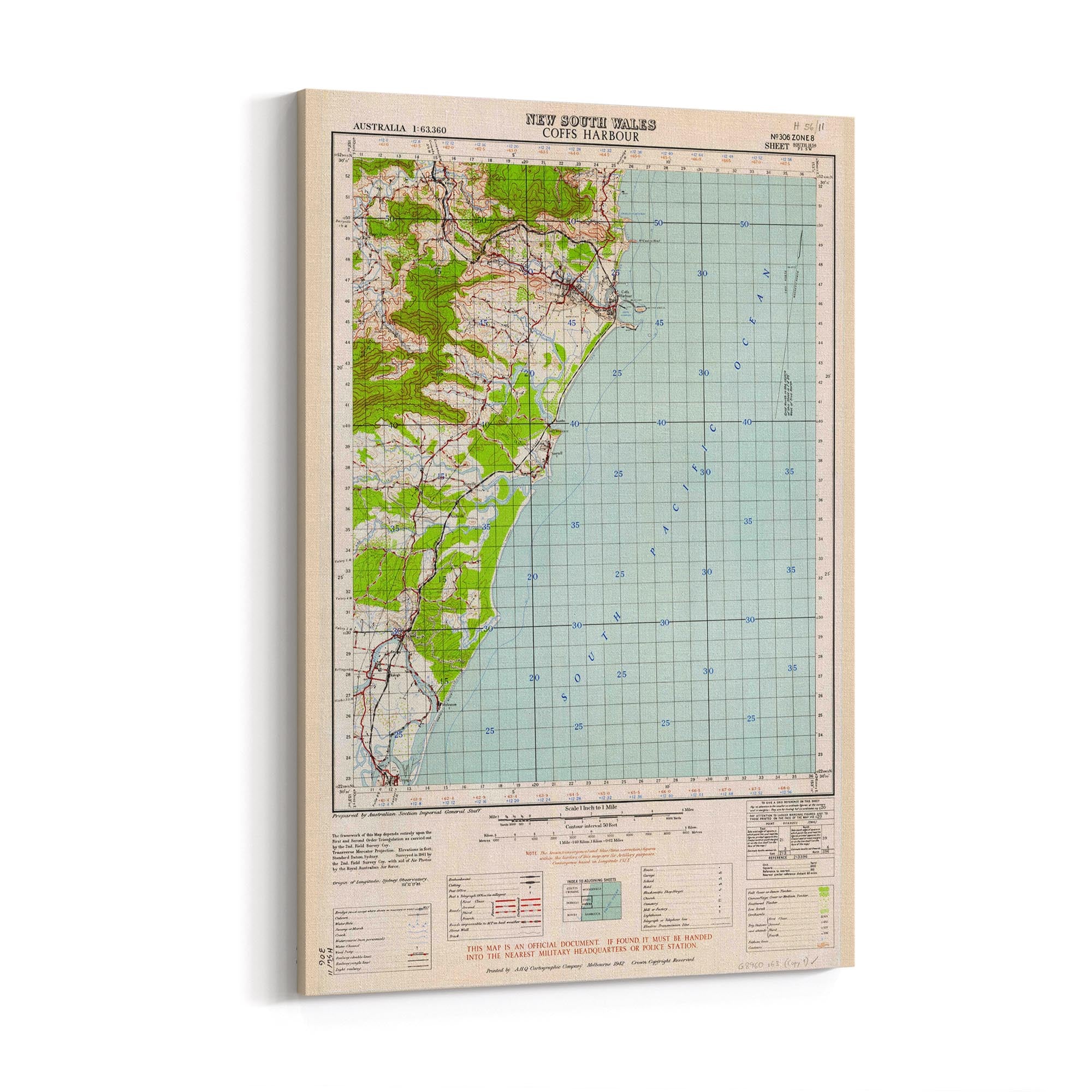 Topographic map of Coffs Harbour region, New South Wales. Relief is shown by hachures and spot heights. Depth is shown bathymetric soundings and isolines.
