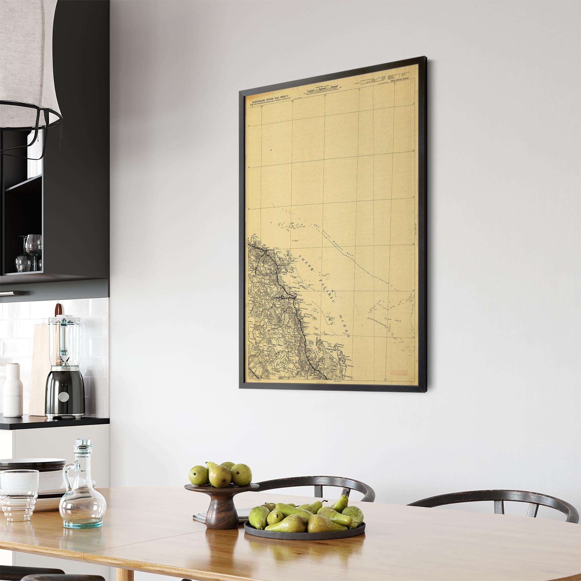 Recently moving to Harcourt and being interested in the history of the area, it seemed fitting to purchase a vintage map of the area which is displayed on our kitchen wall for us to study easily, identifying the block of land we bought. Nicely framed too.