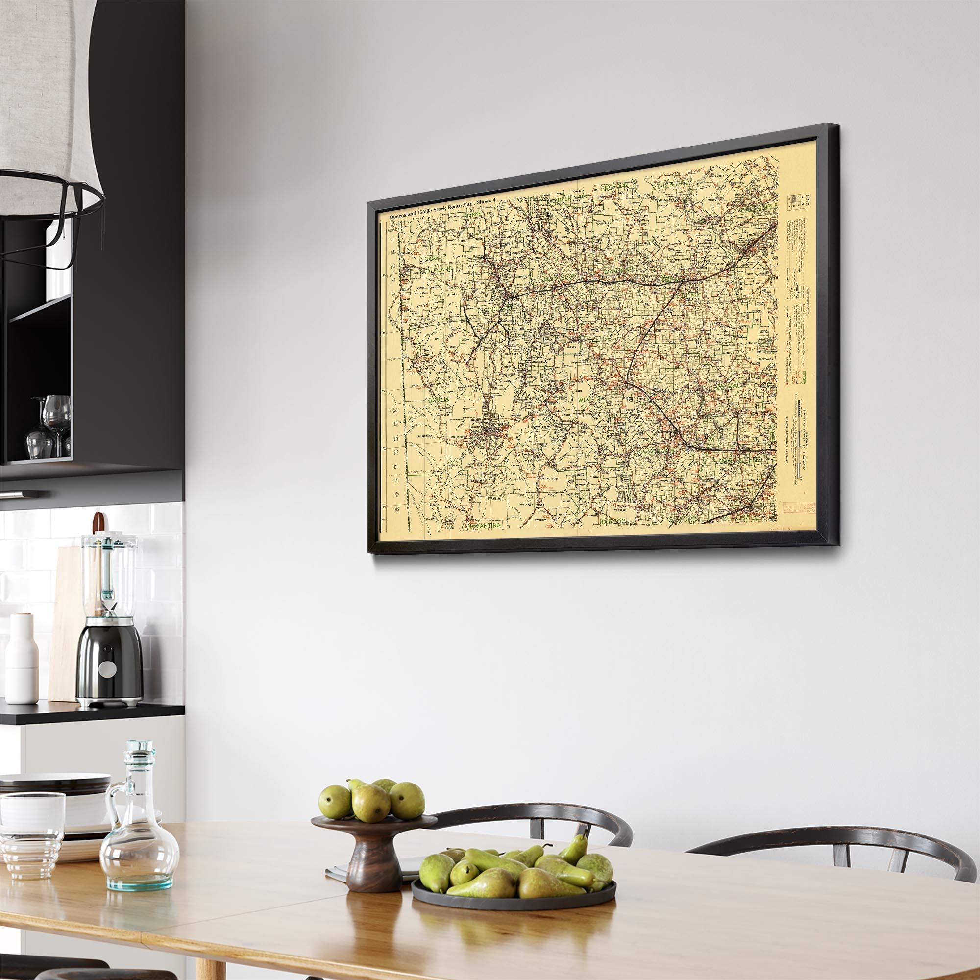 Recently moving to Harcourt and being interested in the history of the area, it seemed fitting to purchase a vintage map of the area which is displayed on our kitchen wall for us to study easily, identifying the block of land we bought. Nicely framed too.