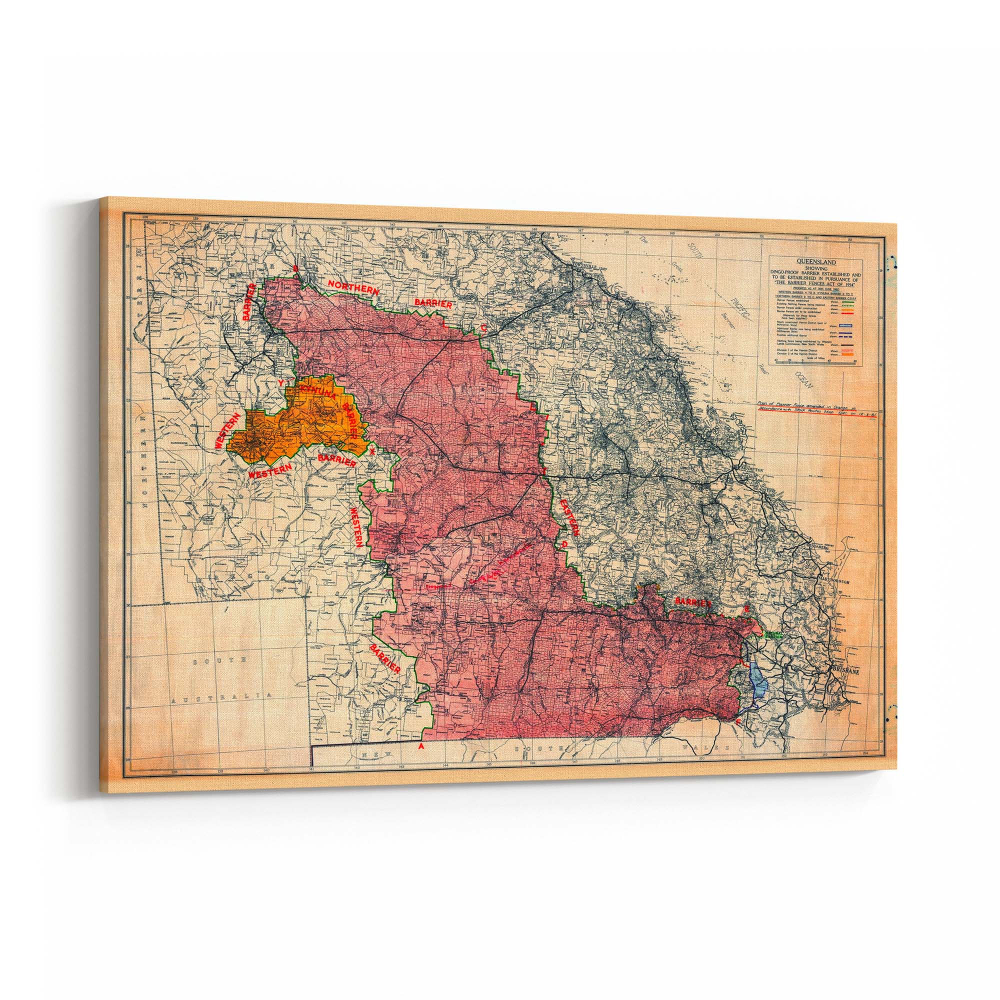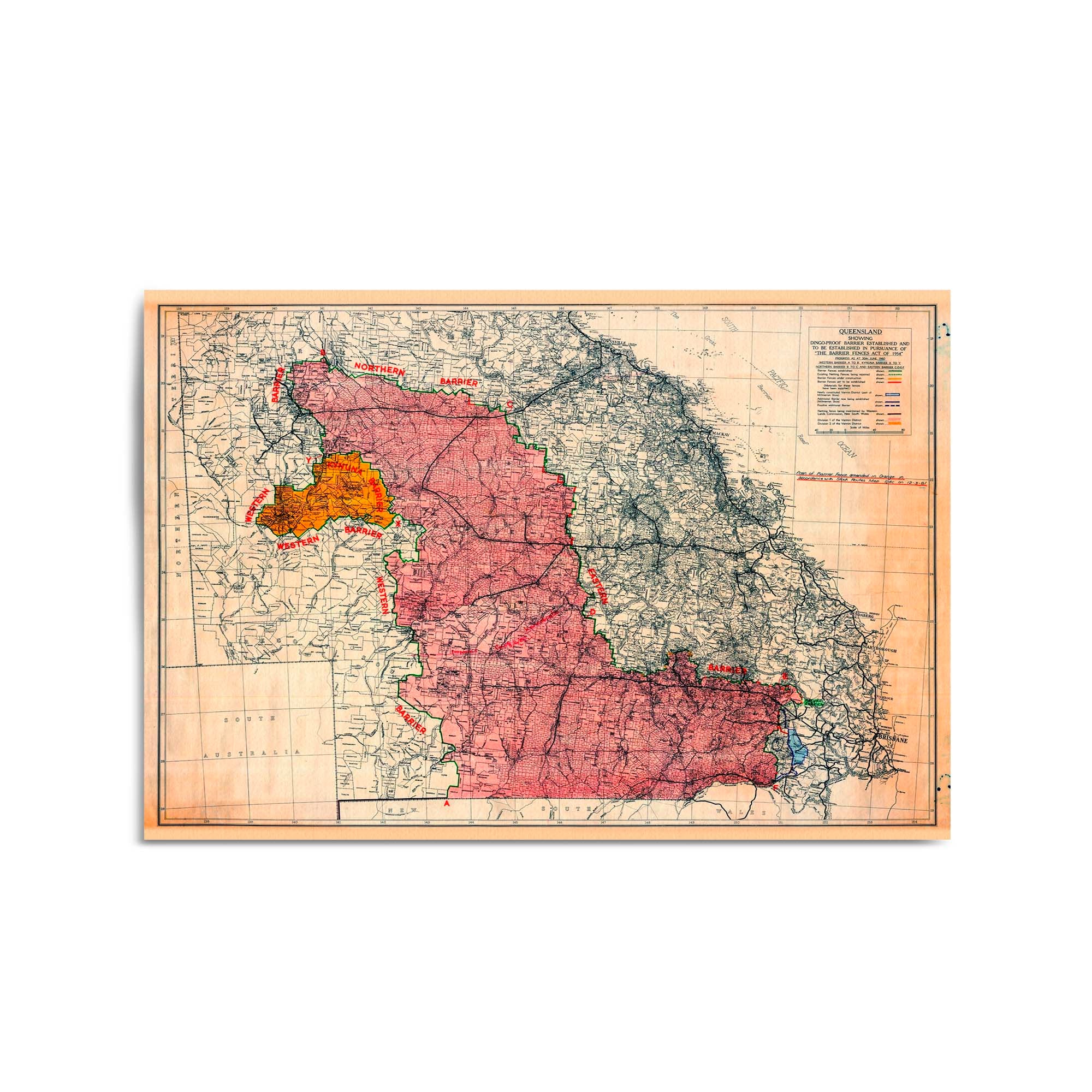 1960 Map of Queensland Showing Dingo-Proof Barrier