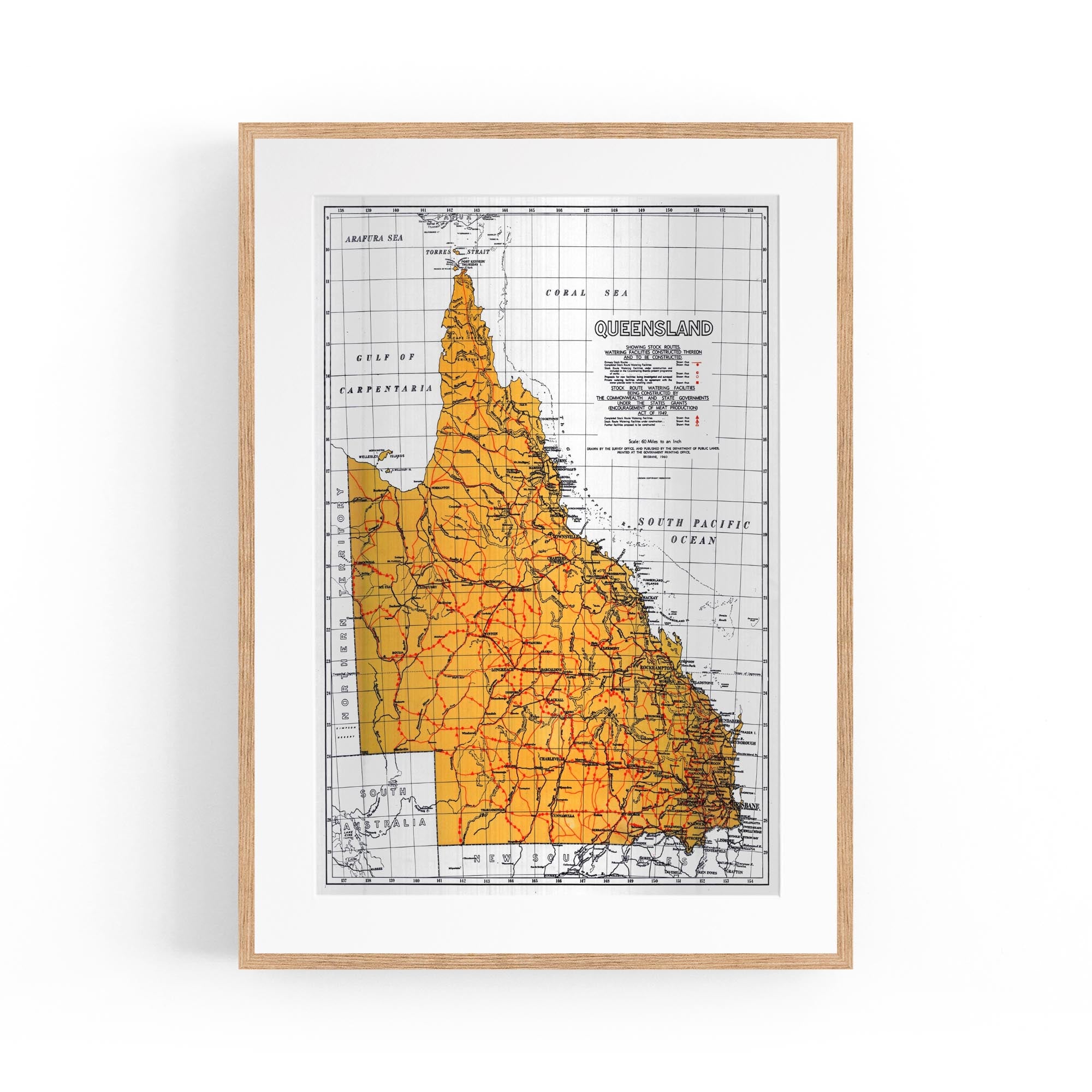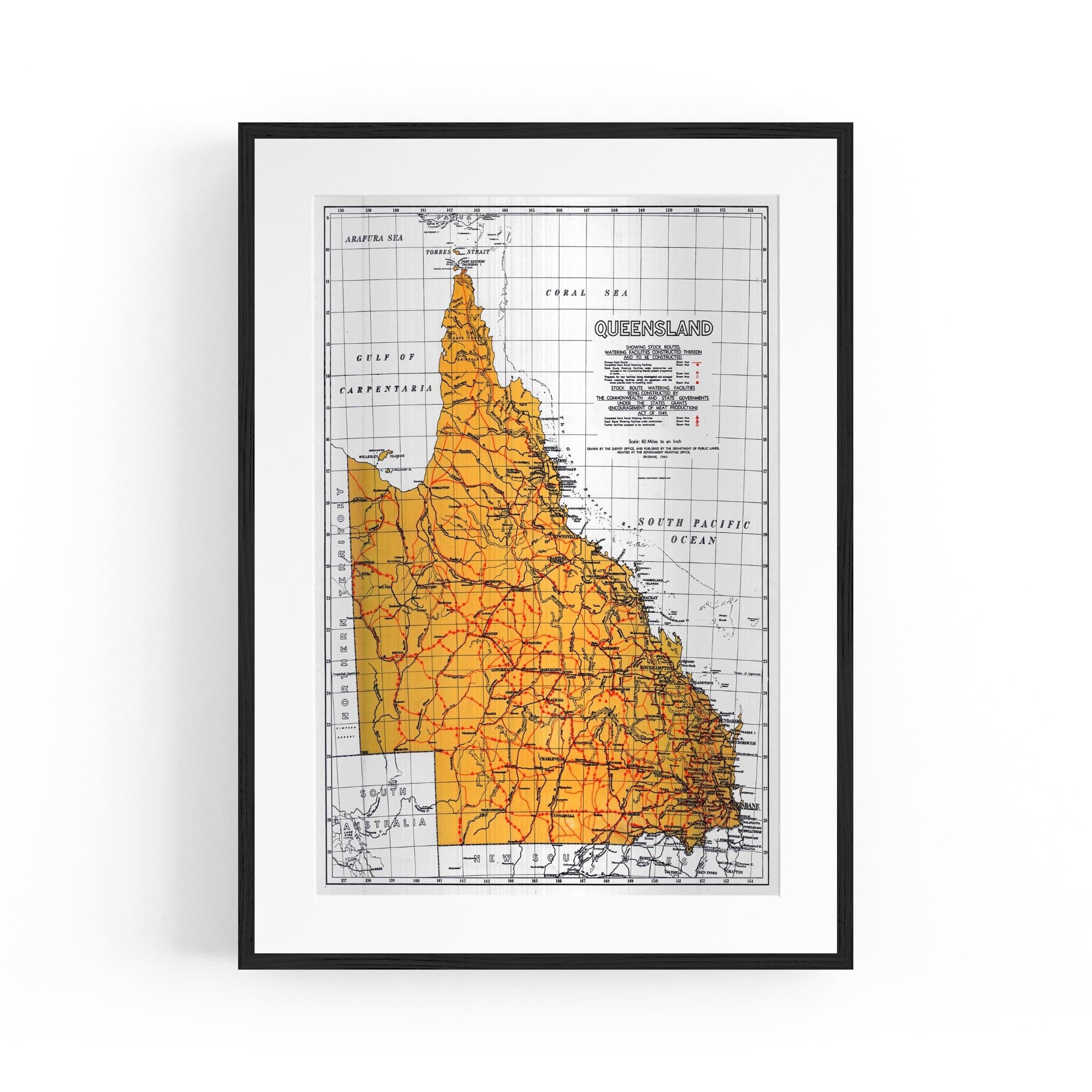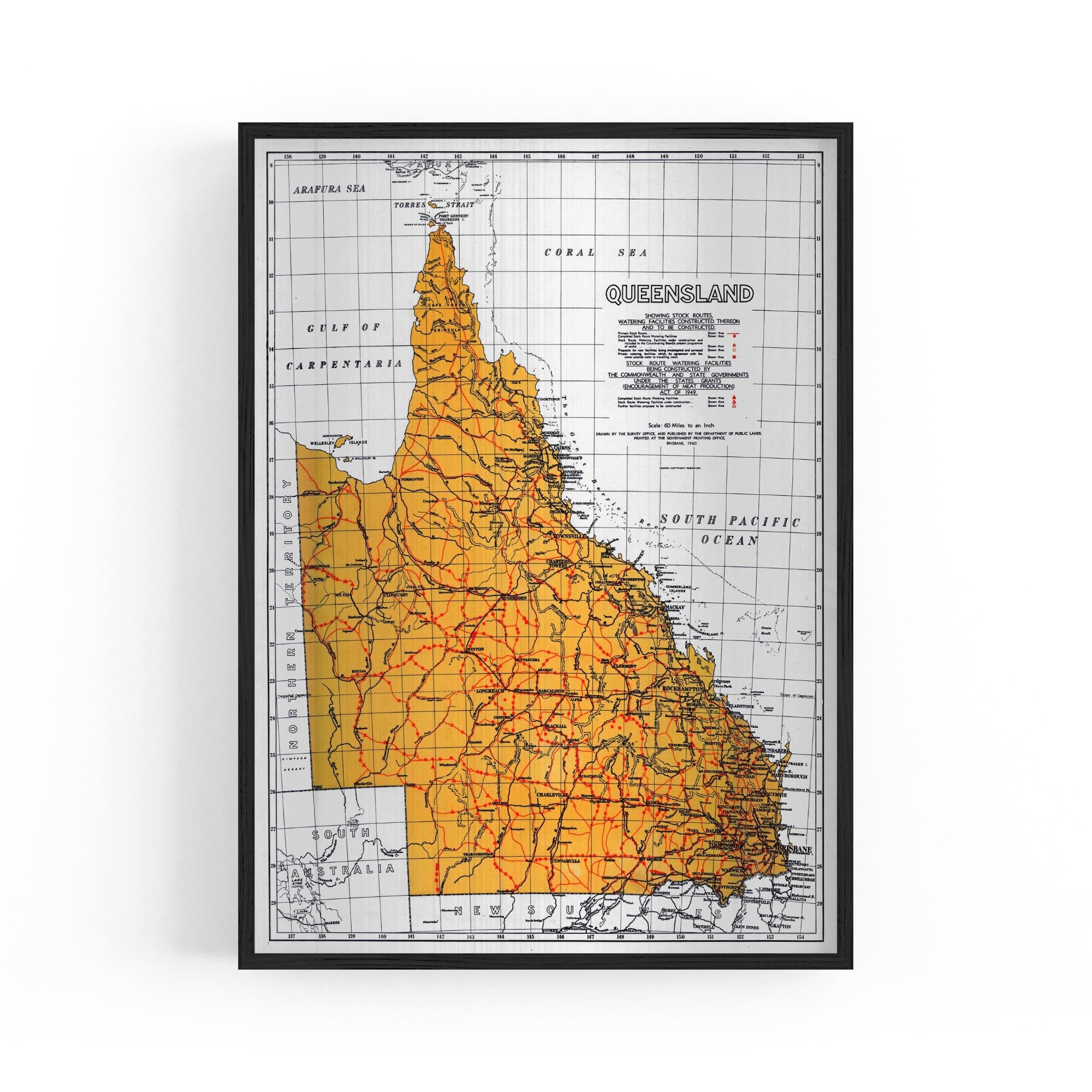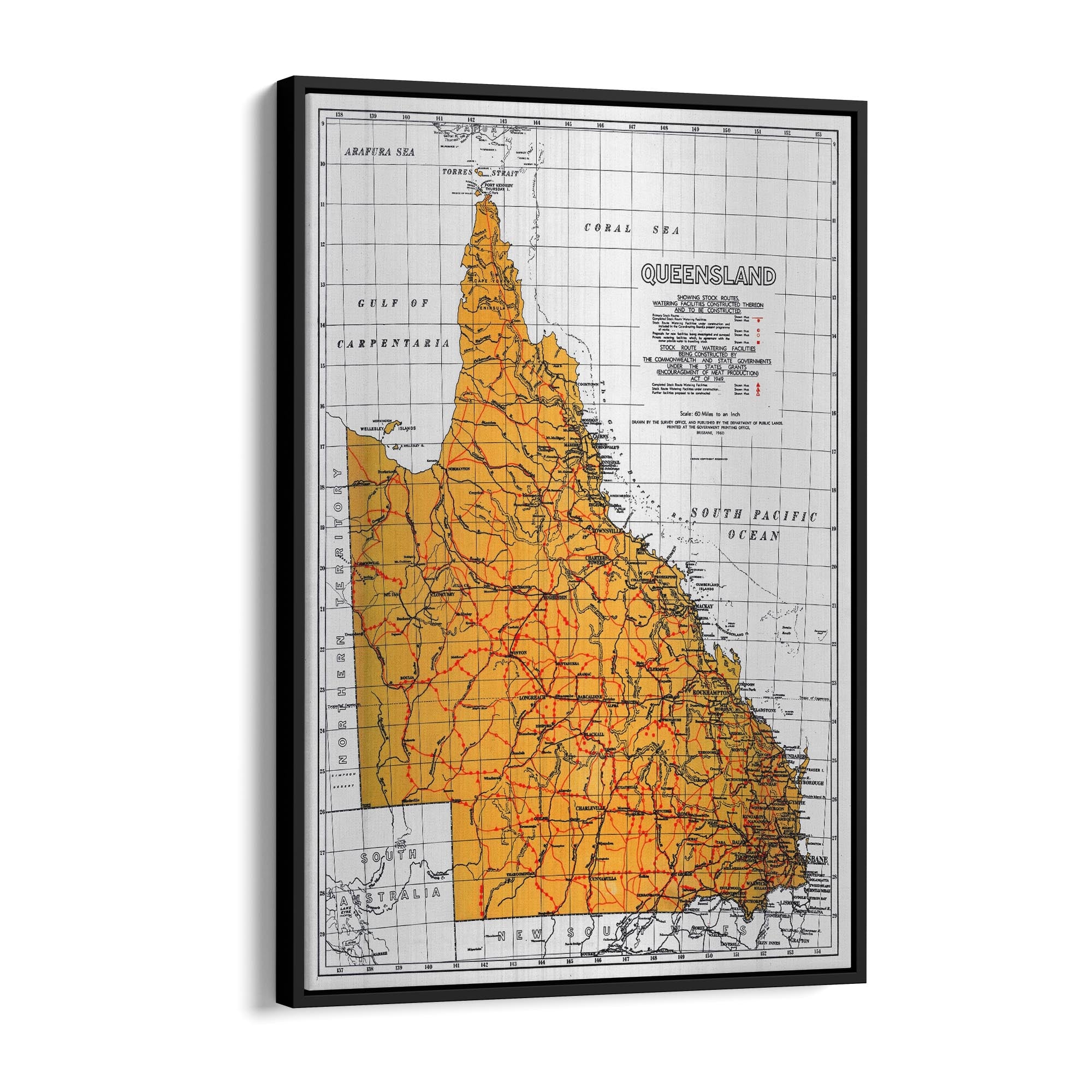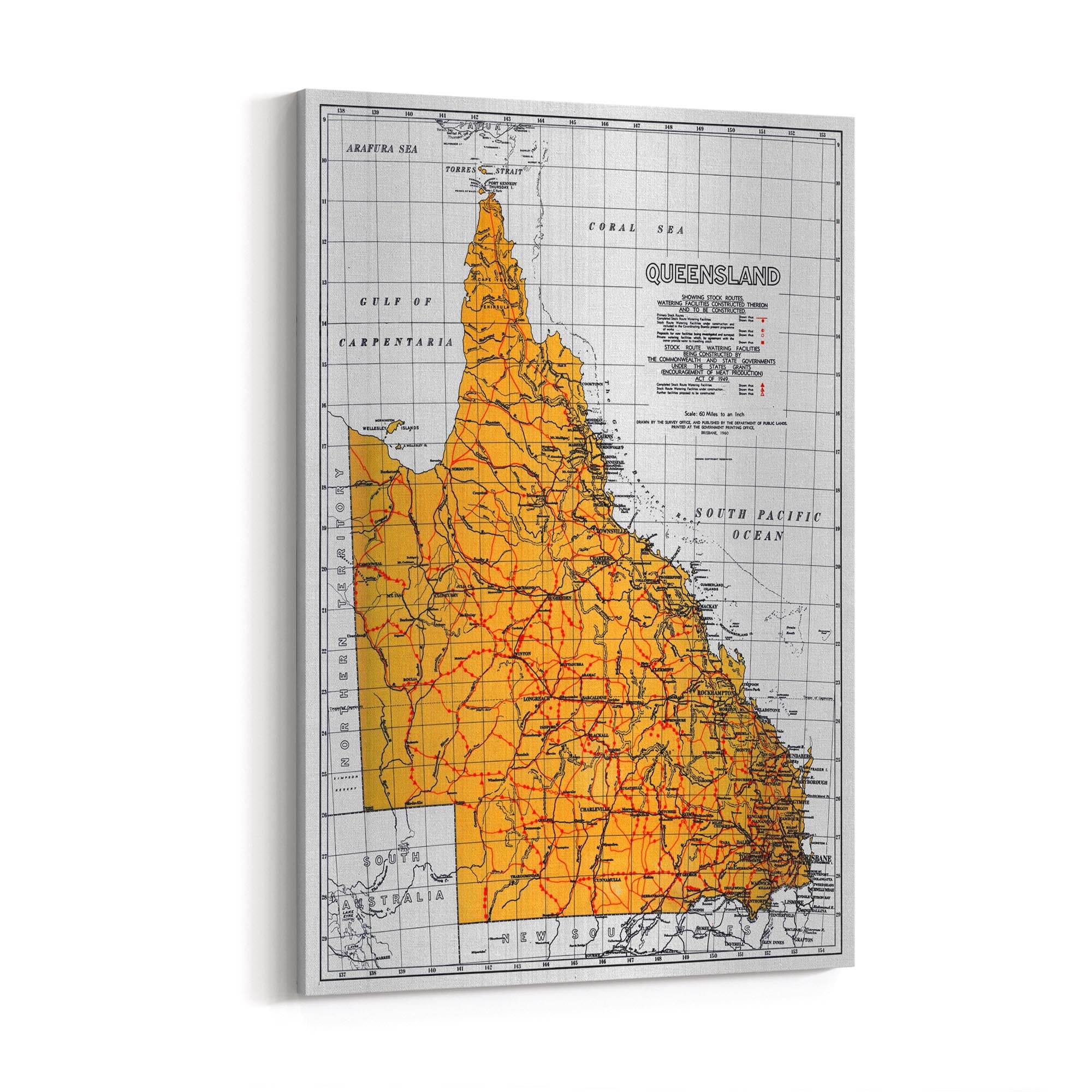 1960 Map of Queensland Showing Stock Routes & Watering Facilities