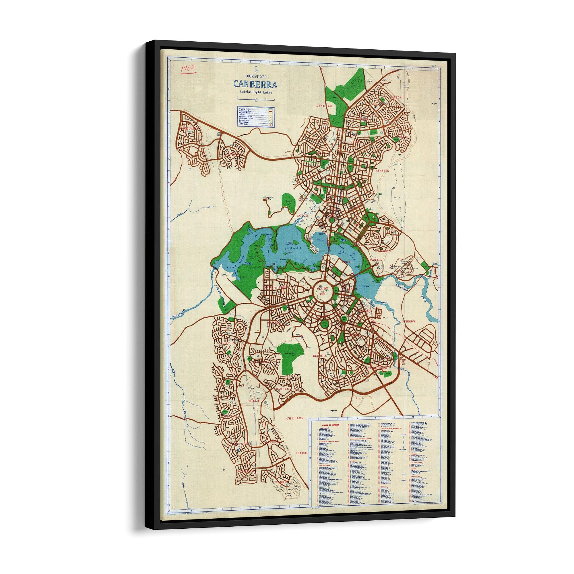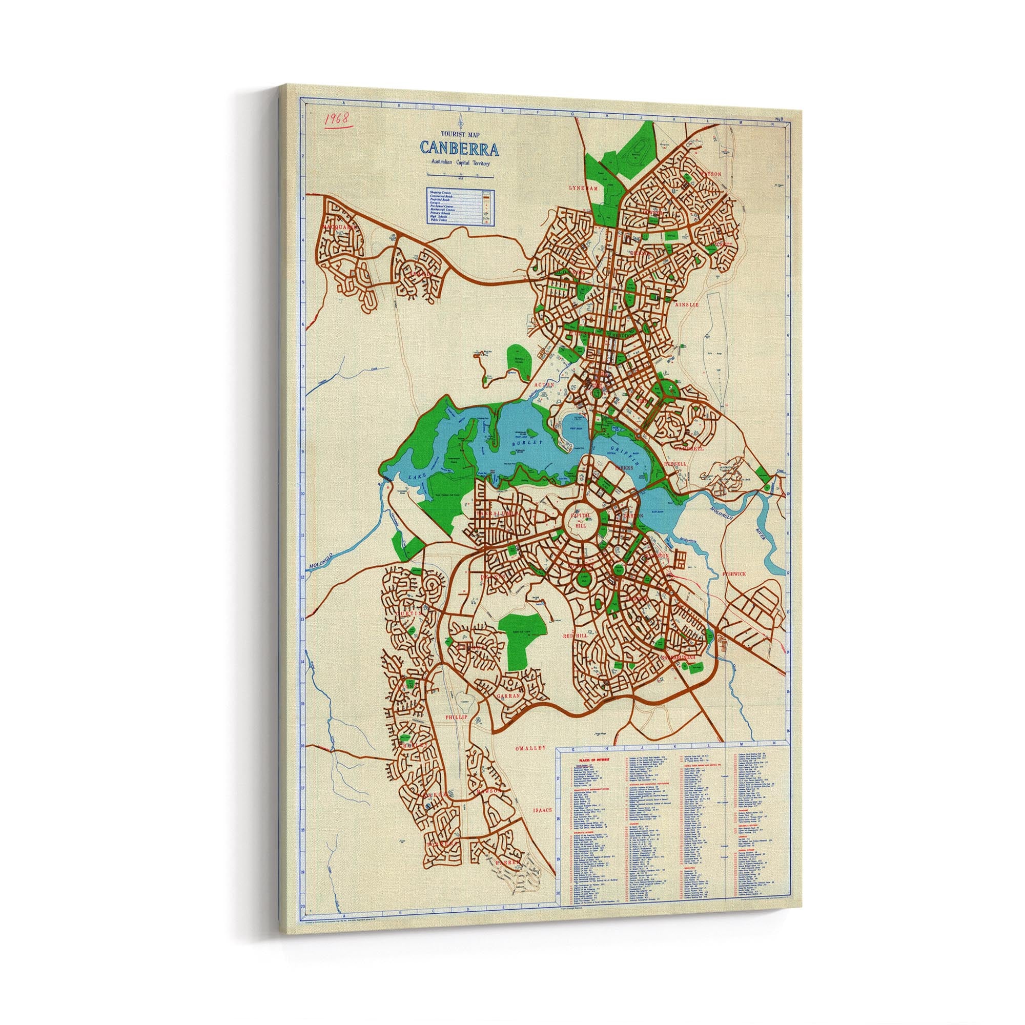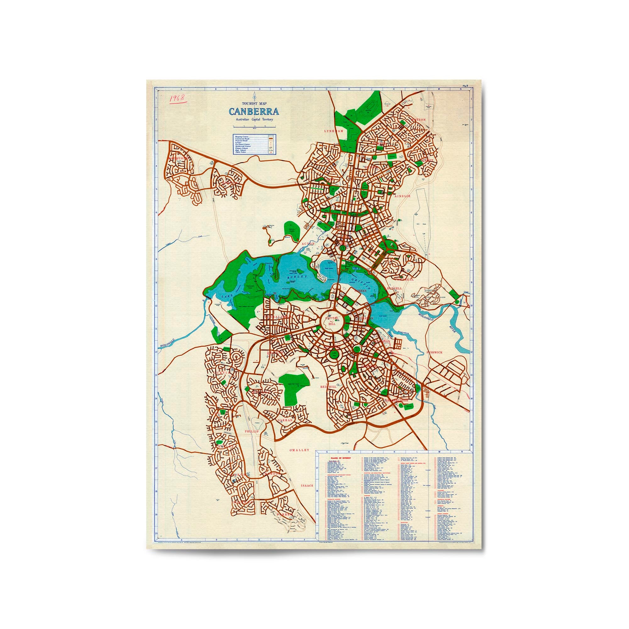1968 Map of Canberra, Australian Capital Territory, Australia