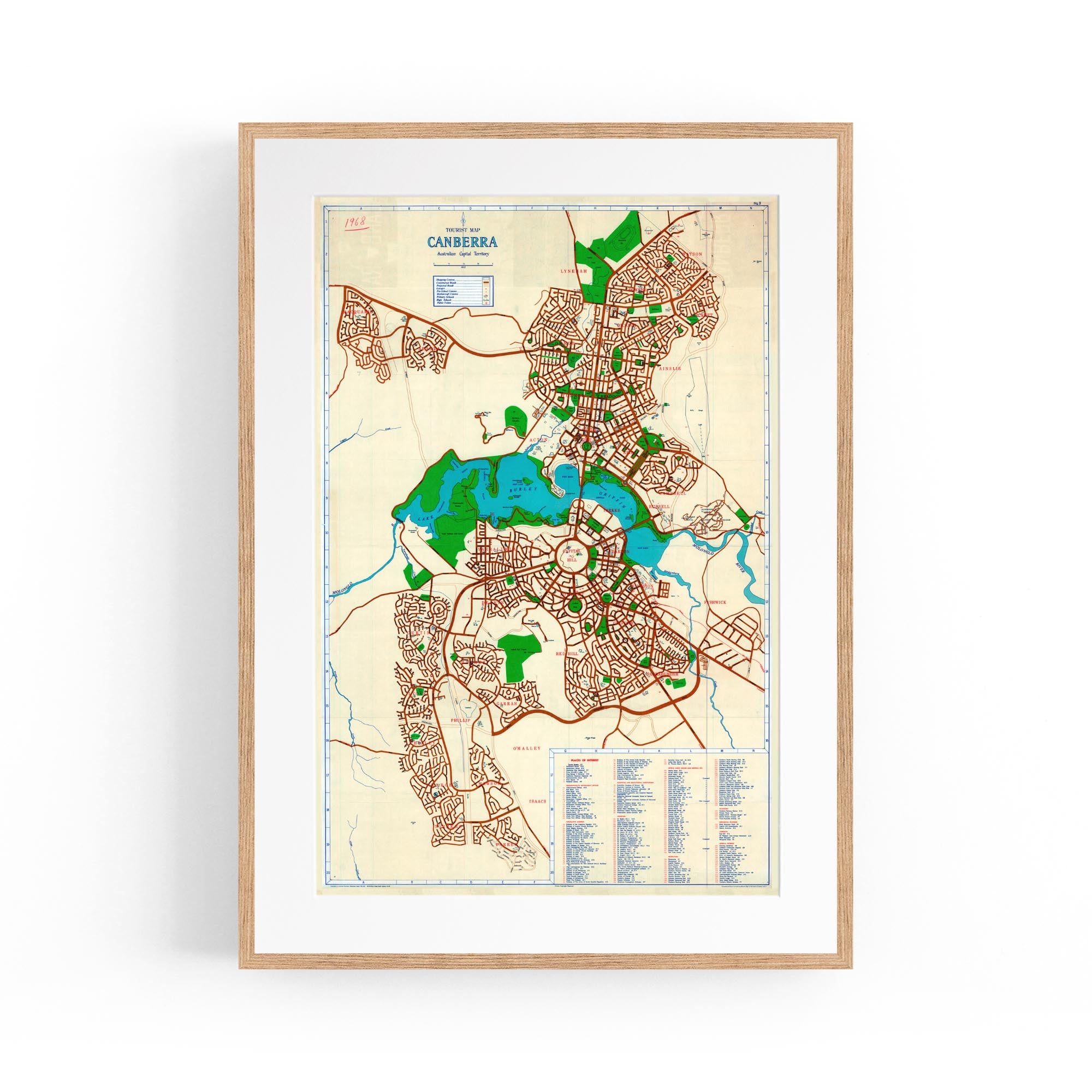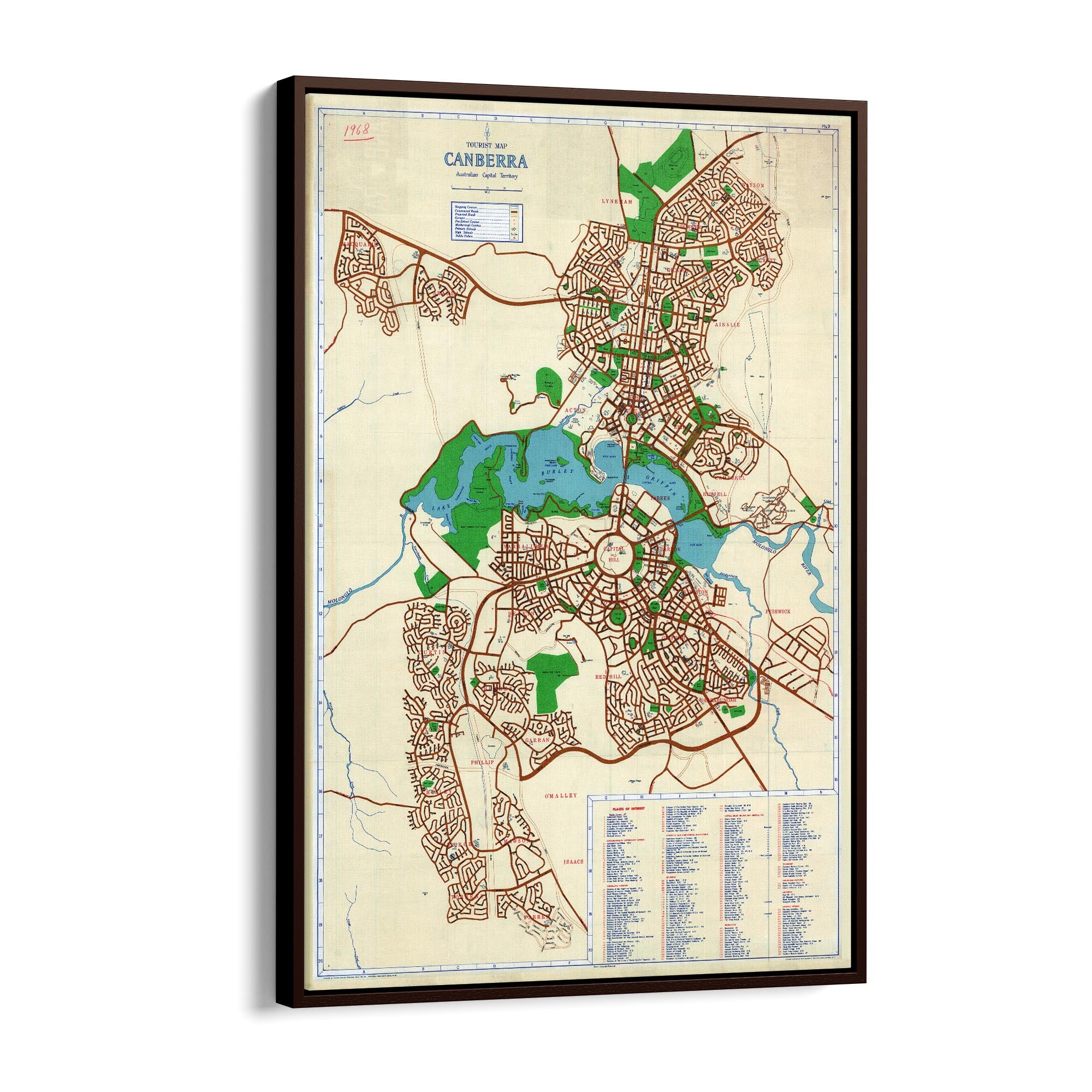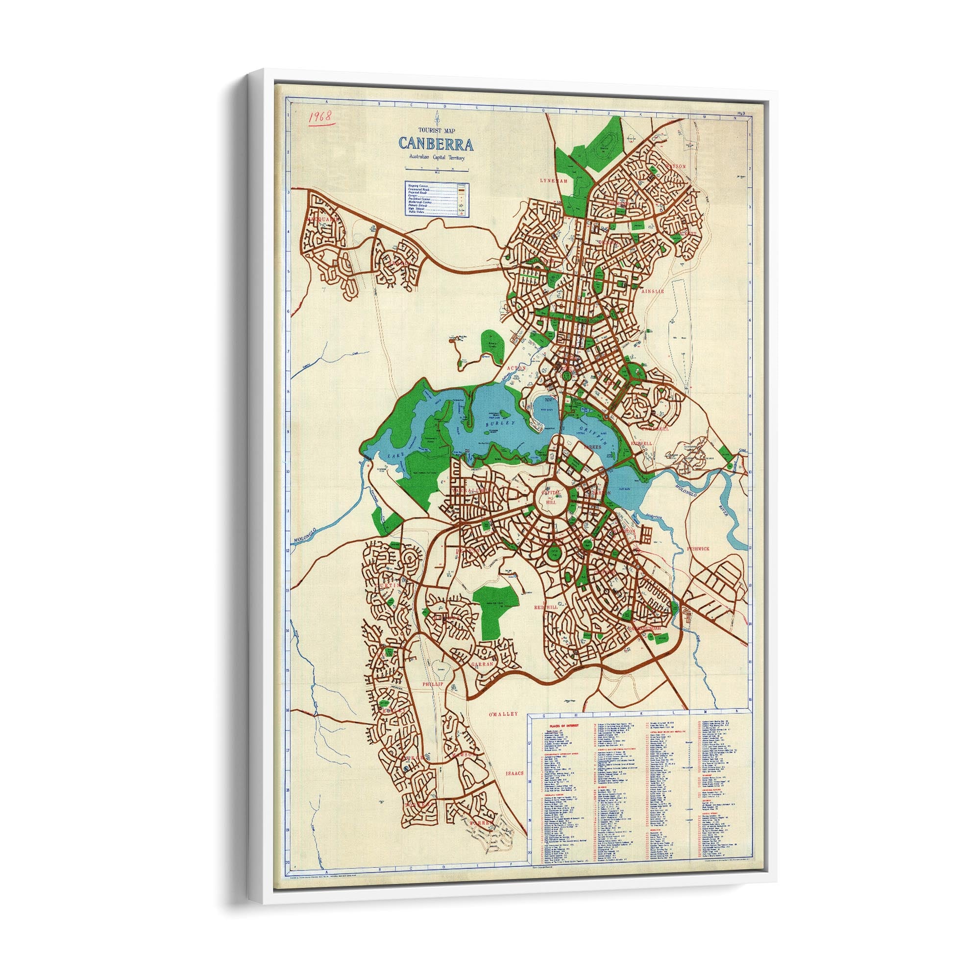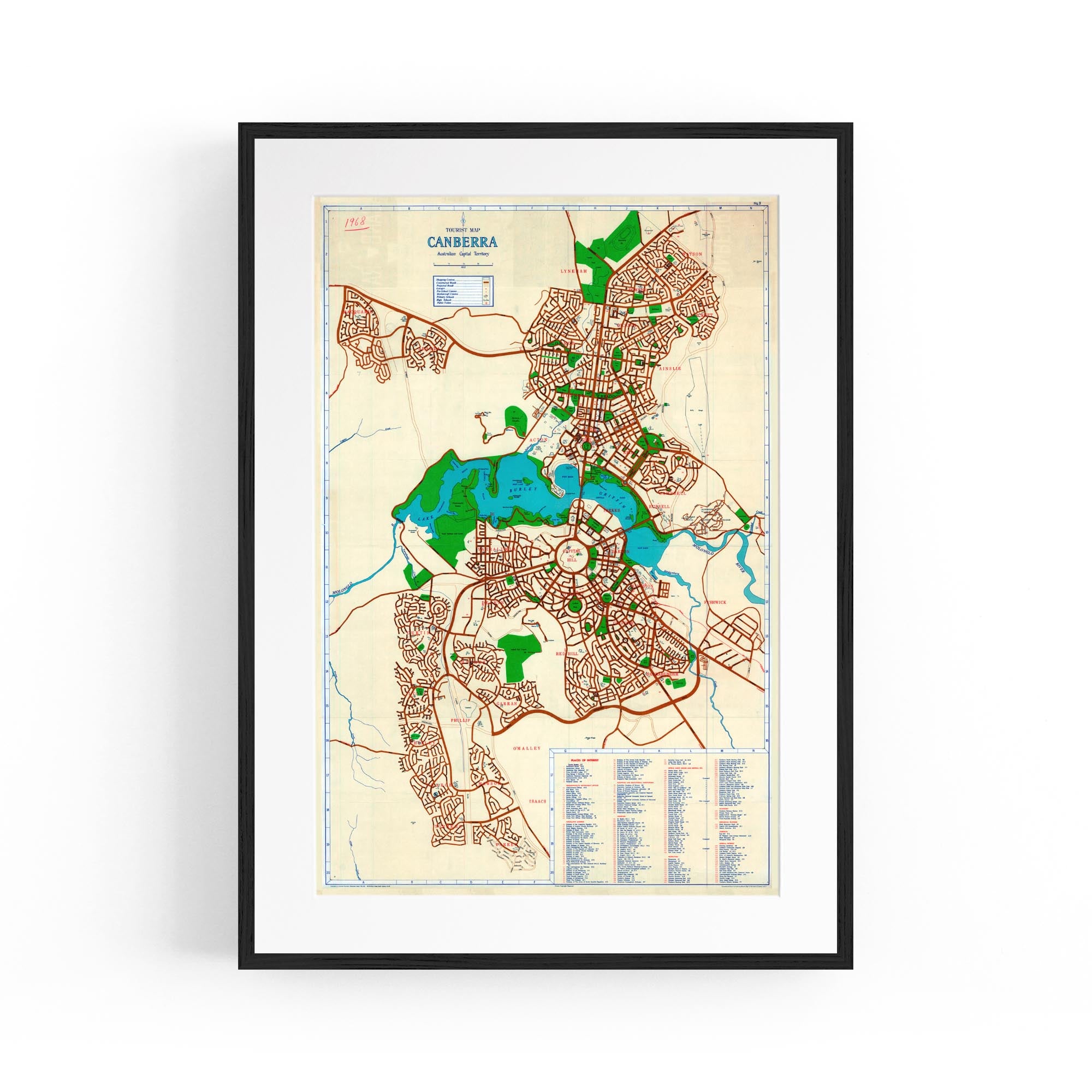 1968 Map of Canberra, Australian Capital Territory, Australia