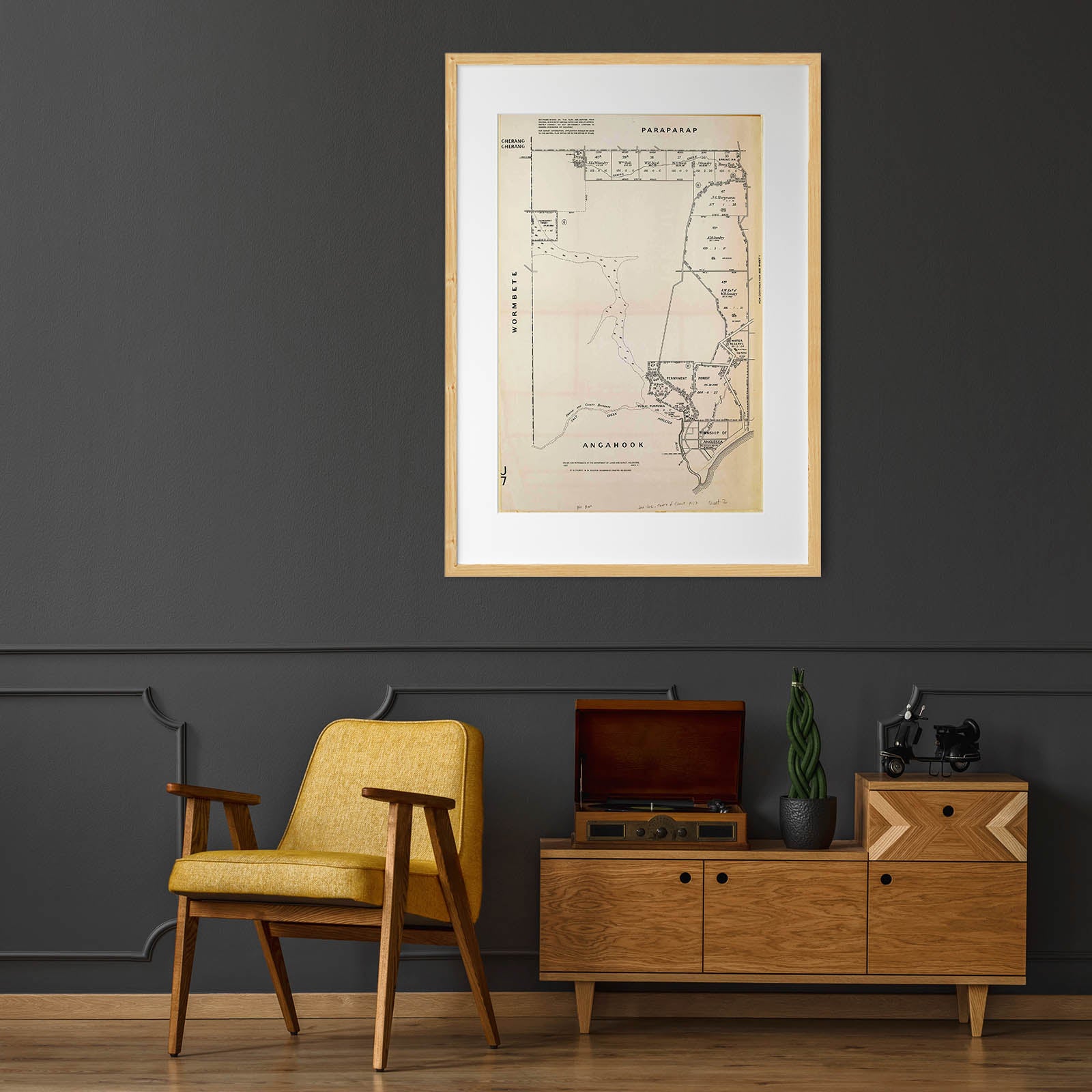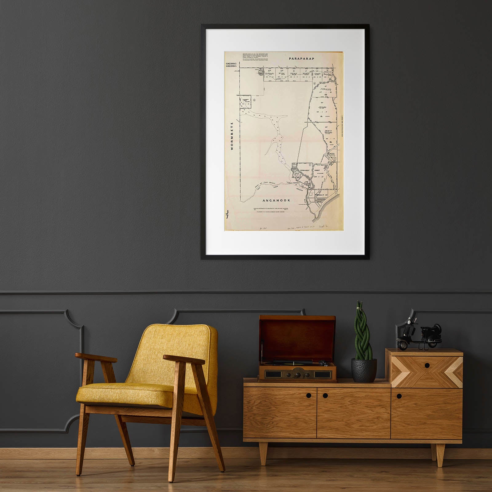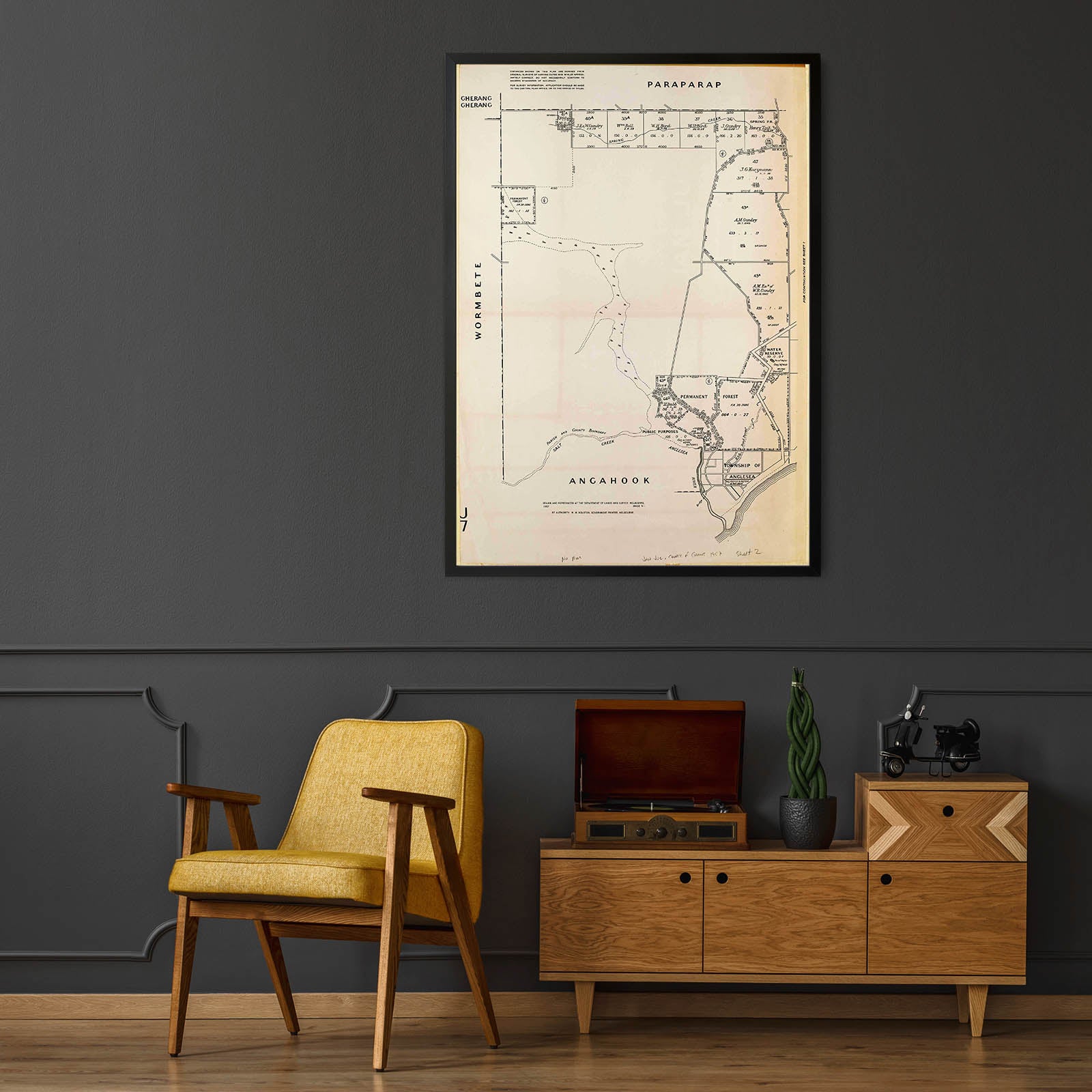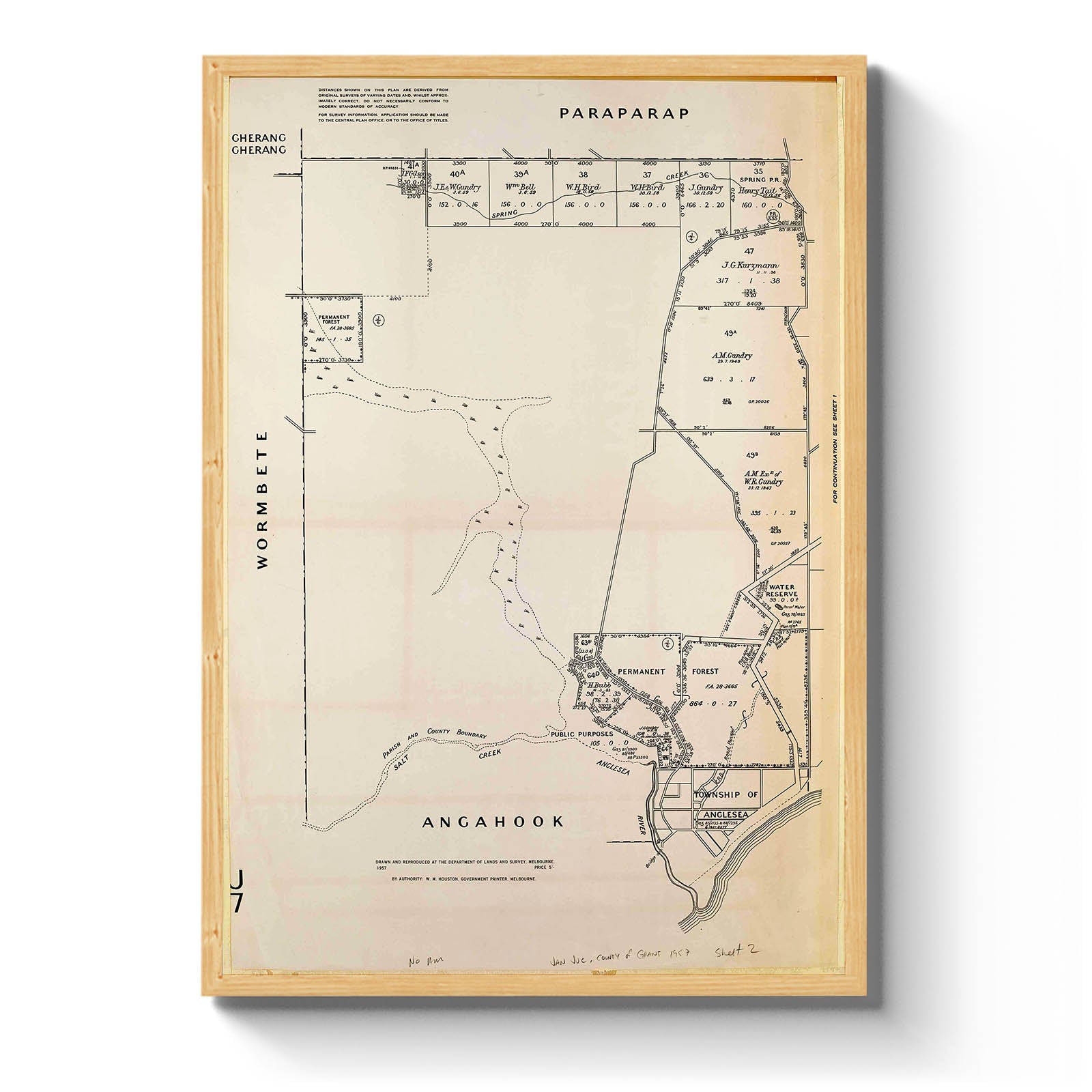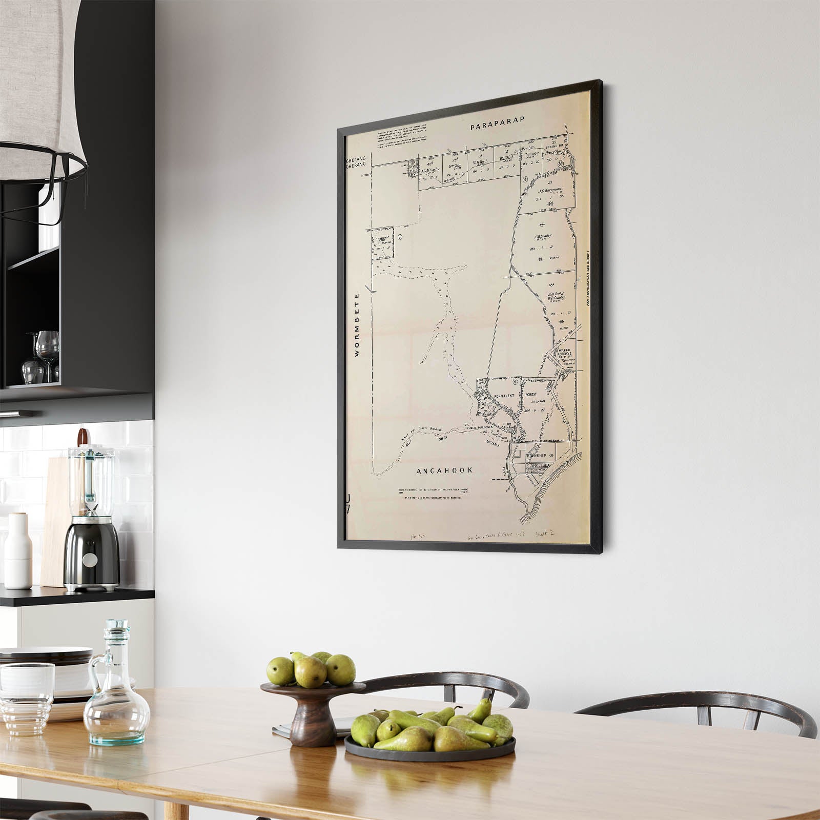 Recently moving to Harcourt and being interested in the history of the area, it seemed fitting to purchase a vintage map of the area which is displayed on our kitchen wall for us to study easily, identifying the block of land we bought. Nicely framed too.