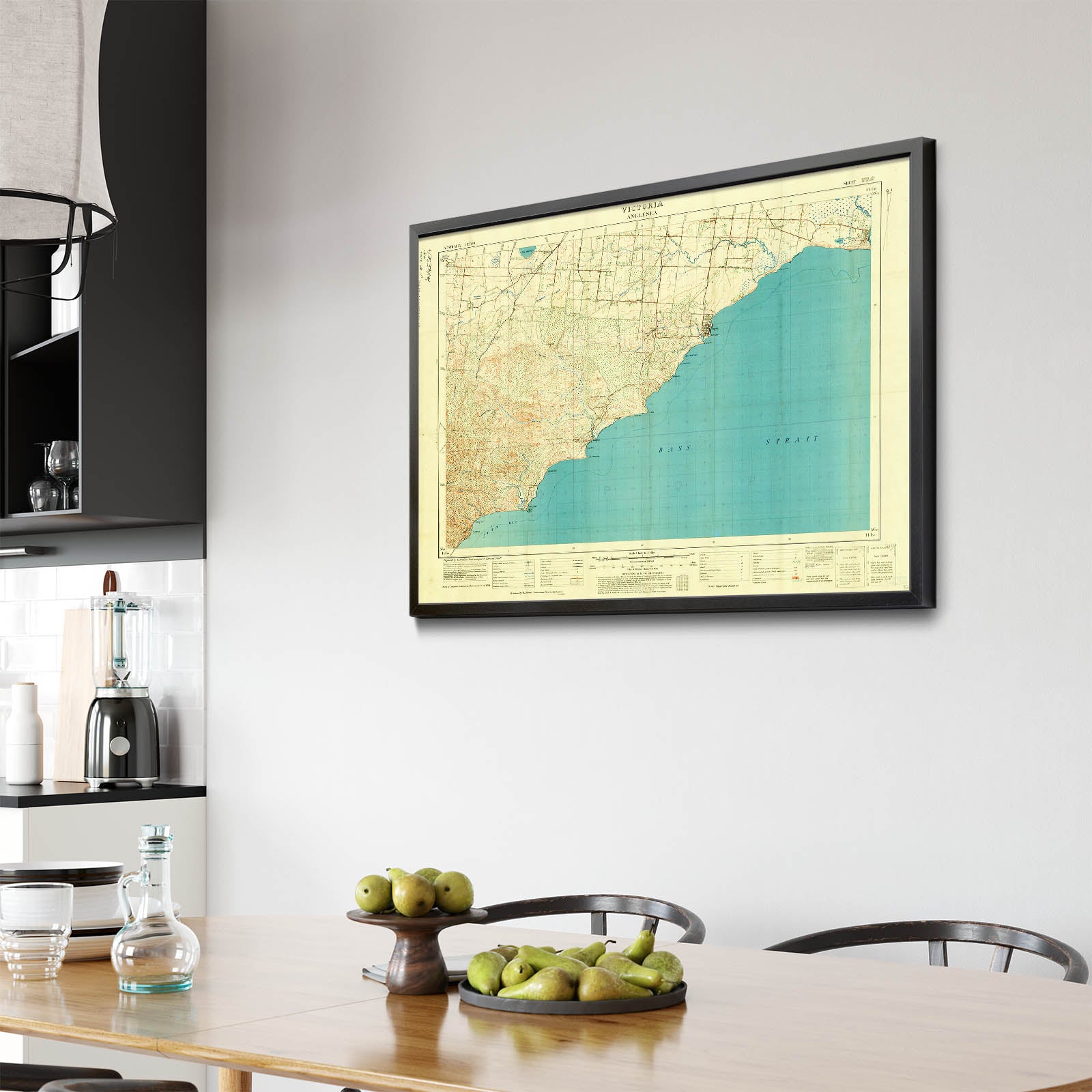 Recently moving to Harcourt and being interested in the history of the area, it seemed fitting to purchase a vintage map of the area which is displayed on our kitchen wall for us to study easily, identifying the block of land we bought. Nicely framed too.