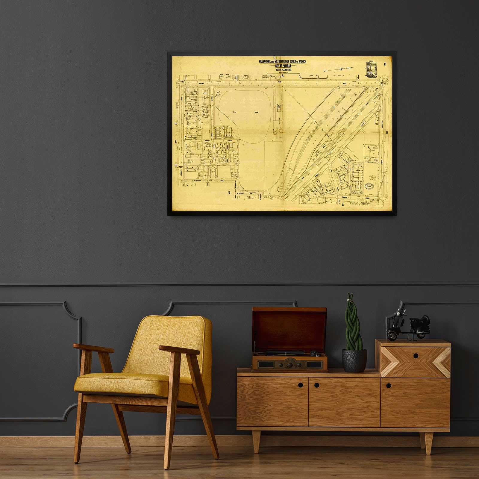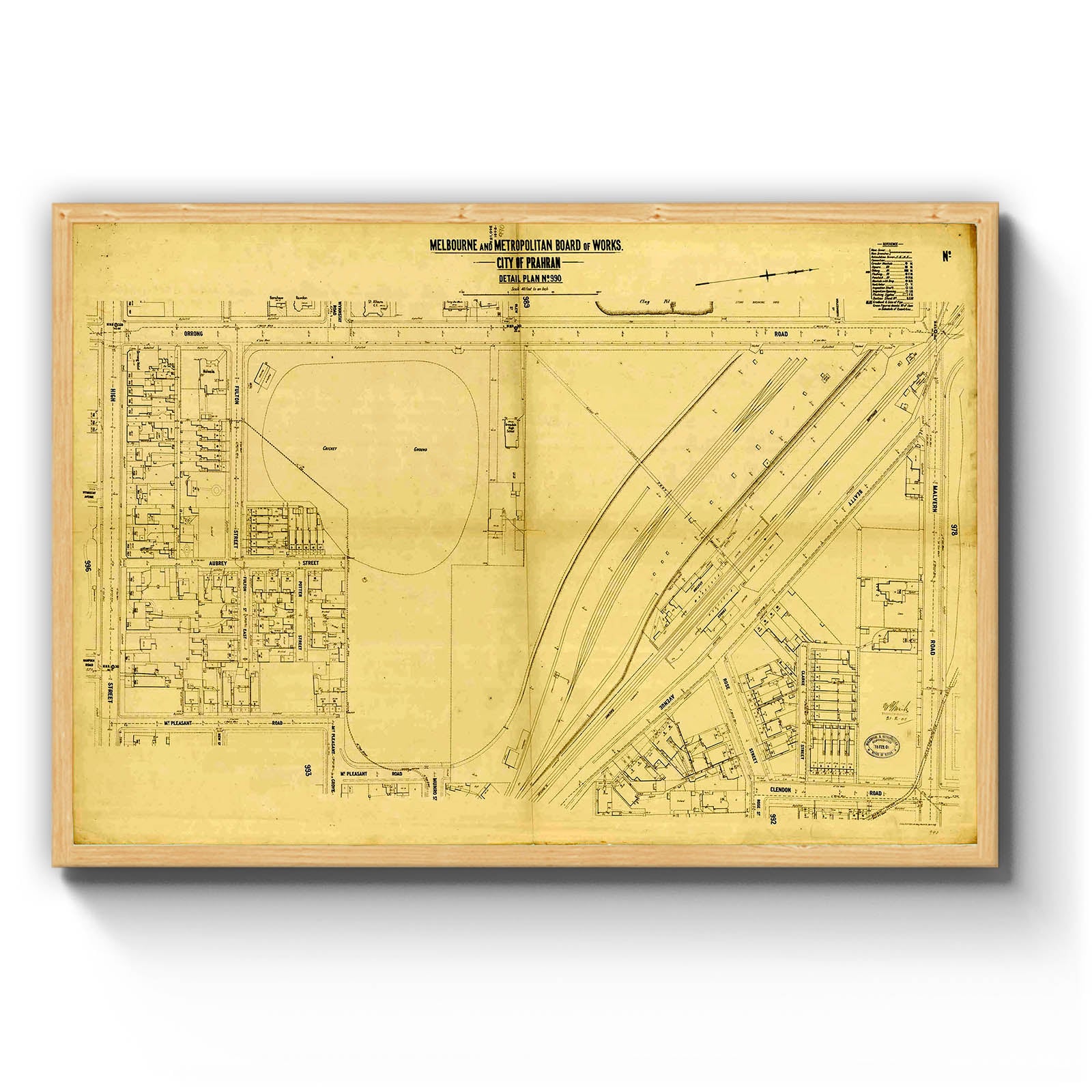Recently moving to Harcourt and being interested in the history of the area, it seemed fitting to purchase a vintage map of the area which is displayed on our kitchen wall for us to study easily, identifying the block of land we bought. Nicely framed too.