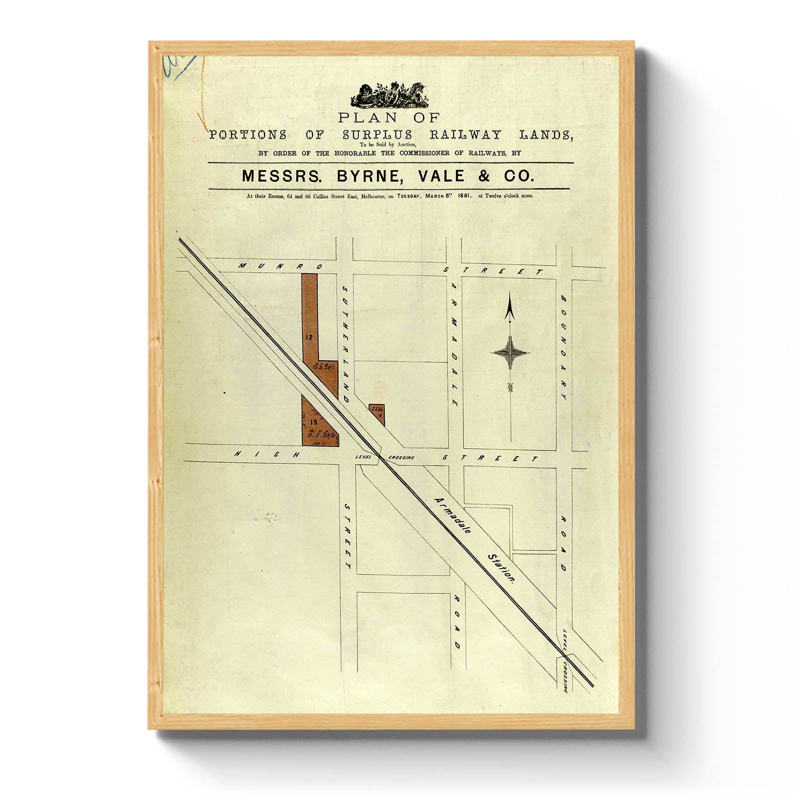 Plan of portions of surplus railway lands [cartographic material]. 1881 "To be sold [...] Tuesday March 8th 1881"..