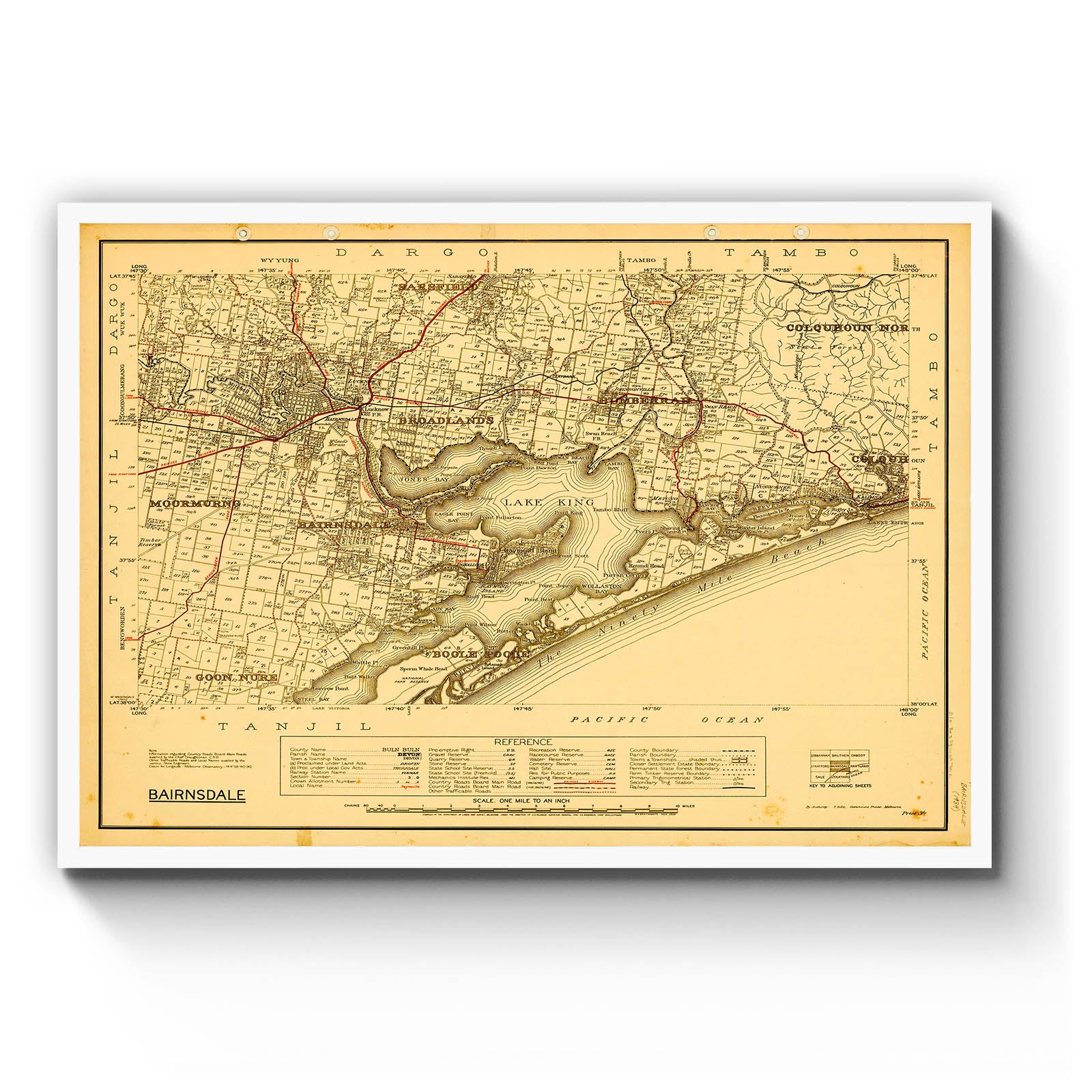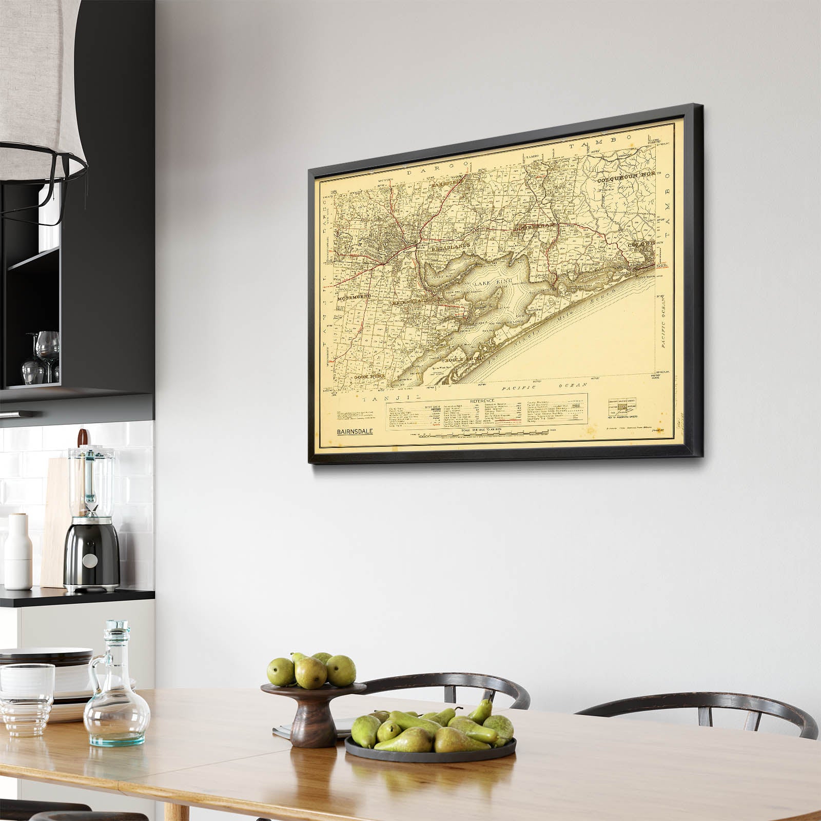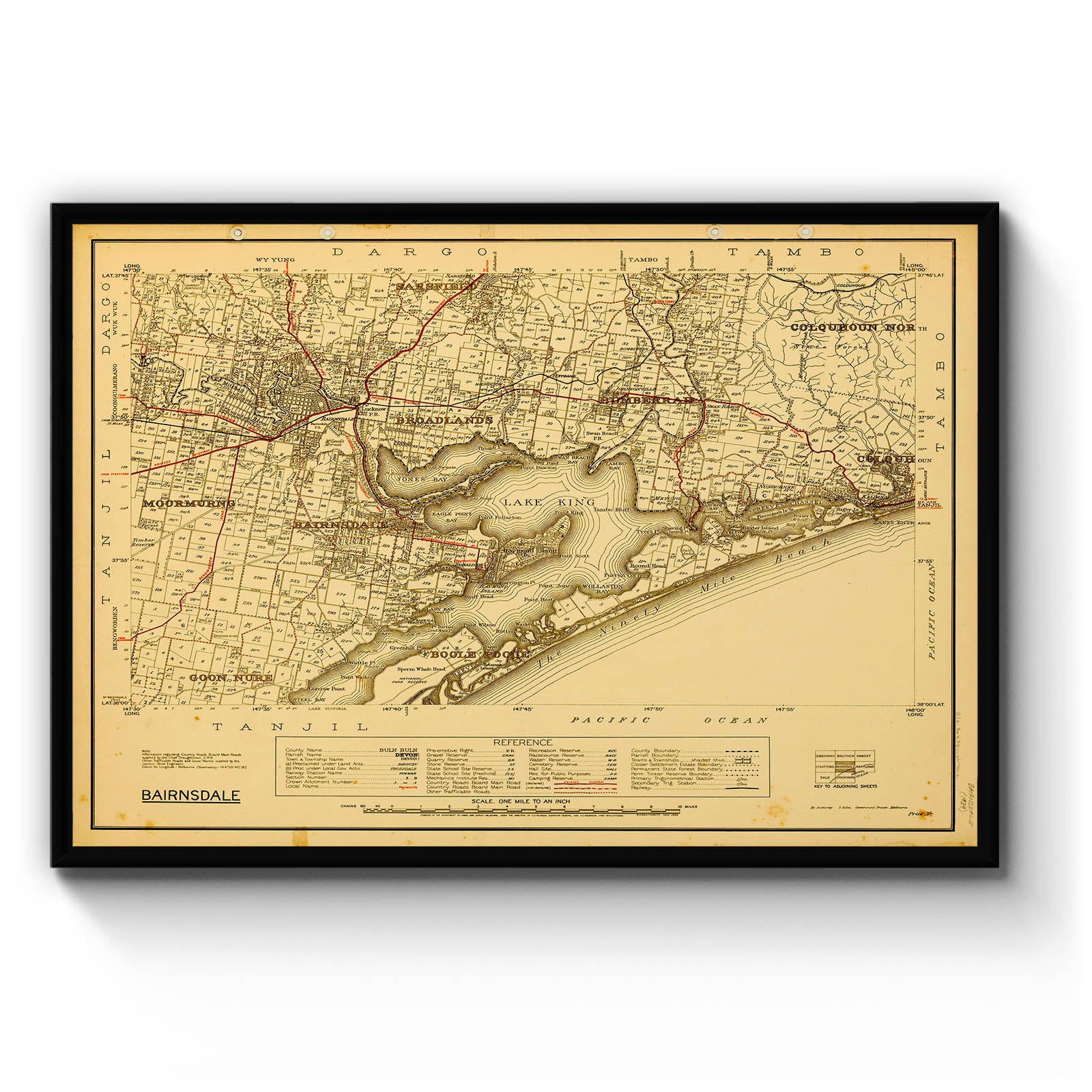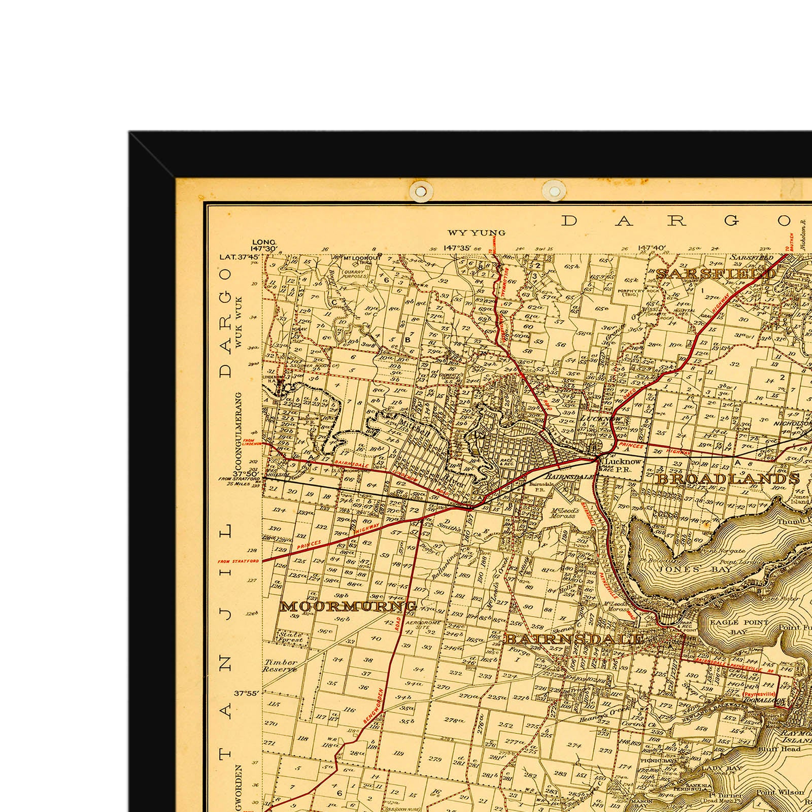Recently moving to Harcourt and being interested in the history of the area, it seemed fitting to purchase a vintage map of the area which is displayed on our kitchen wall for us to study easily, identifying the block of land we bought. Nicely framed too.