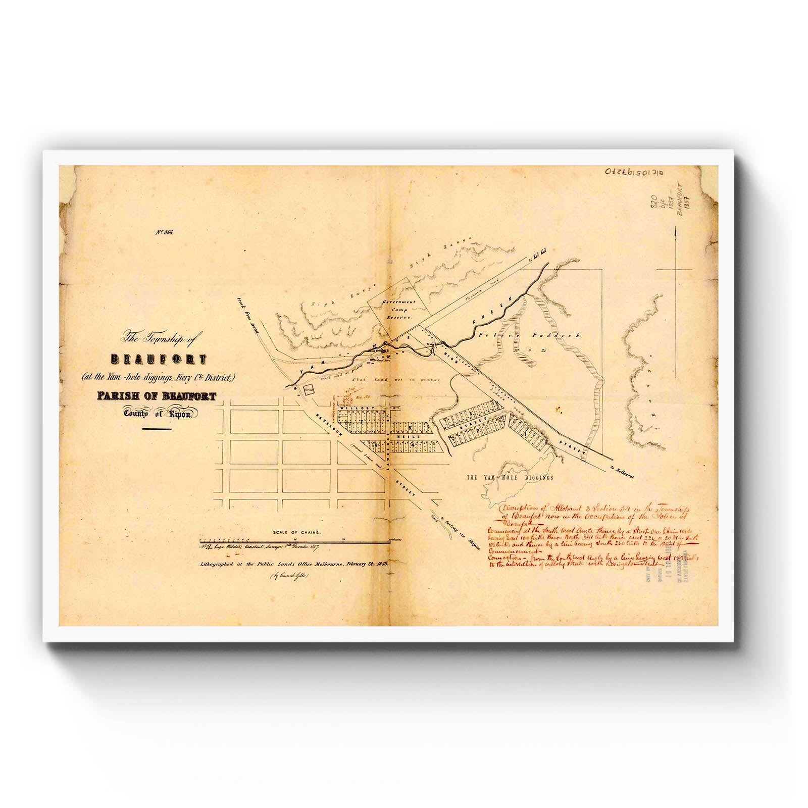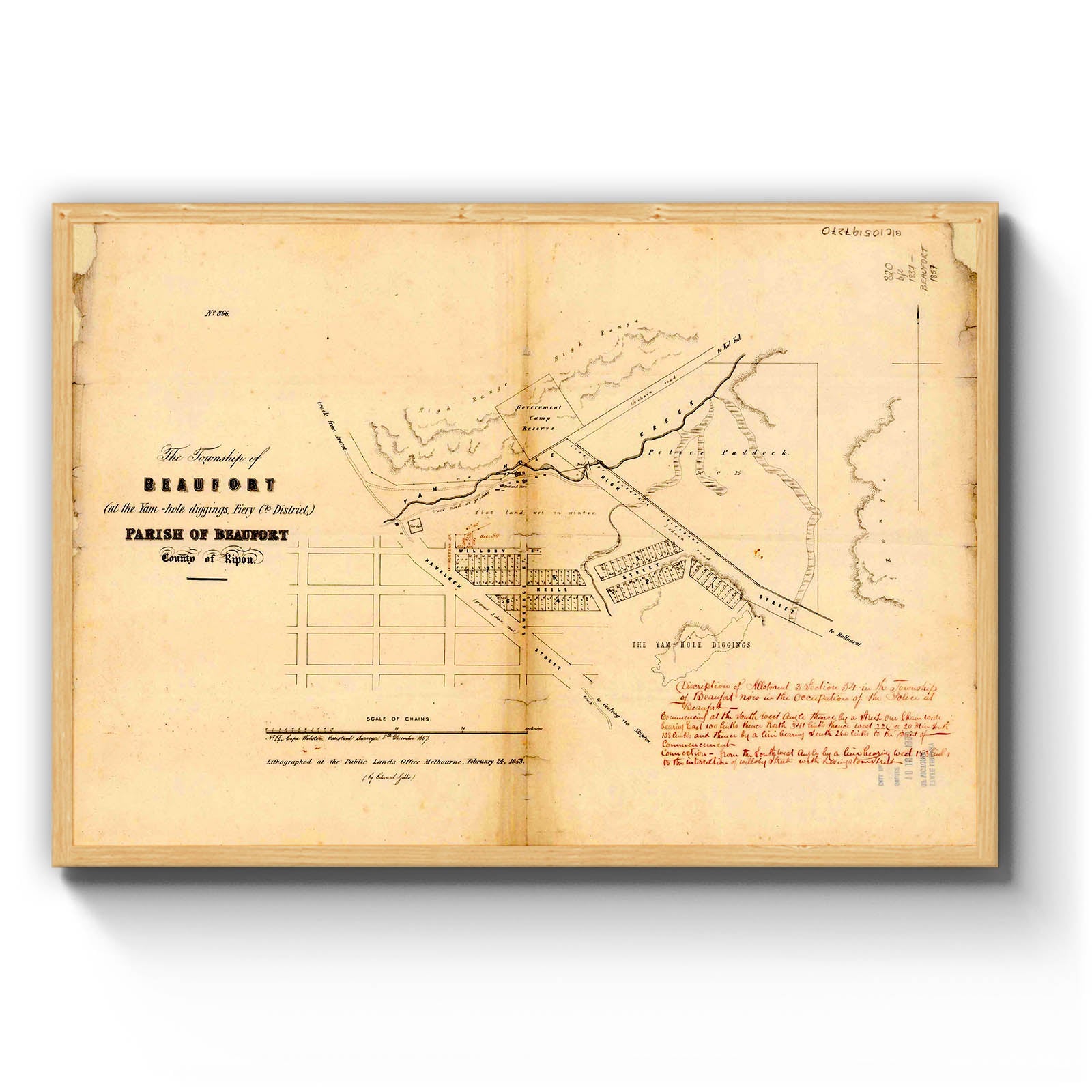 Recently moving to Harcourt and being interested in the history of the area, it seemed fitting to purchase a vintage map of the area which is displayed on our kitchen wall for us to study easily, identifying the block of land we bought. Nicely framed too.