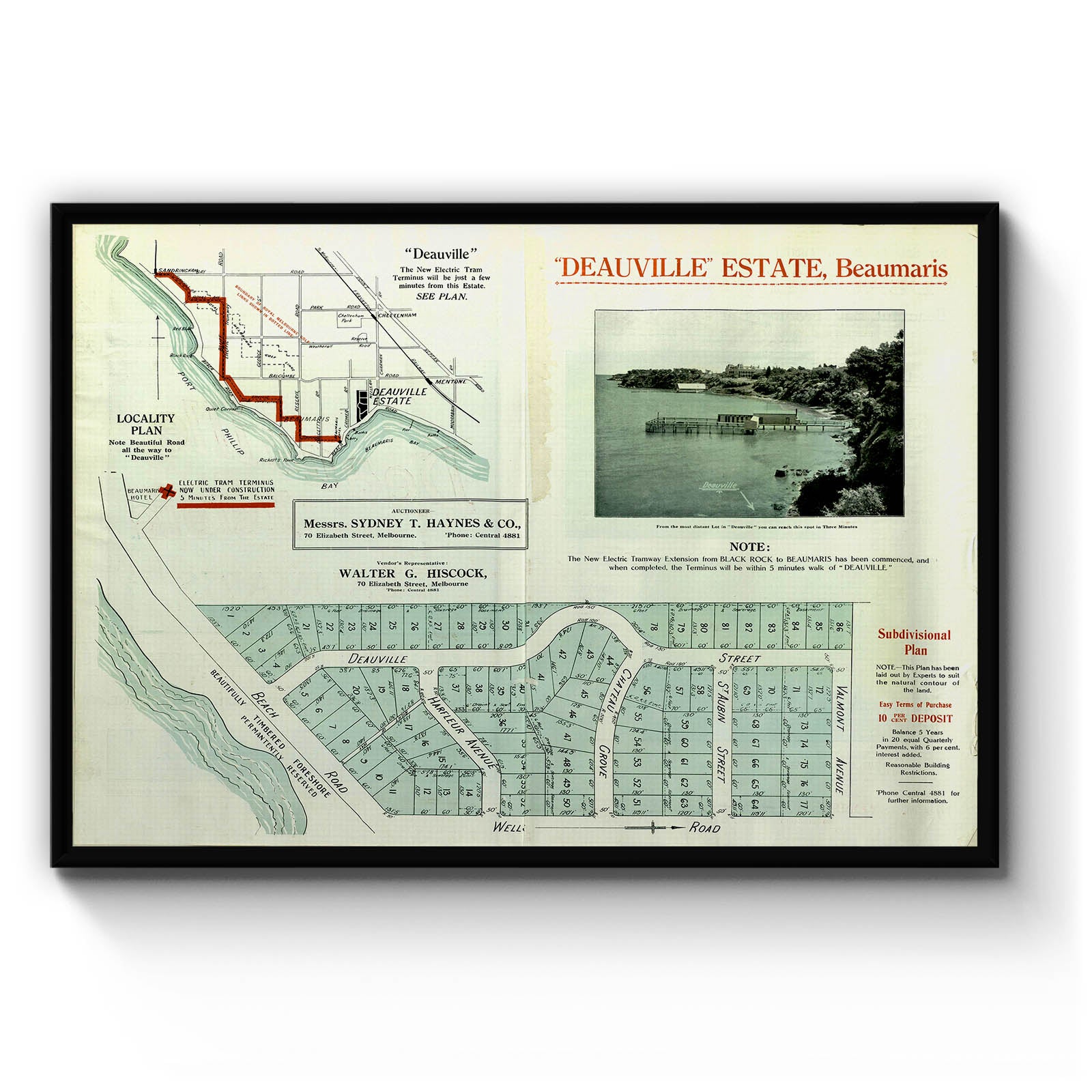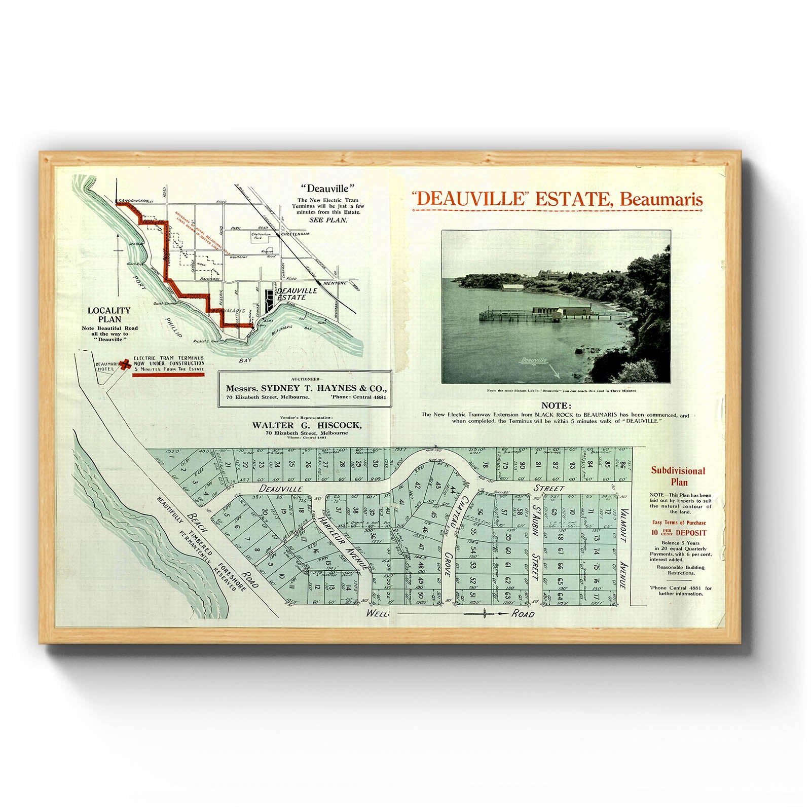 Deauville Estate, Beaumaris [cartographic material]. 1926 Includes locality plan; Includes three photographs showing various views of the estate.