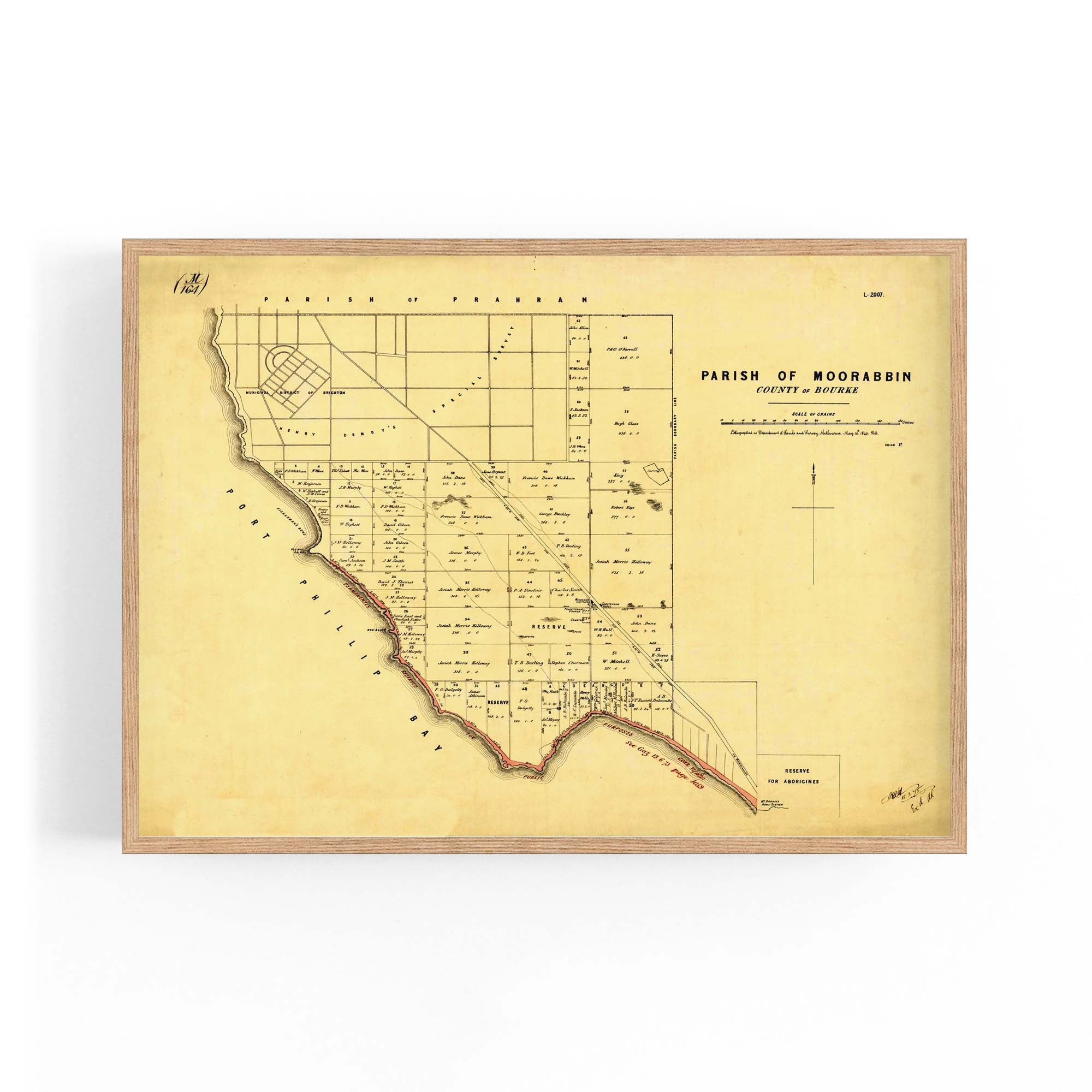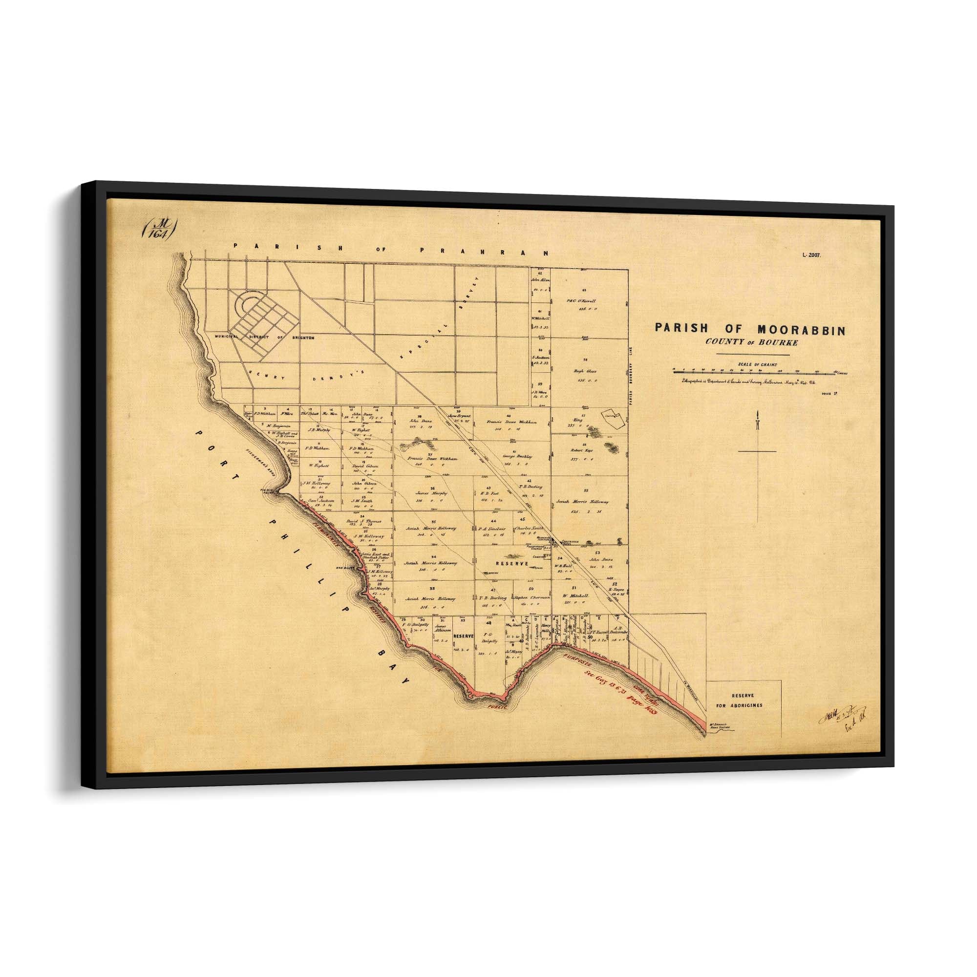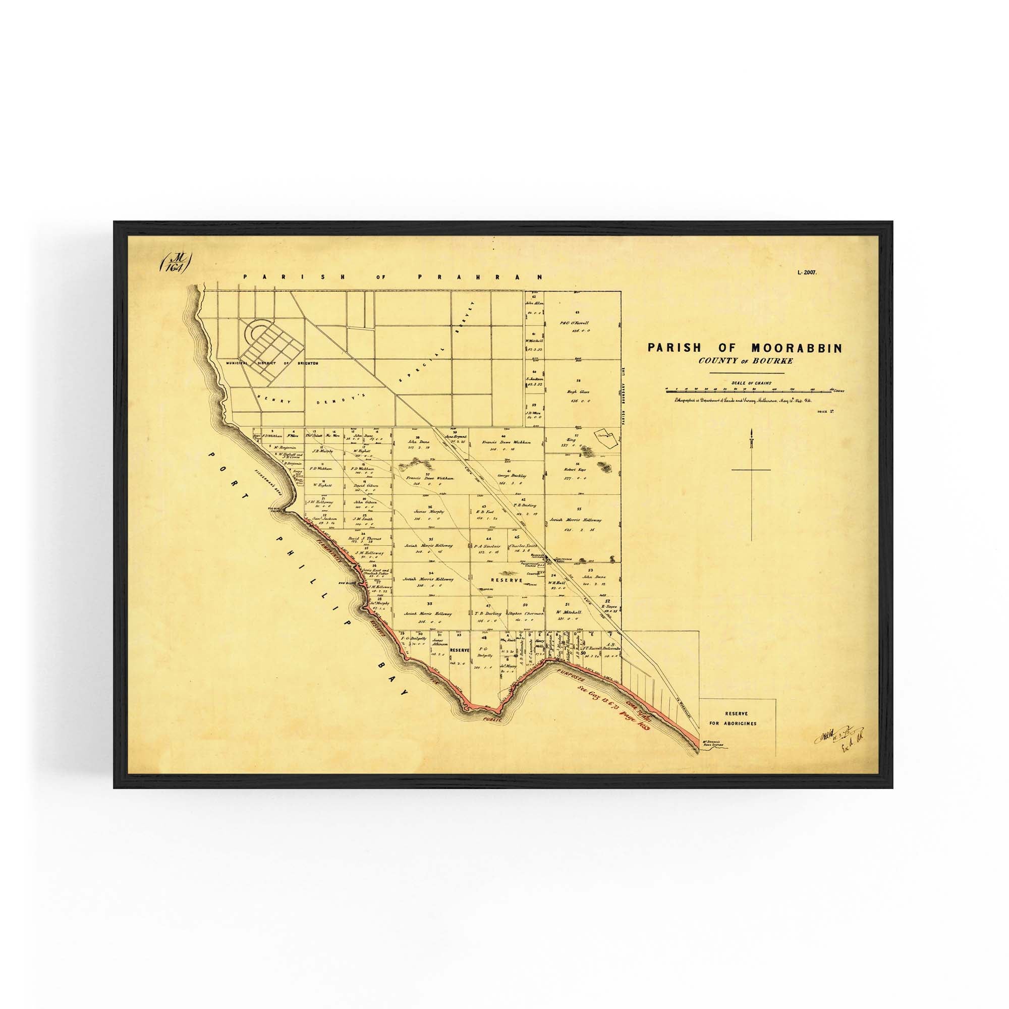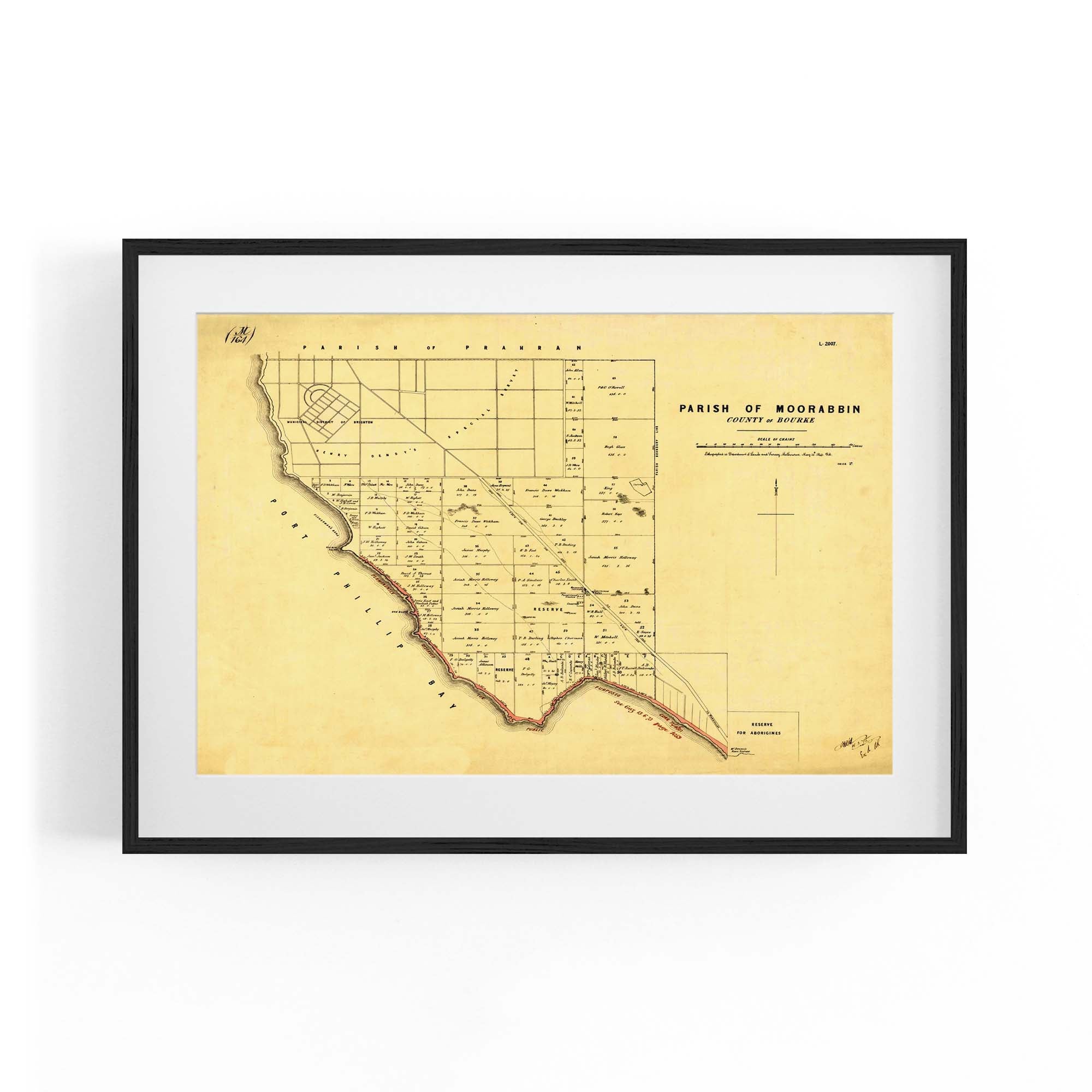 1864 Vintage Map of Beaumaris, Victoria Australia