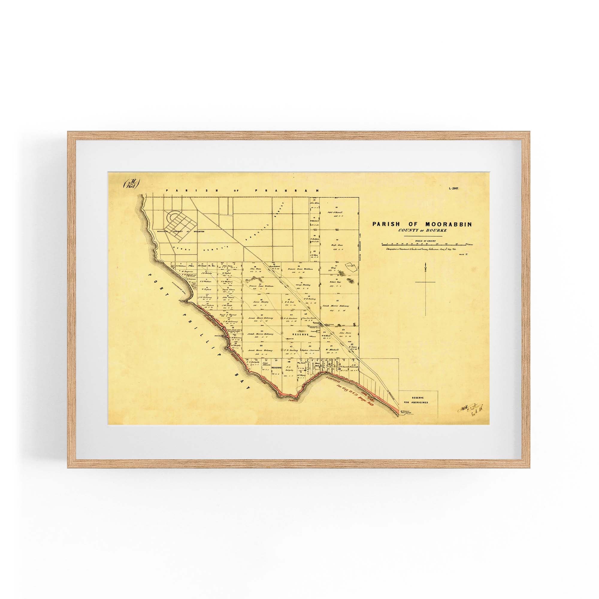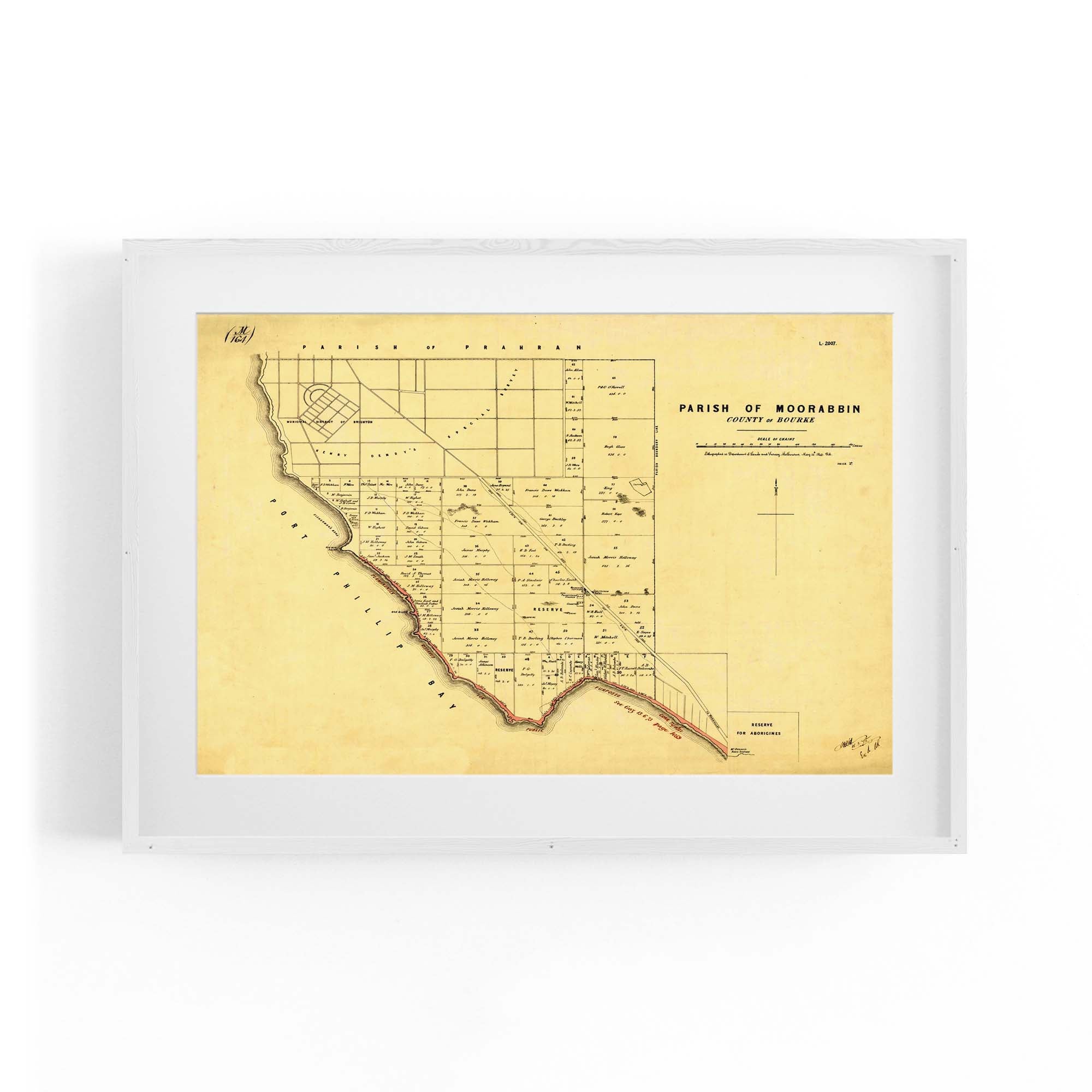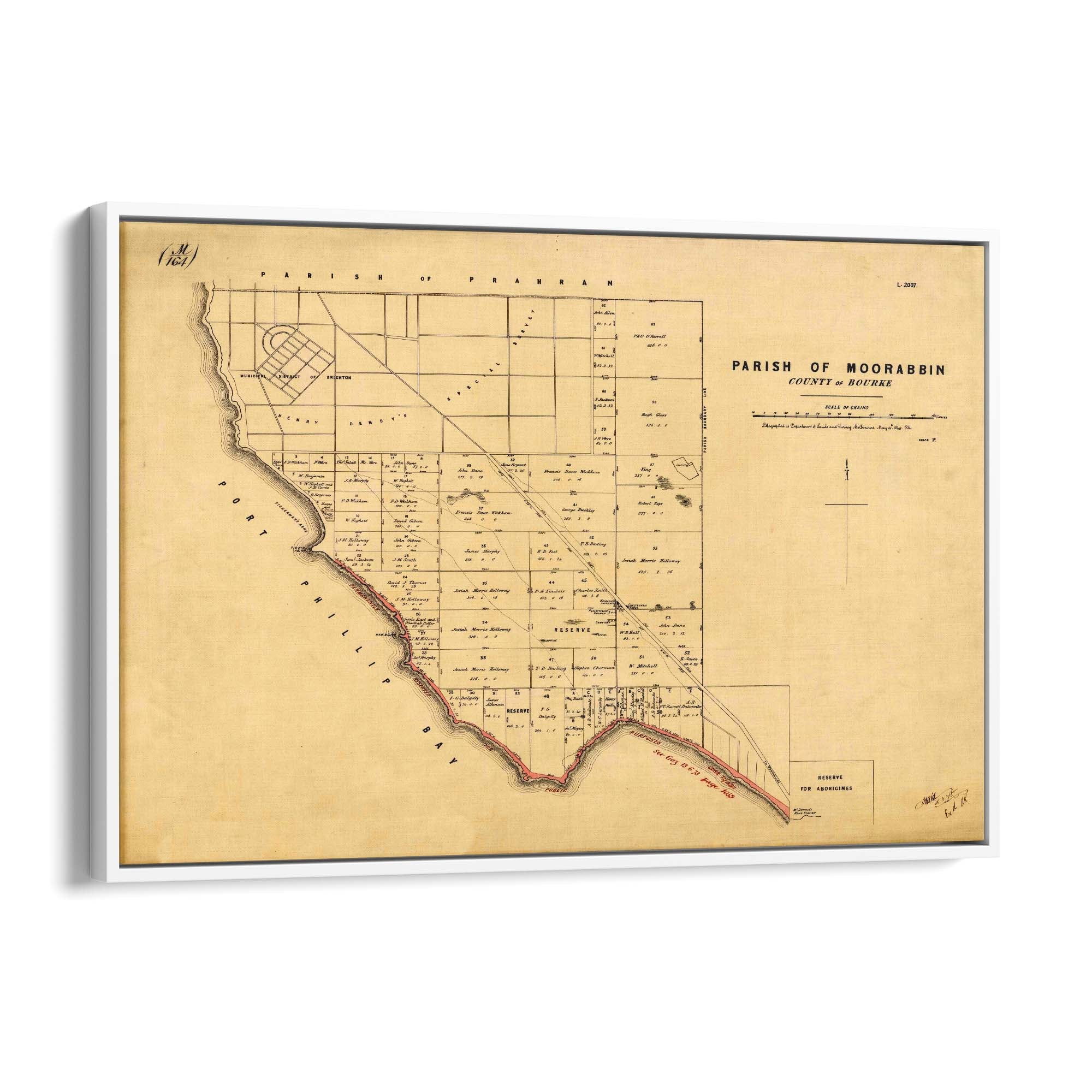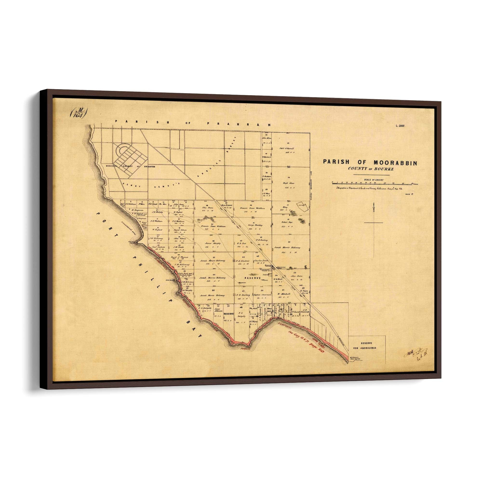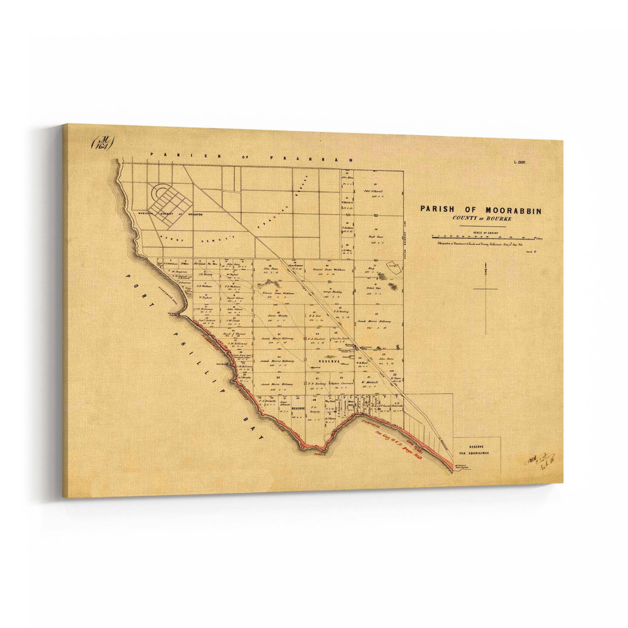 1864 Vintage Map of Beaumaris, Victoria Australia