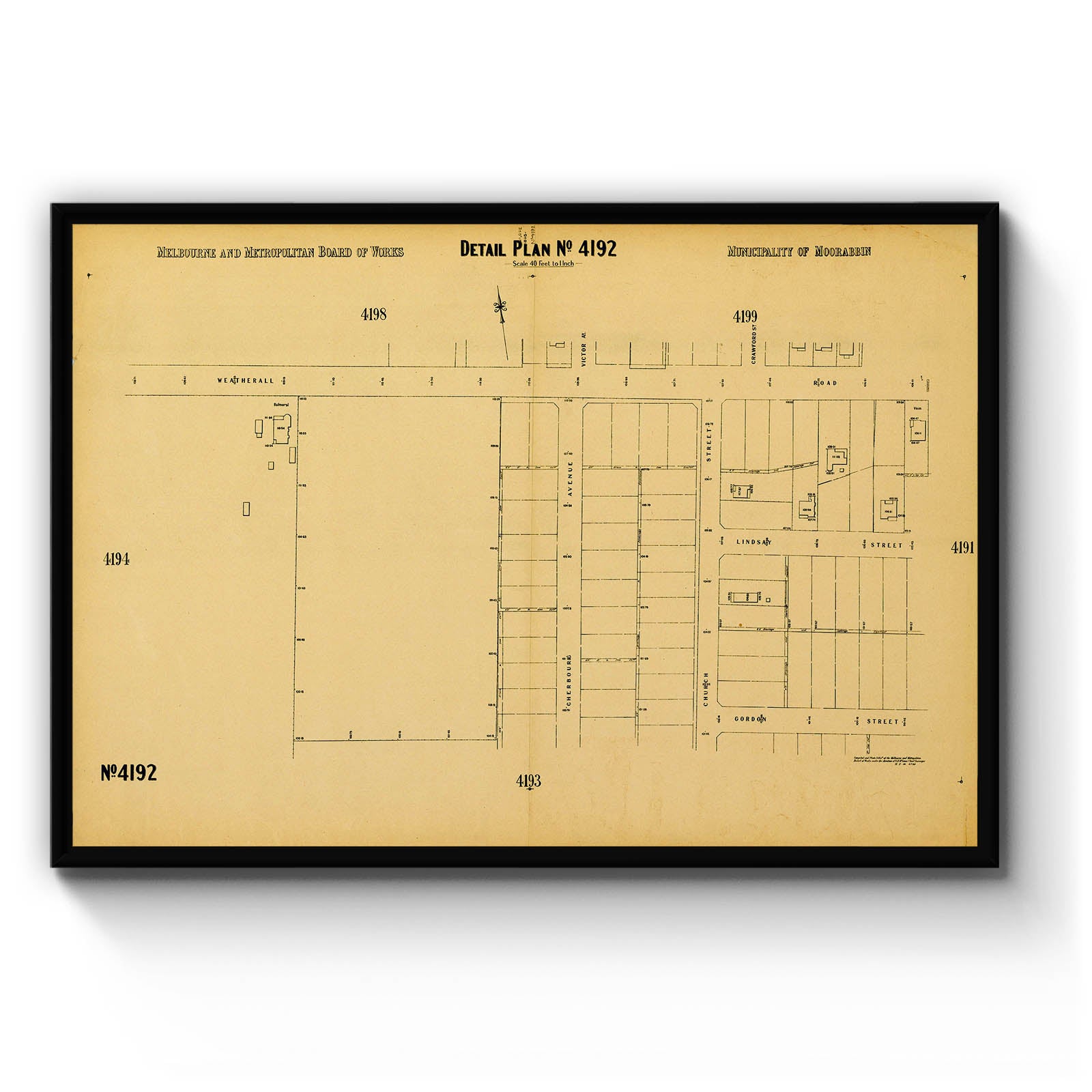 Melbourne and Metropolitan Board of Works detail plan. 4192, Municipality of Moorabbin [cartographic material].