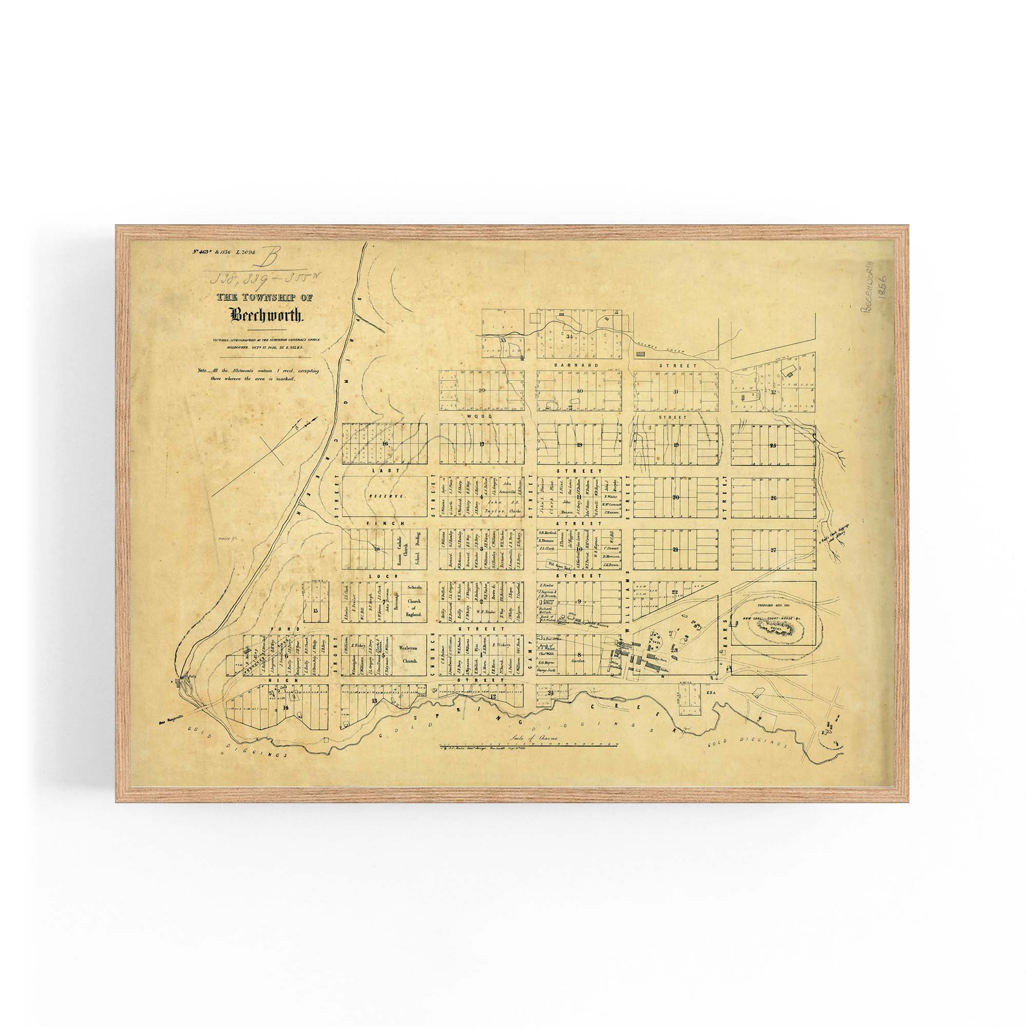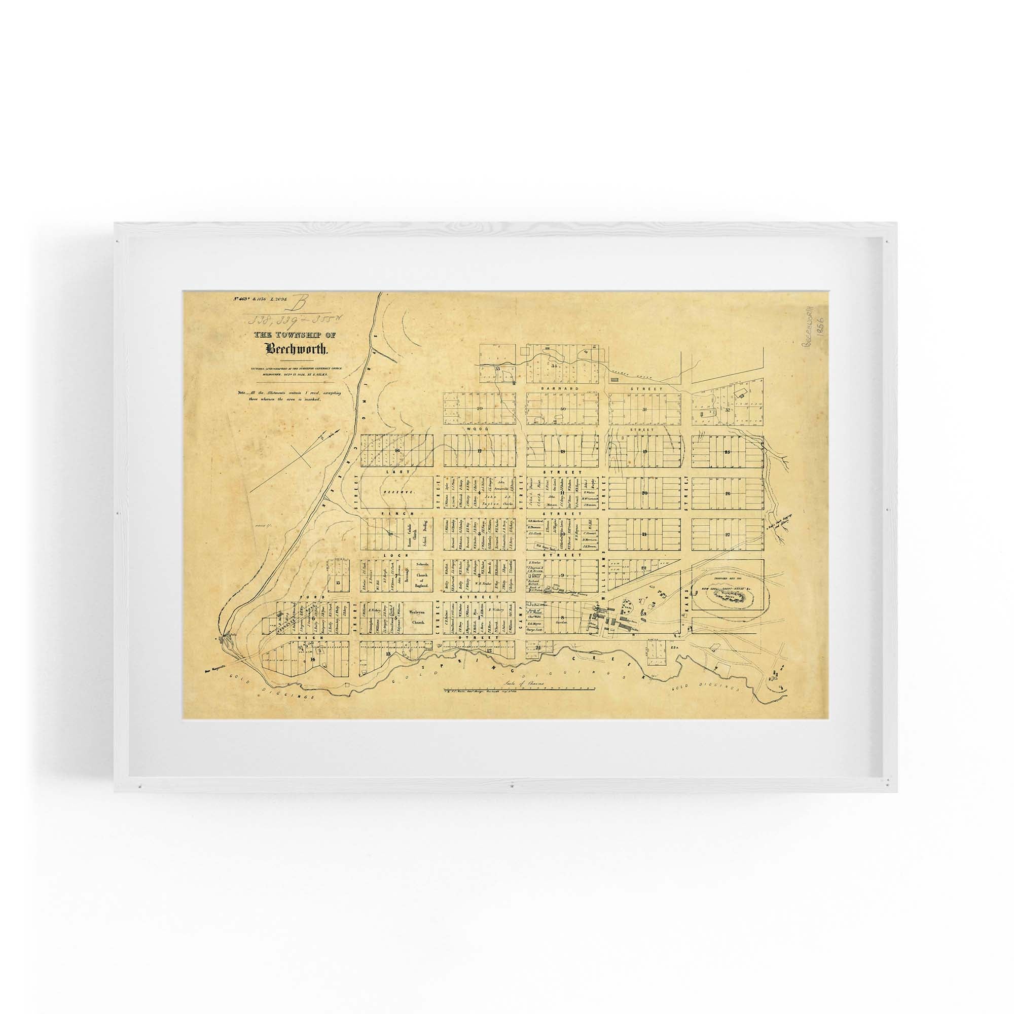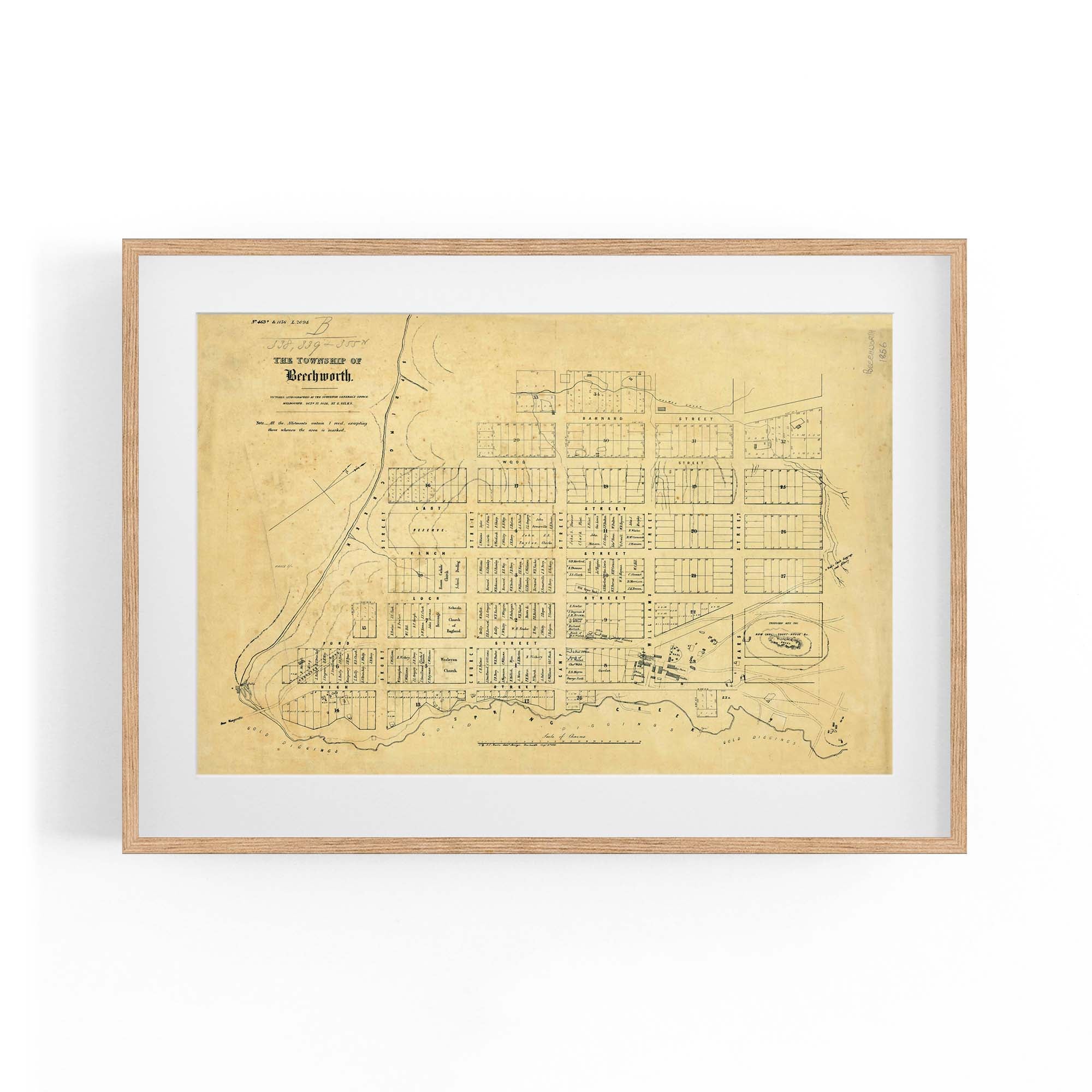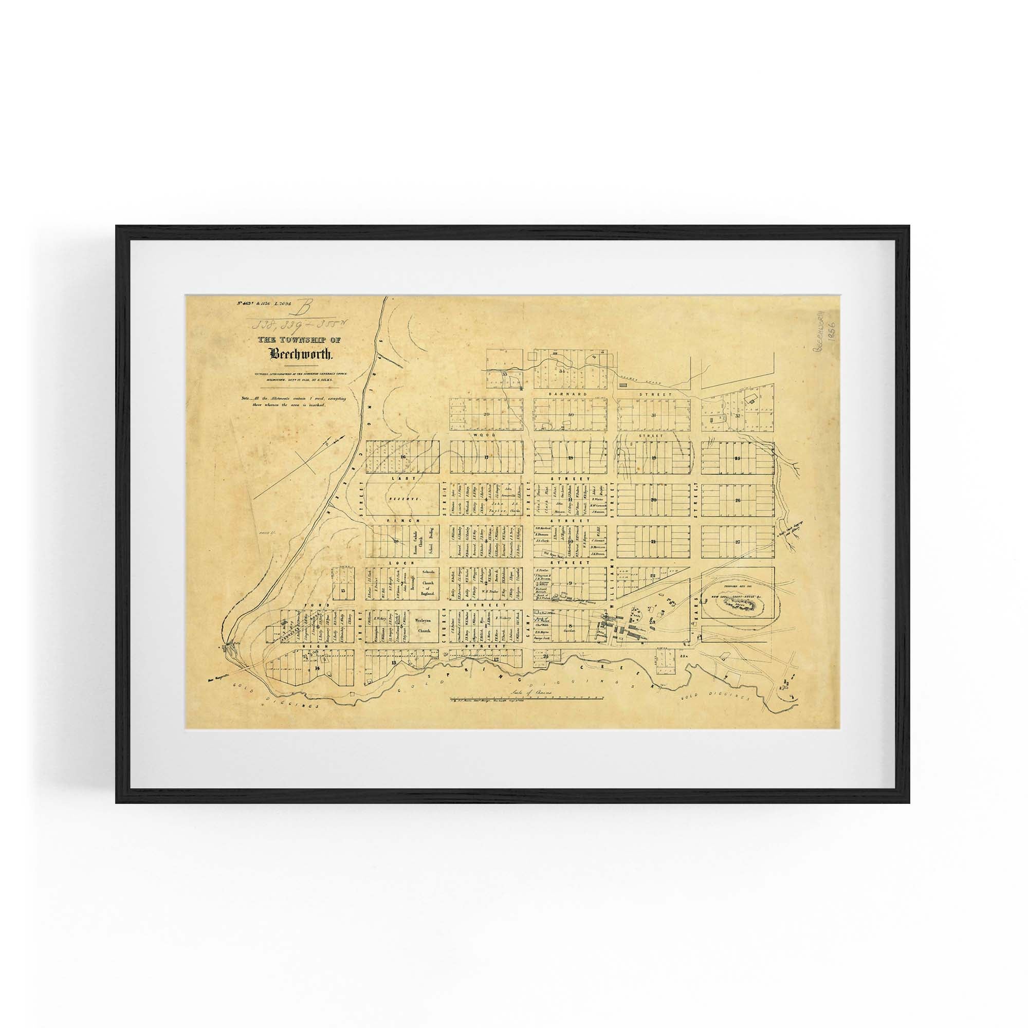 1856 Vintage Map of Beechworth, Victoria Australia