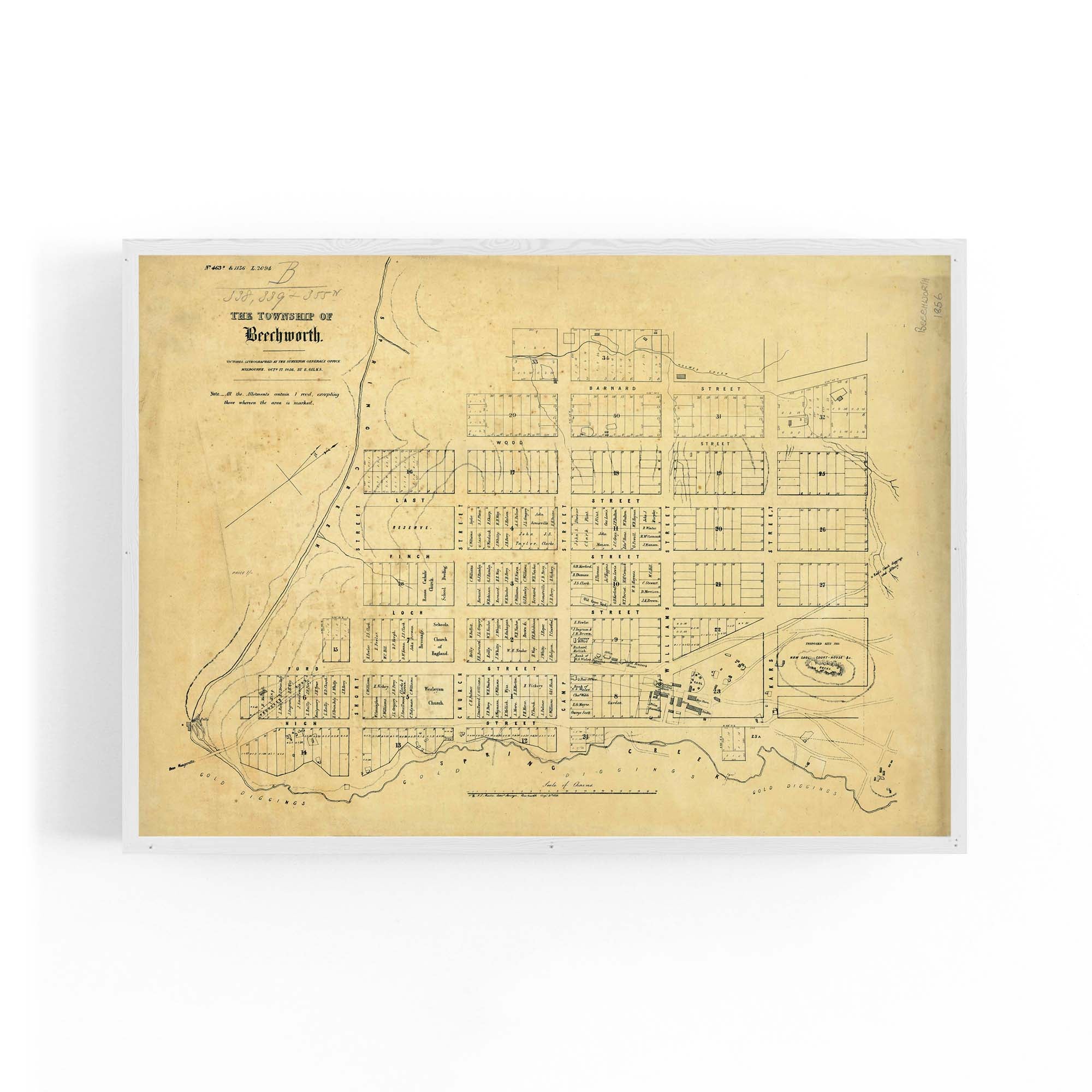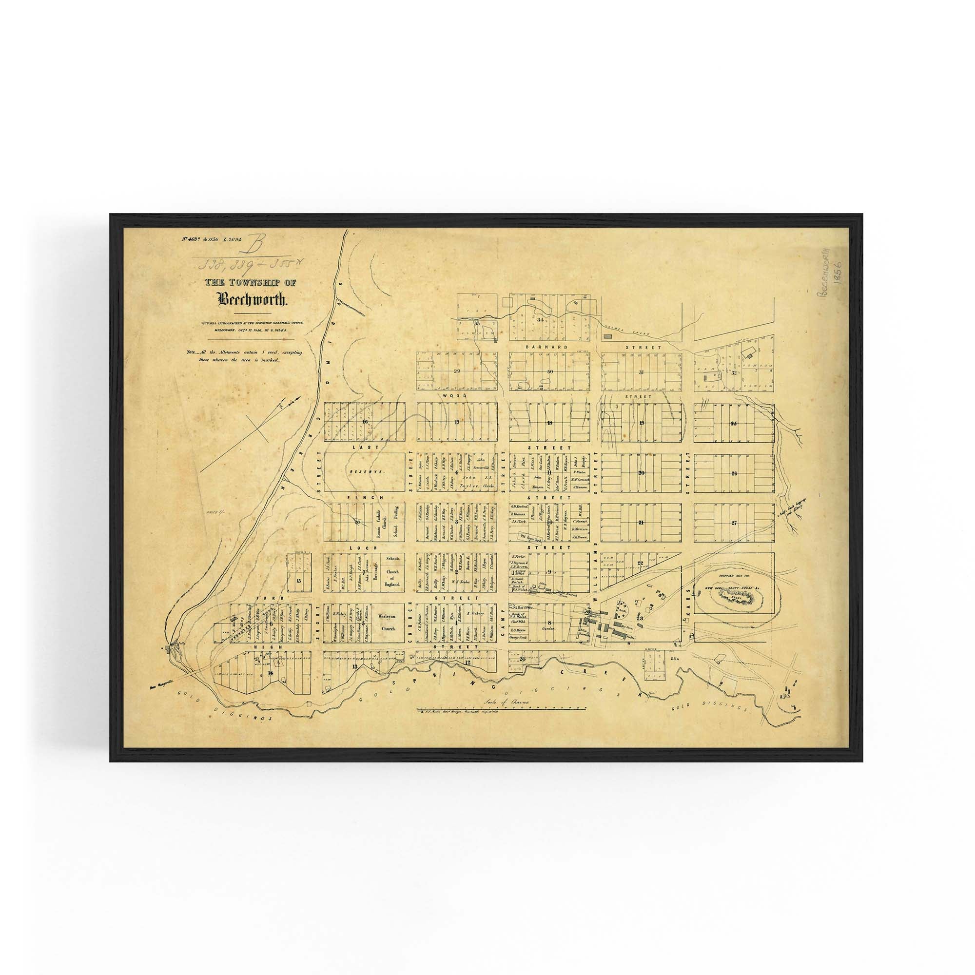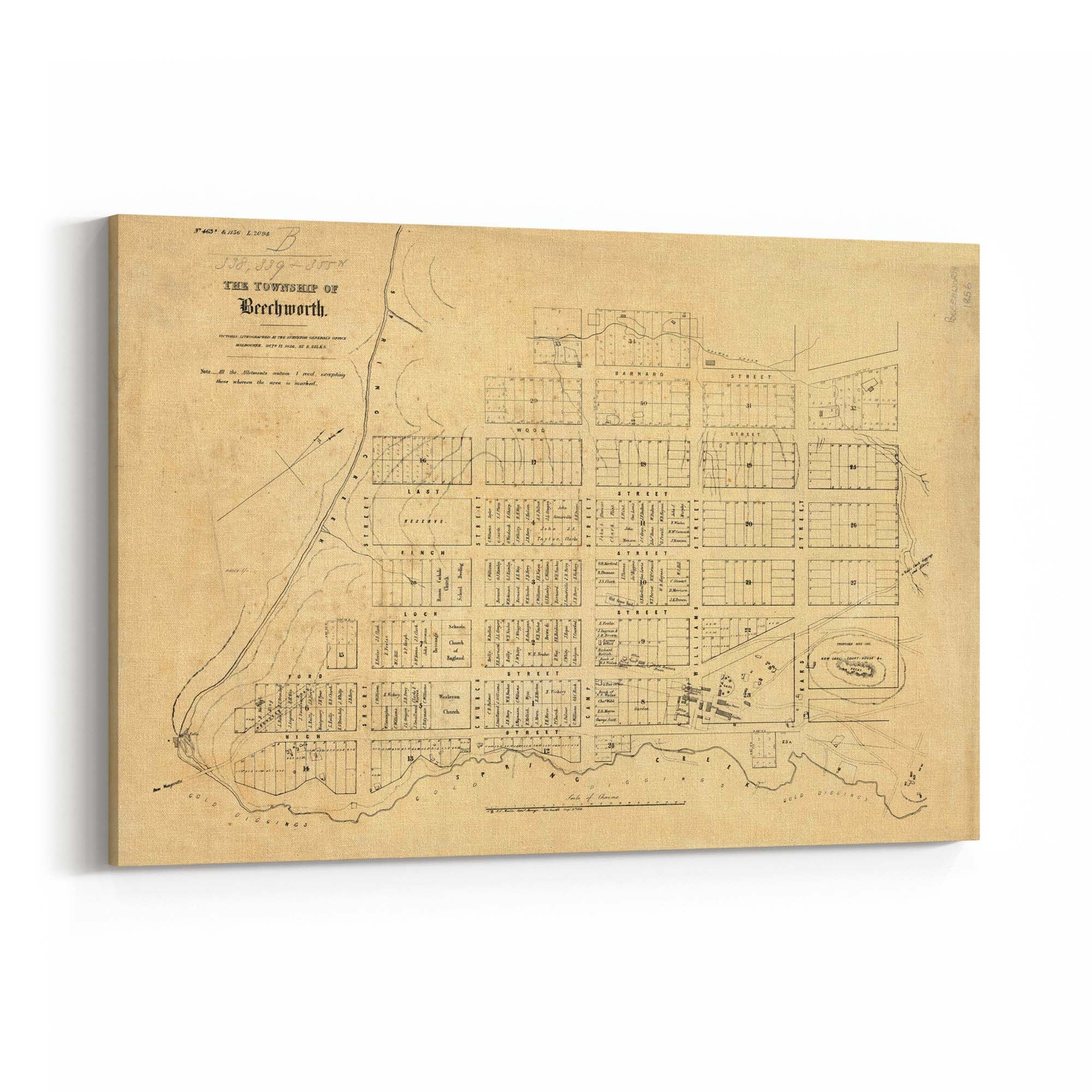 1856 Vintage Map of Beechworth, Victoria Australia