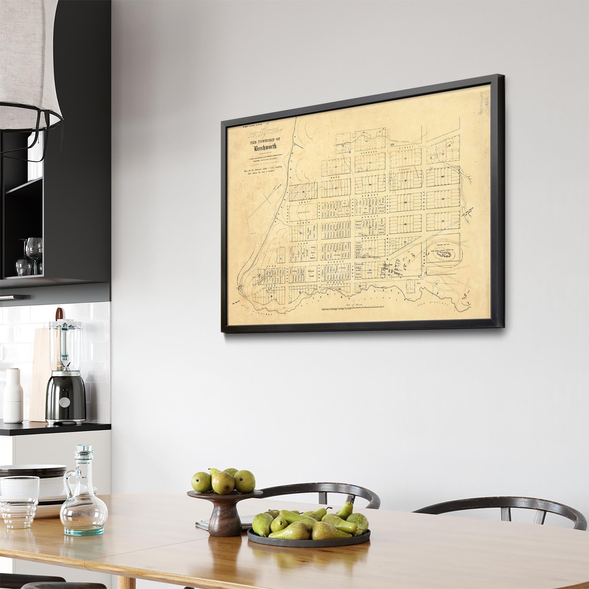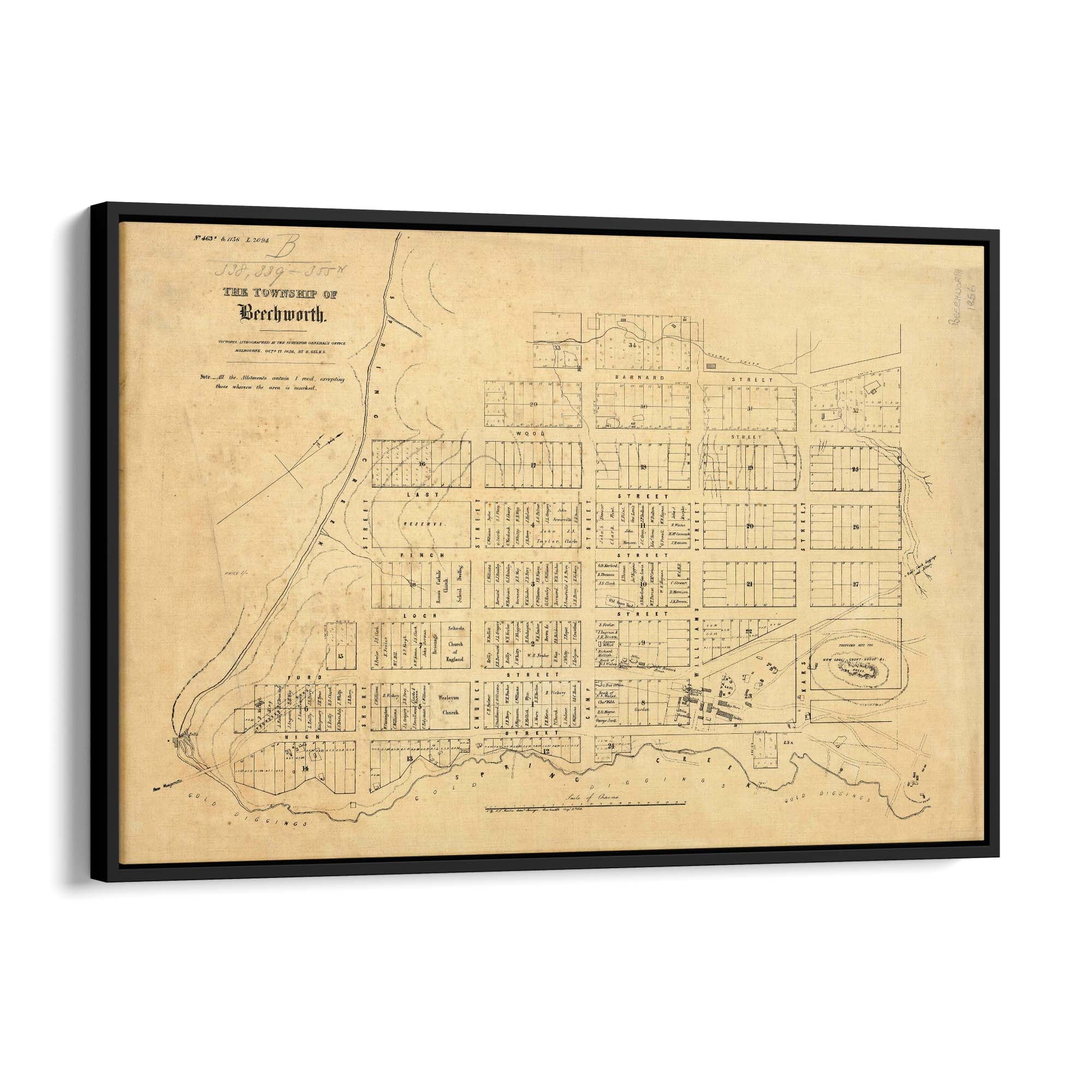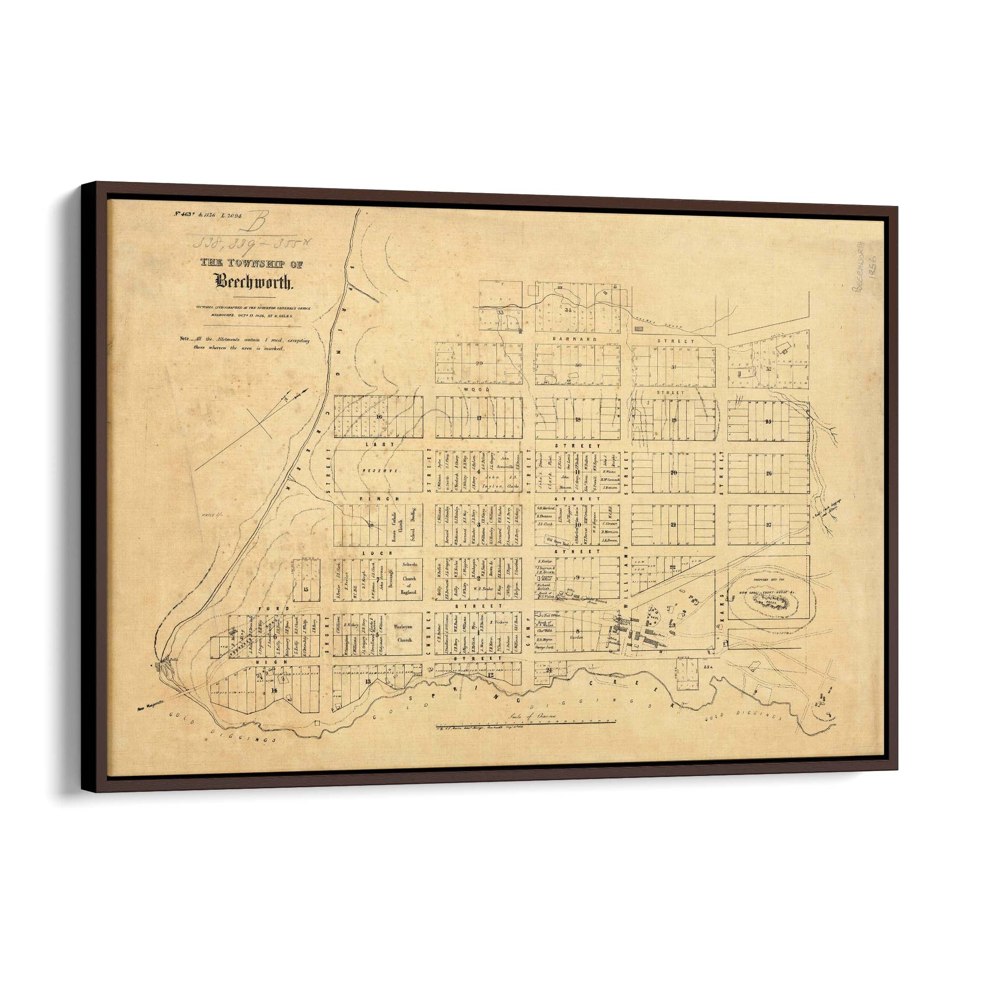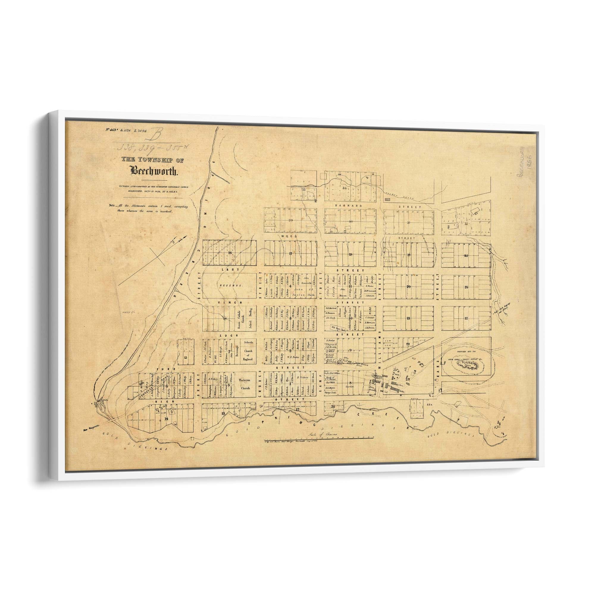 1856 Vintage Map of Beechworth, Victoria Australia