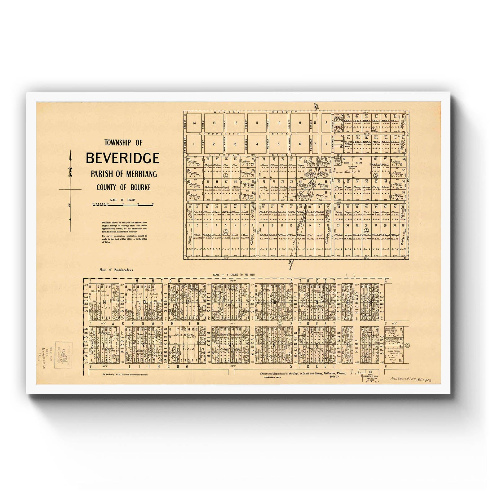 Township of Beveridge, Parish of Merriang, County of Bourke [cartographic material] / drawn and reproduced at the Dept. of Lands and Survey, Melbourne, Victoria November 1953.