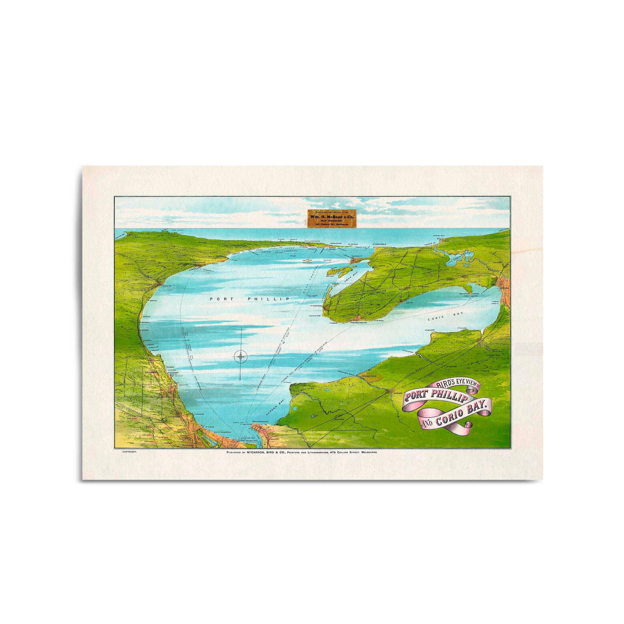 1894 Bird's Eye View of Port Phillip and Corio Bay