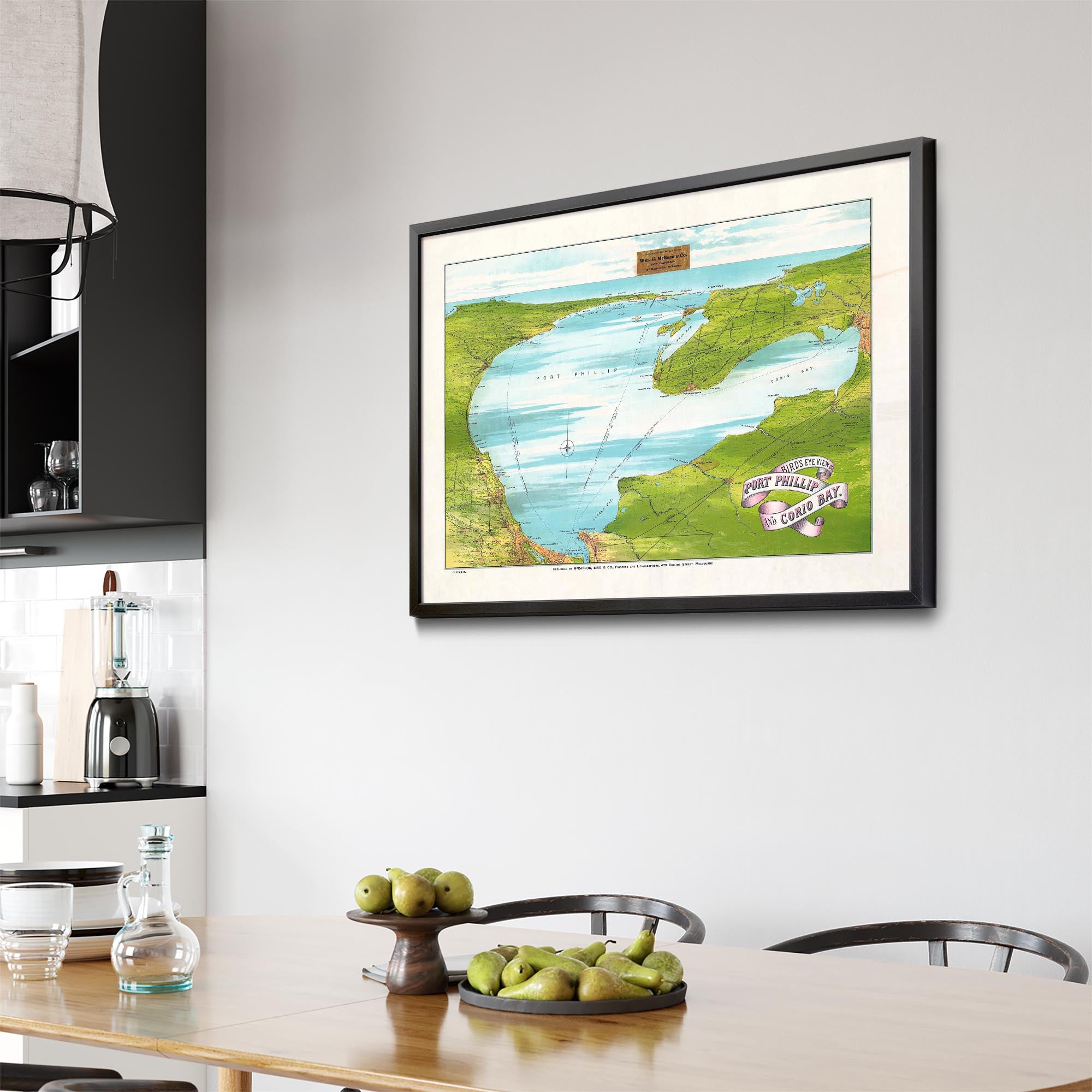 Perfect for history buffs, art enthusiasts, and everyone in between, this map is not merely a collector's item—it represents a piece of history, a work of art, and a tribute to the timeless beauty of Port Phillip Bay and its surrounding communities.