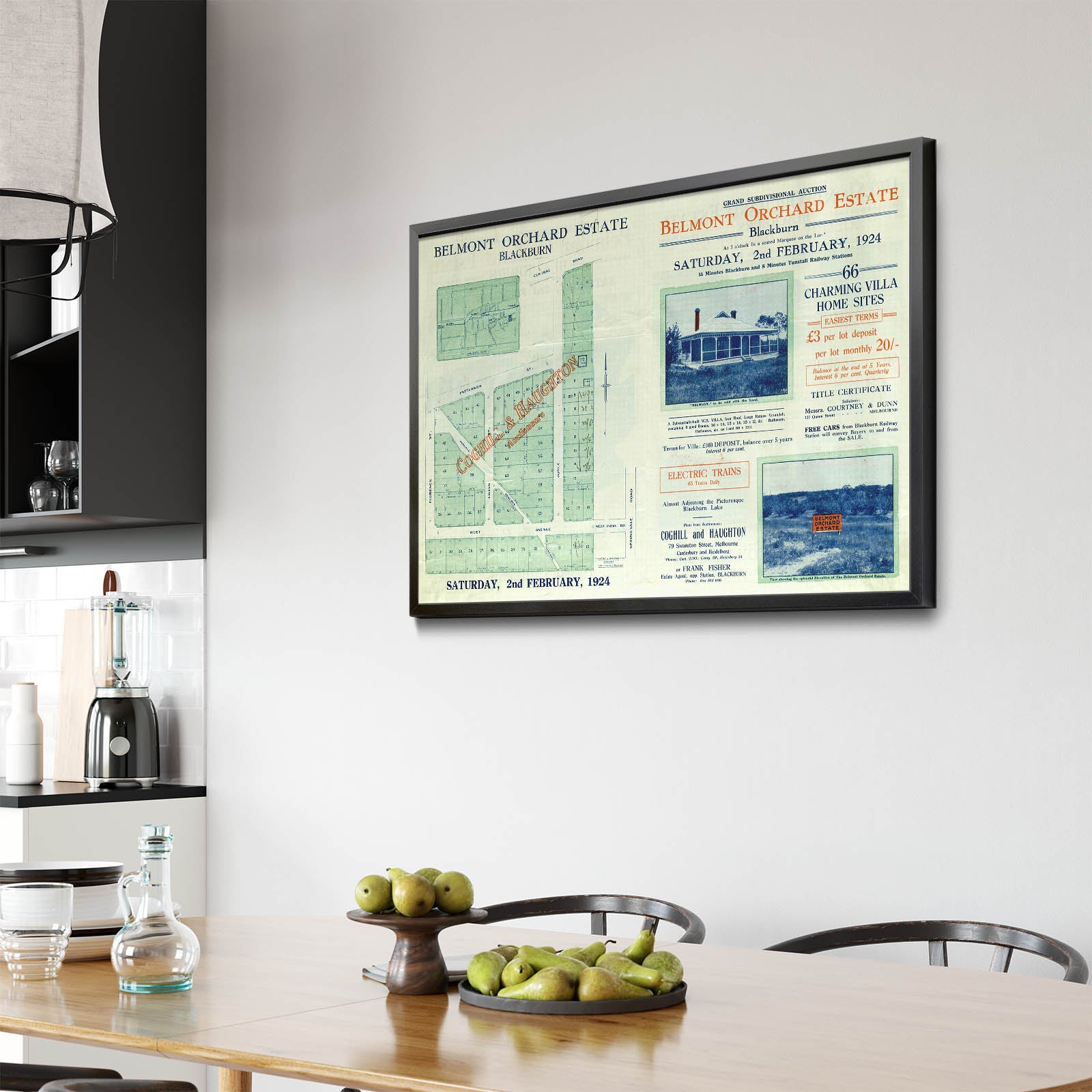 Recently moving to Harcourt and being interested in the history of the area, it seemed fitting to purchase a vintage map of the area which is displayed on our kitchen wall for us to study easily, identifying the block of land we bought. Nicely framed too.