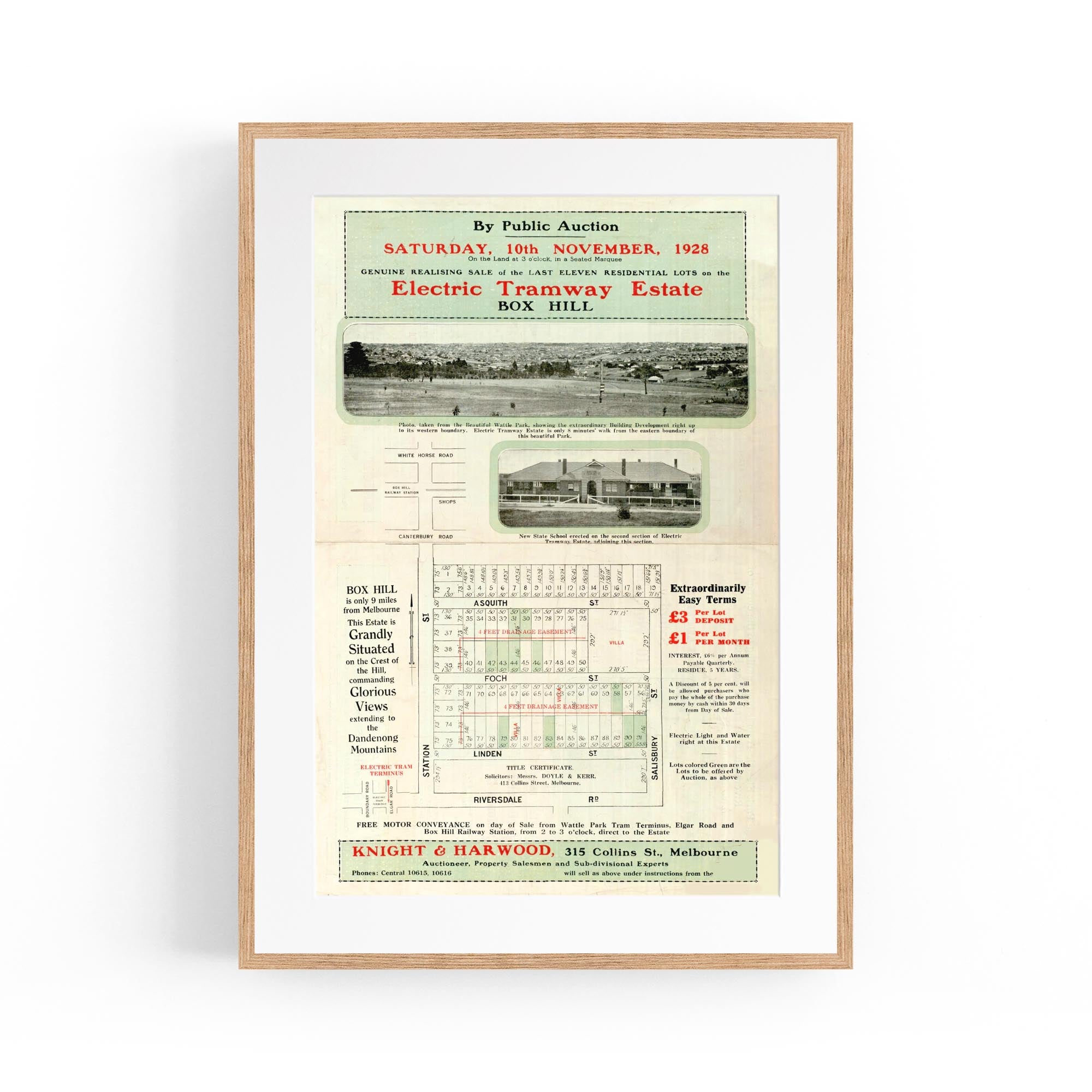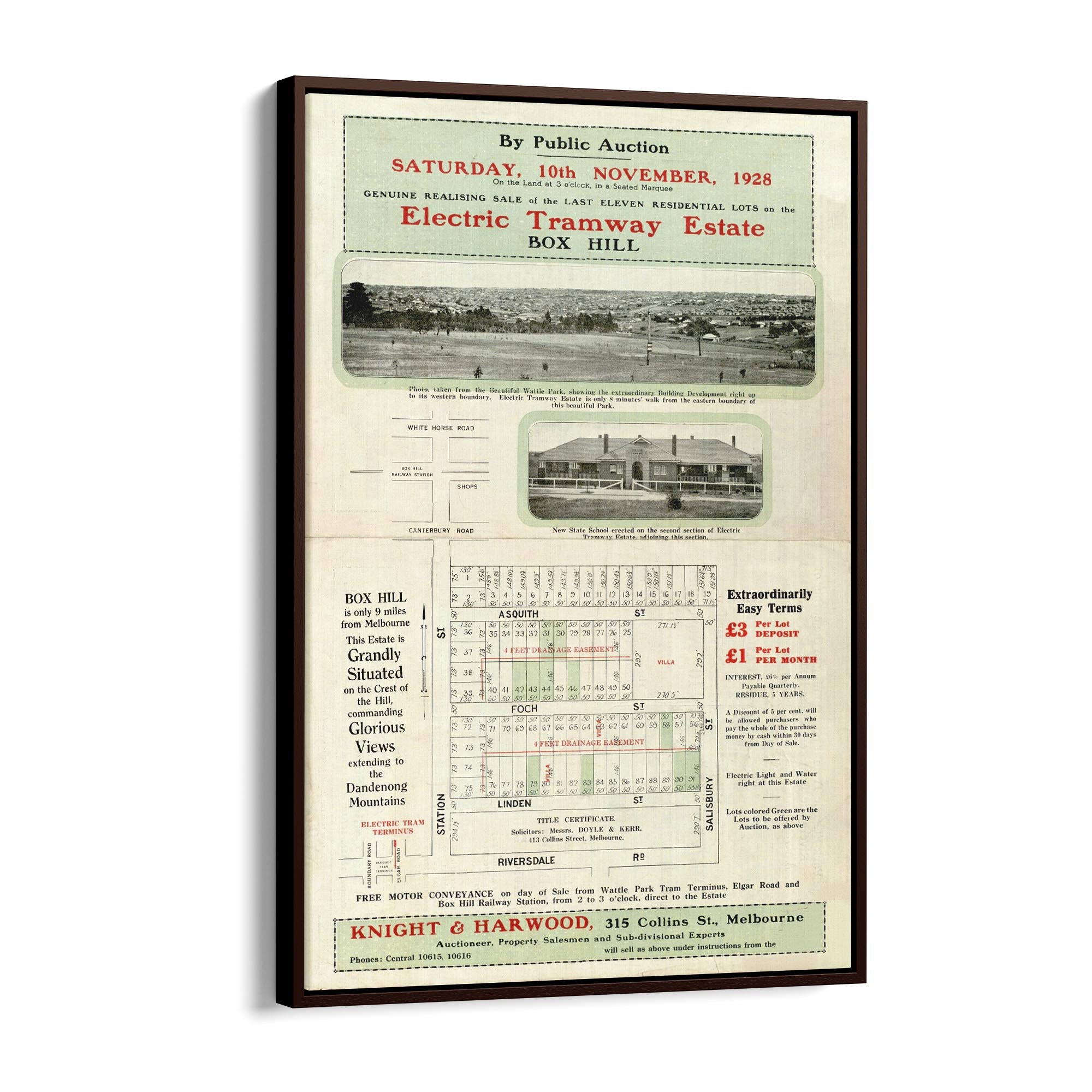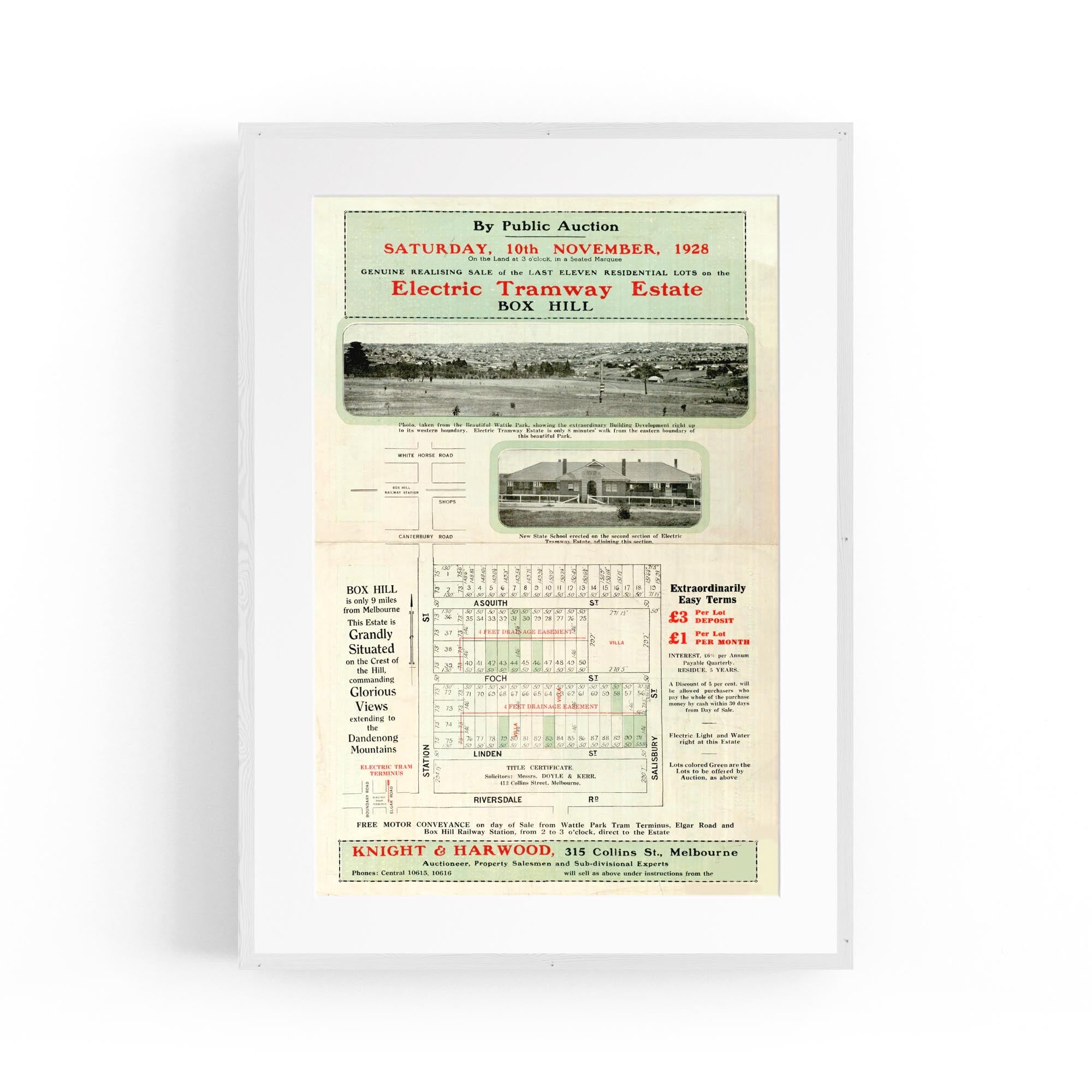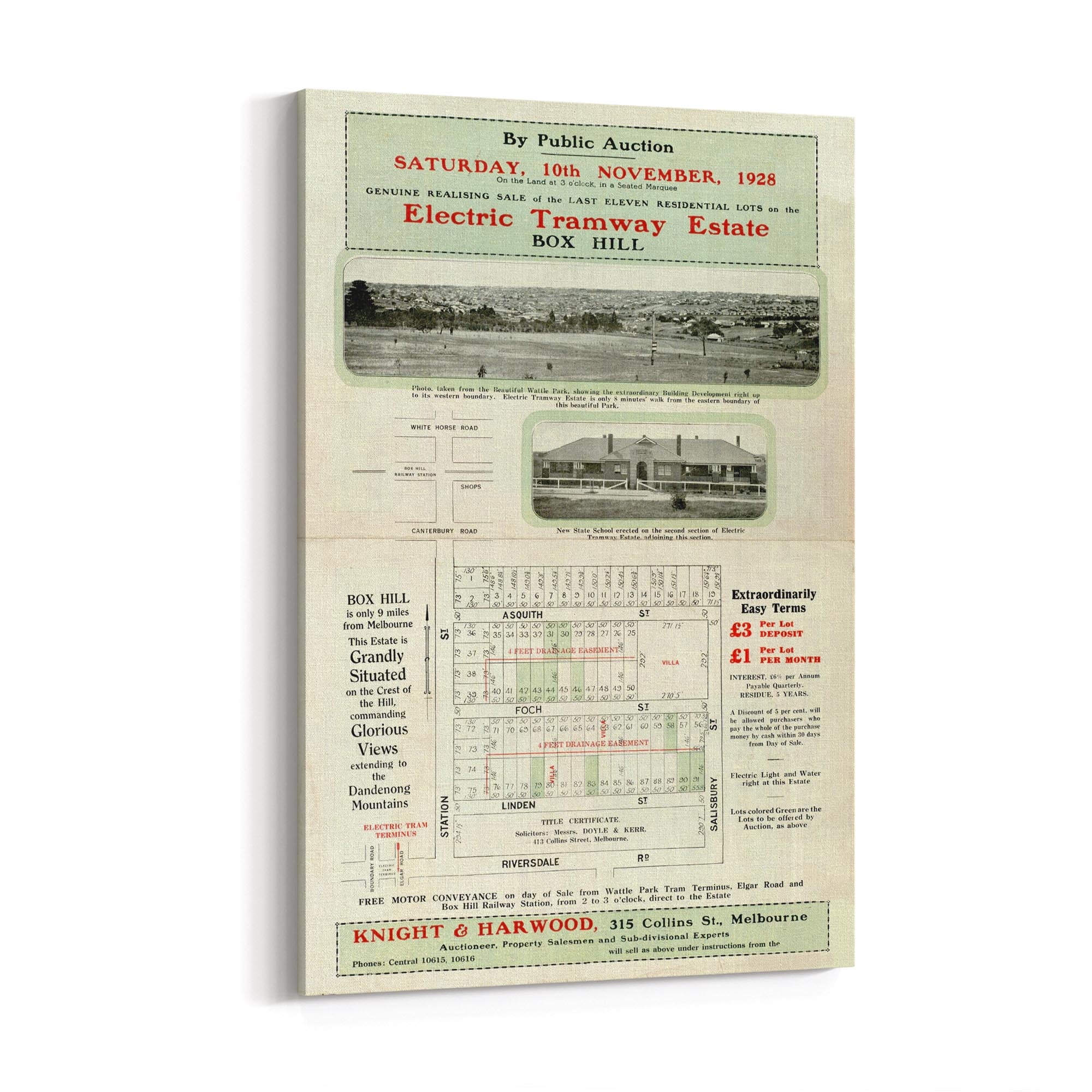 1928 Vintage Map of Box Hill, Victoria Australia