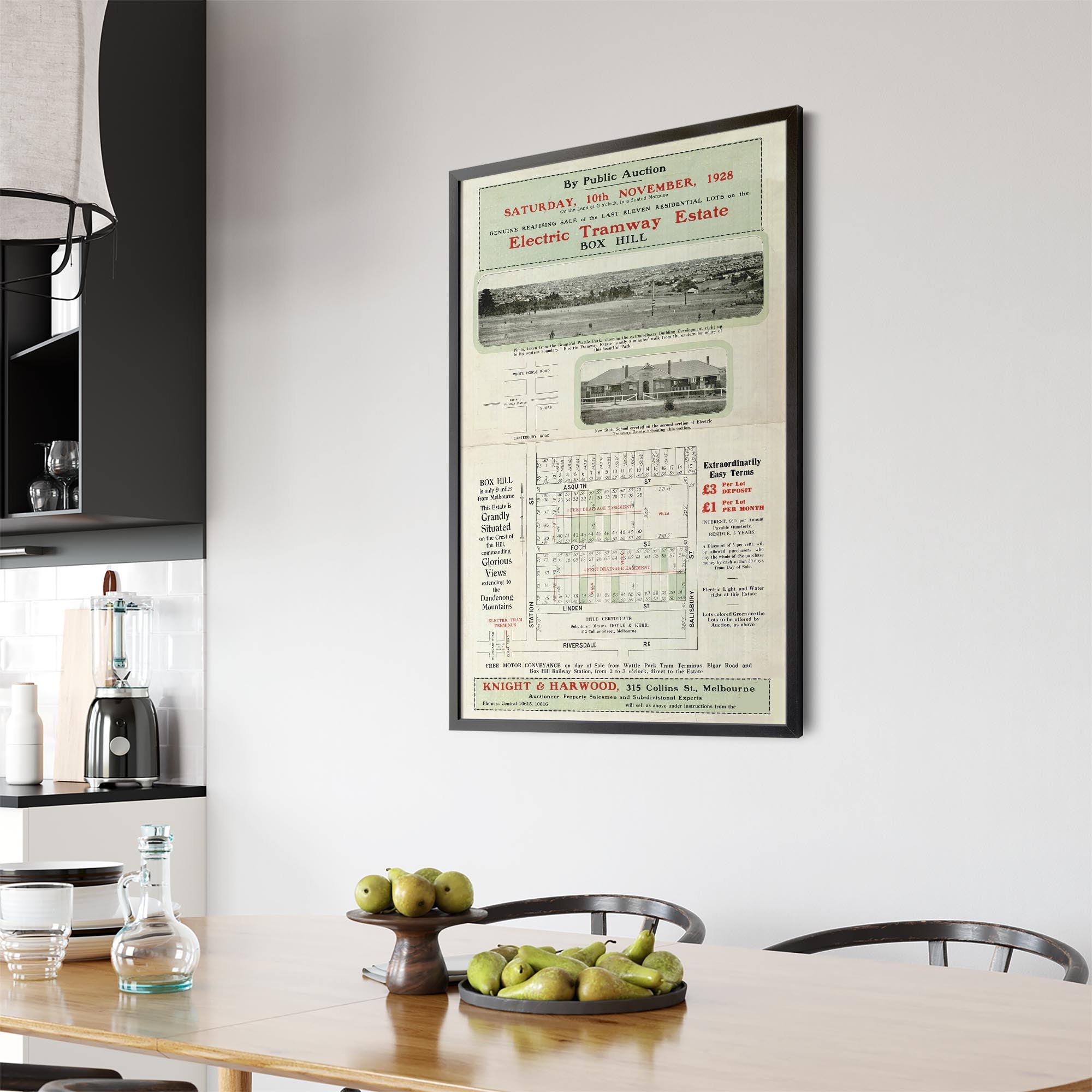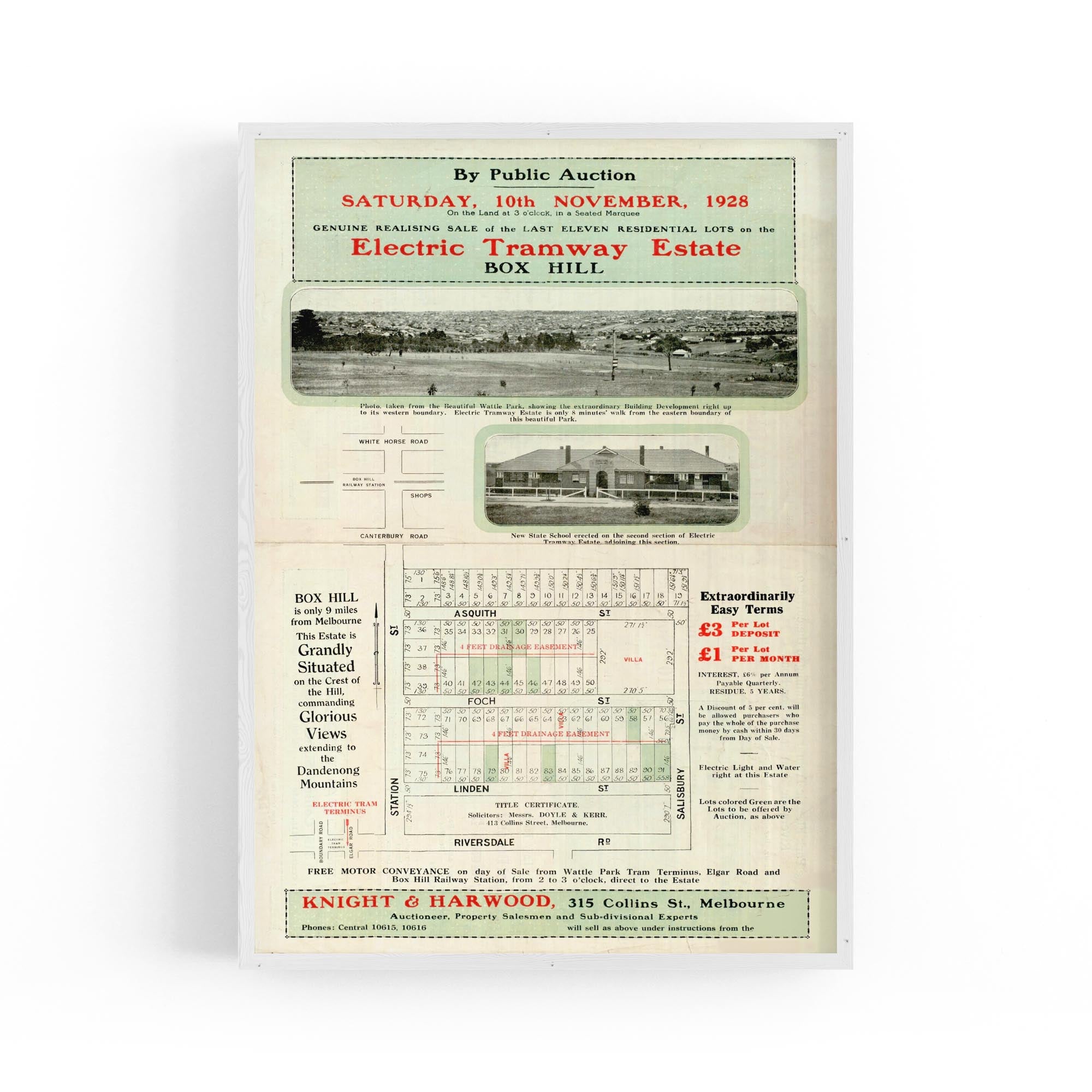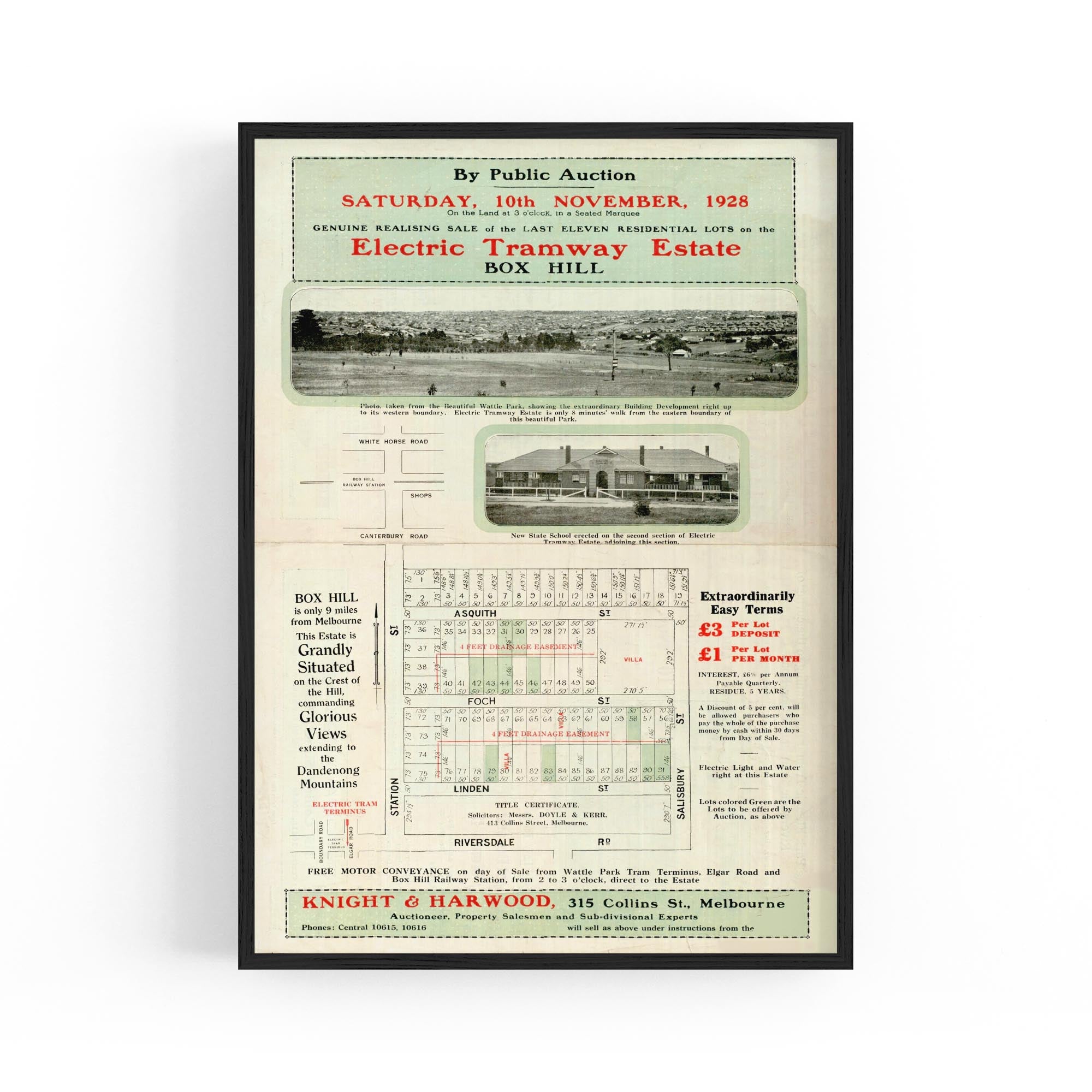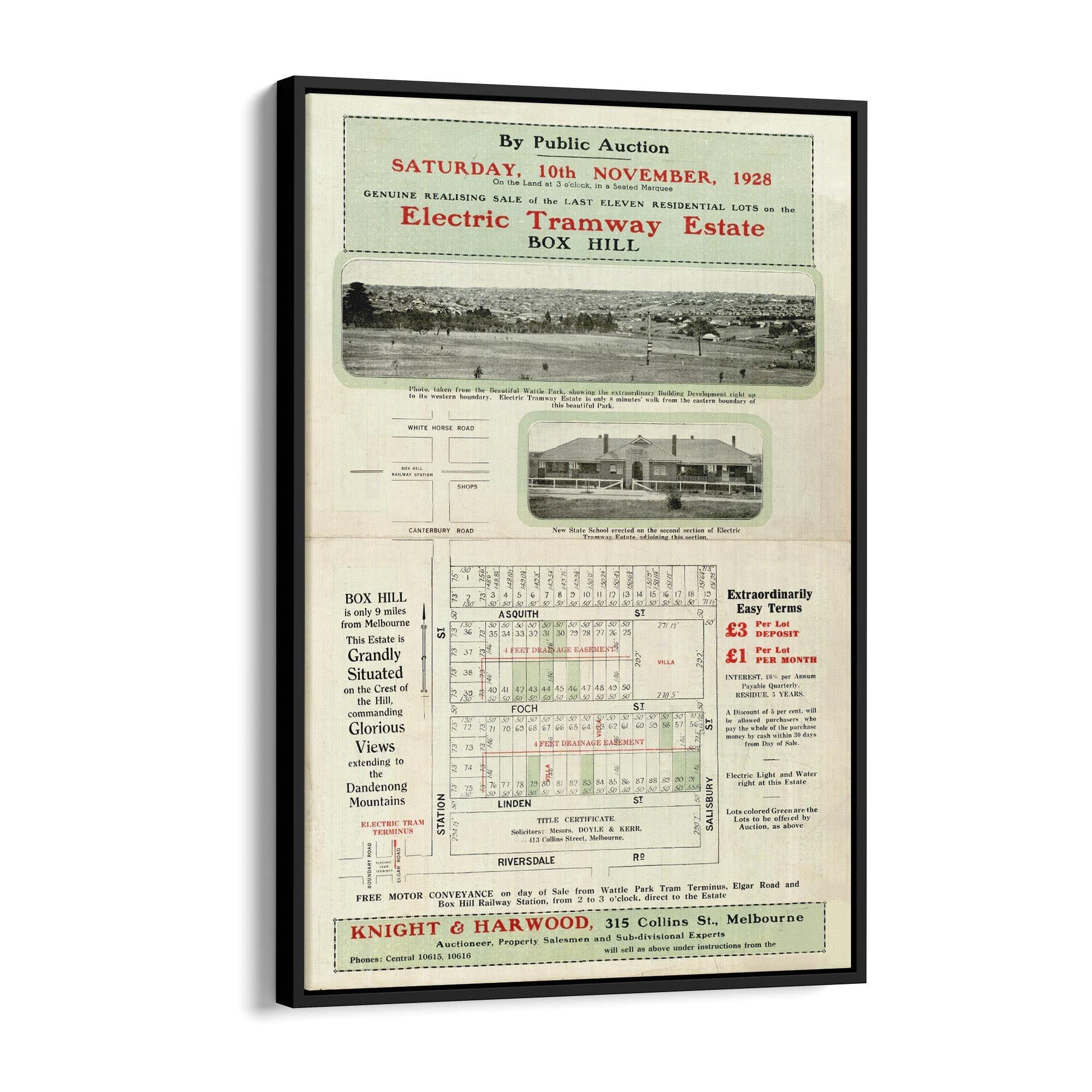 1928 Vintage Map of Box Hill, Victoria Australia