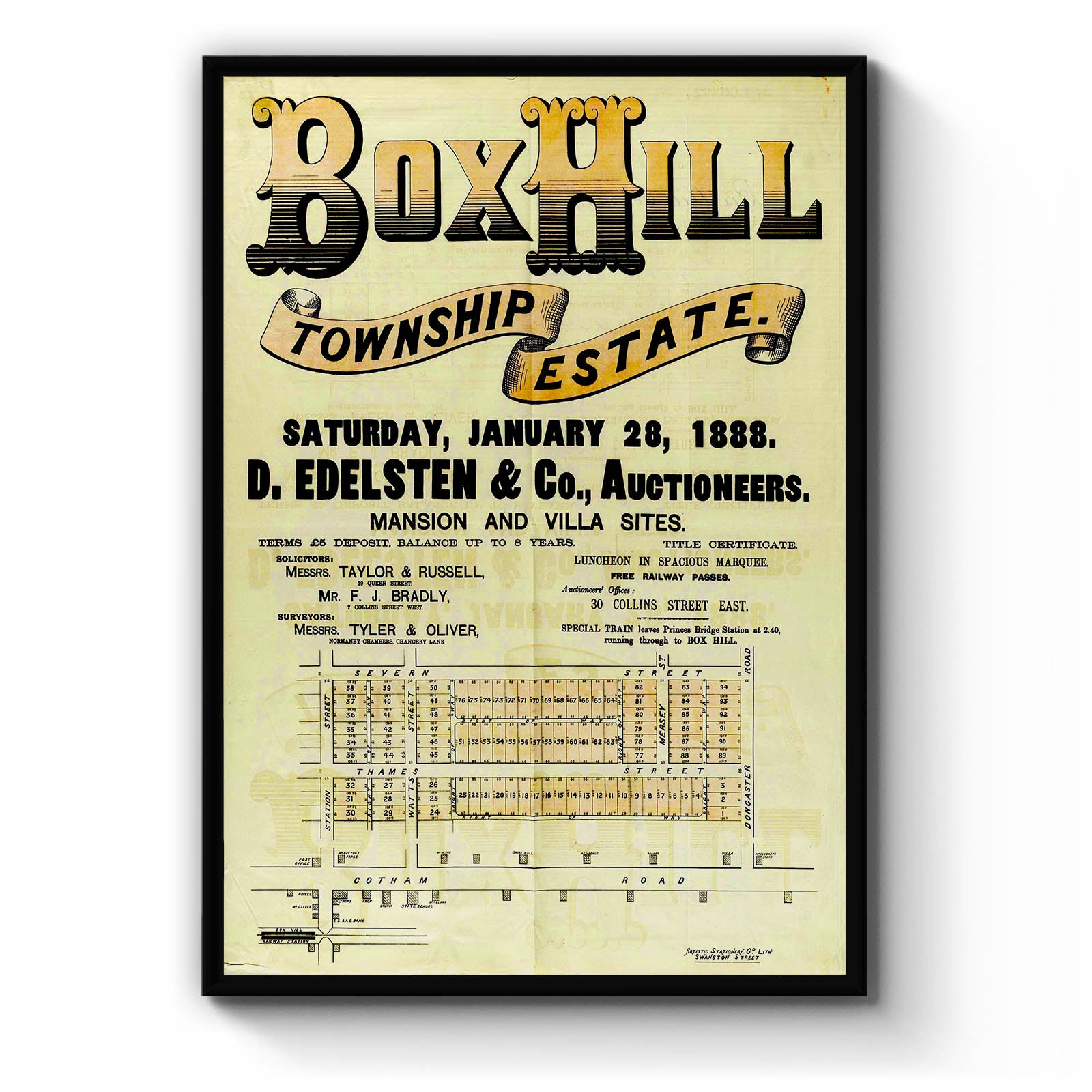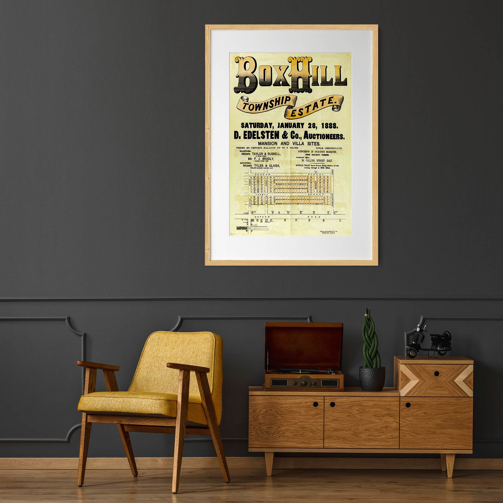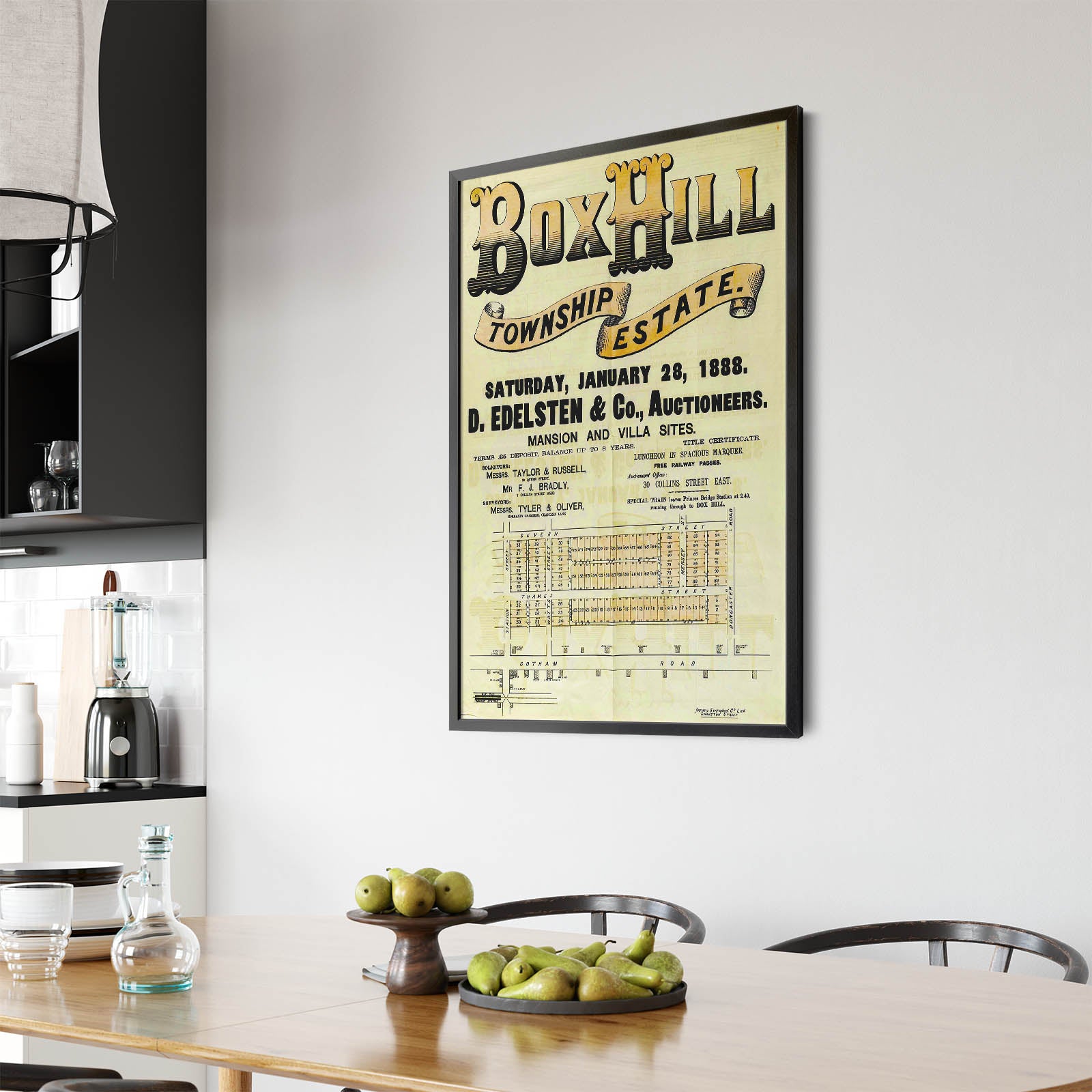 Recently moving to Harcourt and being interested in the history of the area, it seemed fitting to purchase a vintage map of the area which is displayed on our kitchen wall for us to study easily, identifying the block of land we bought. Nicely framed too.