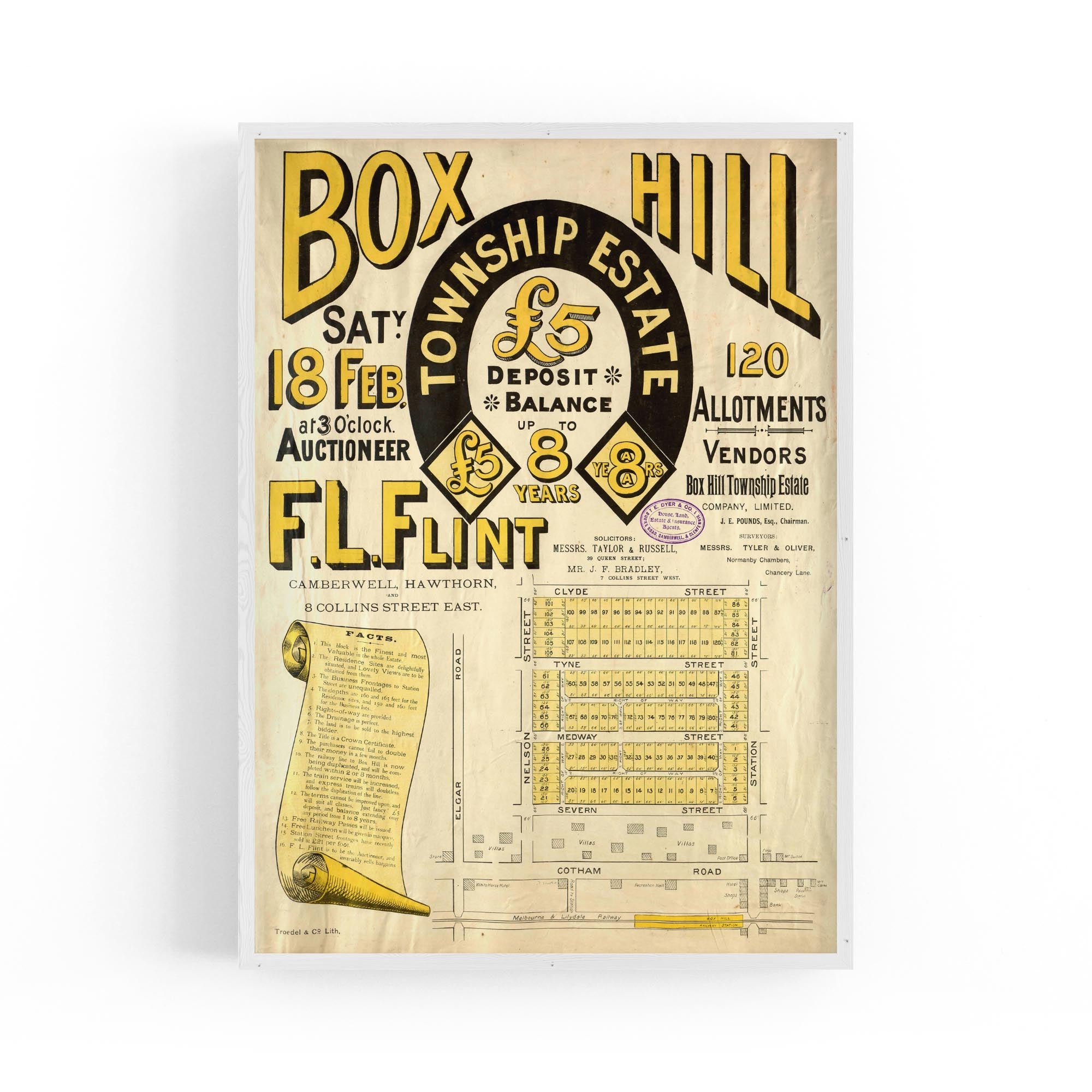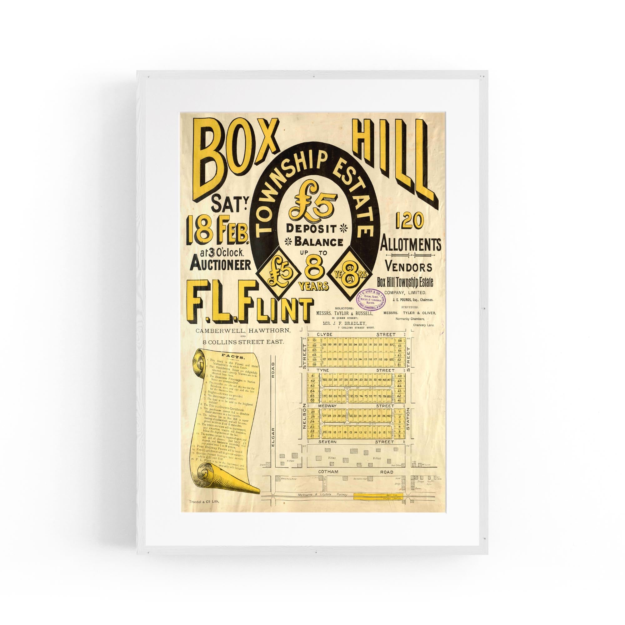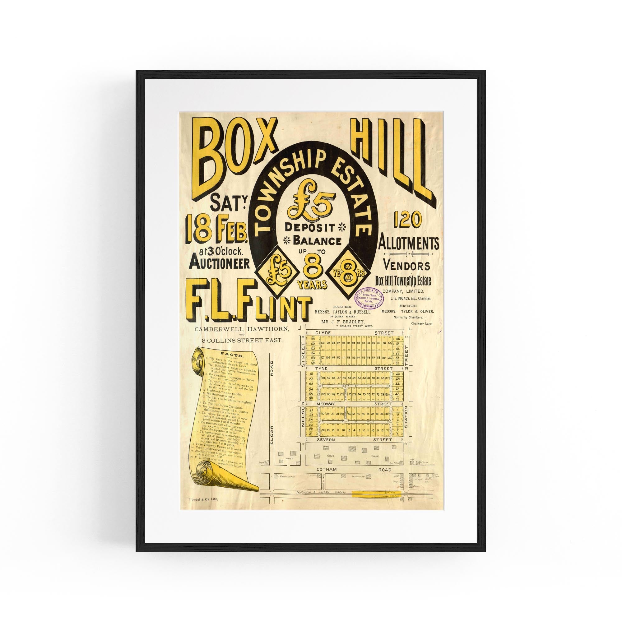 1888 Vintage Map of Box Hill, Victoria Australia