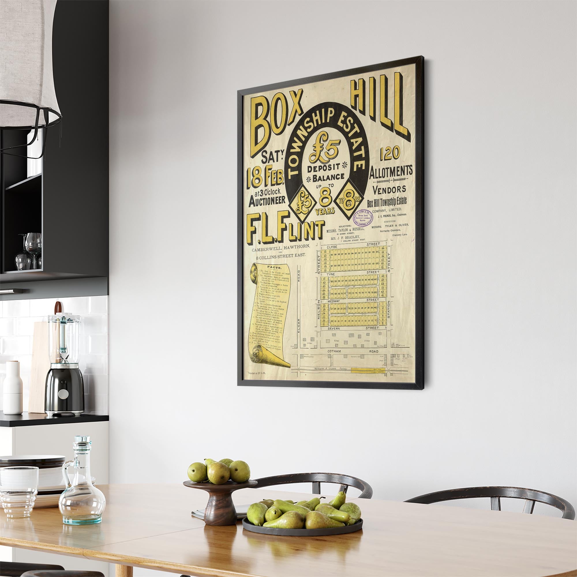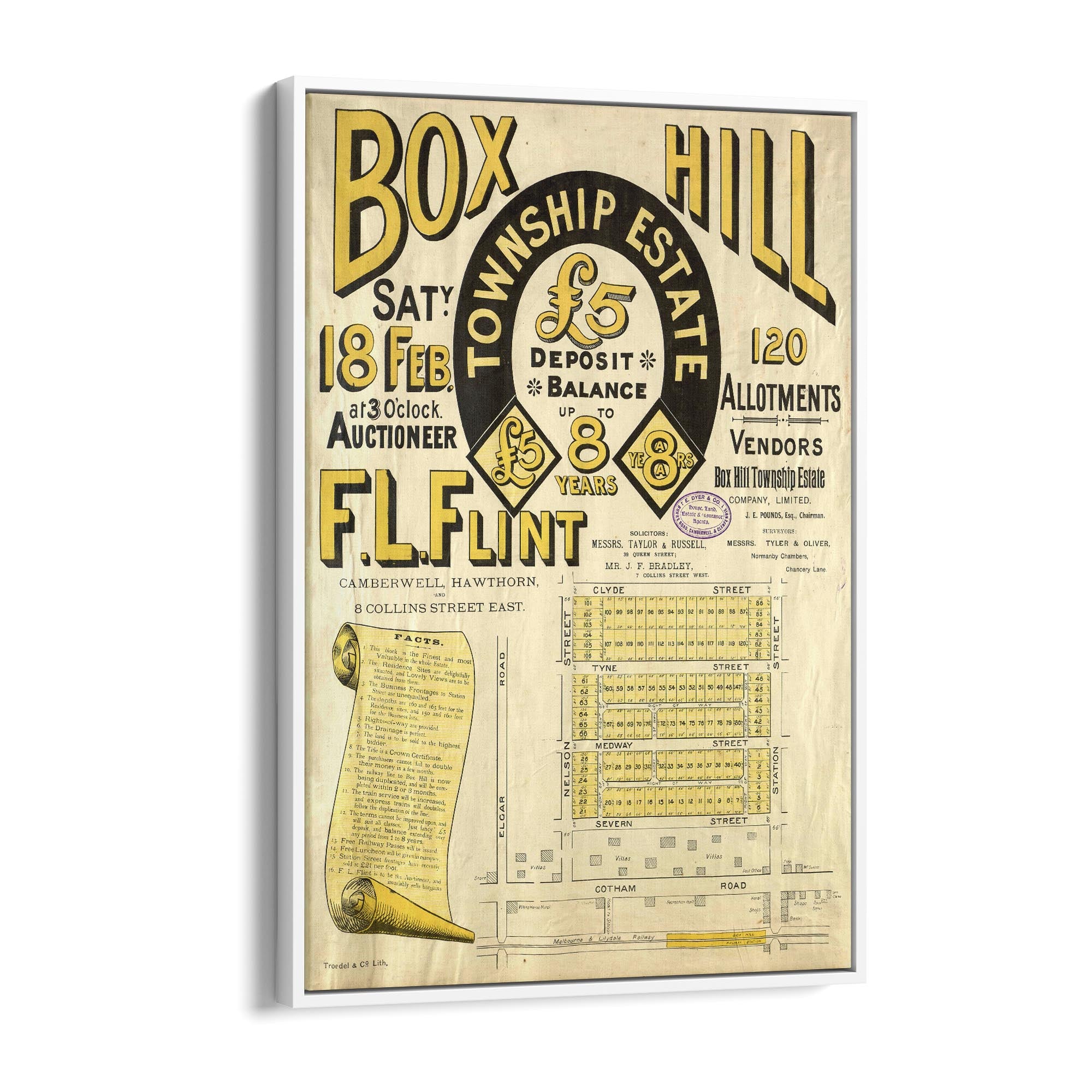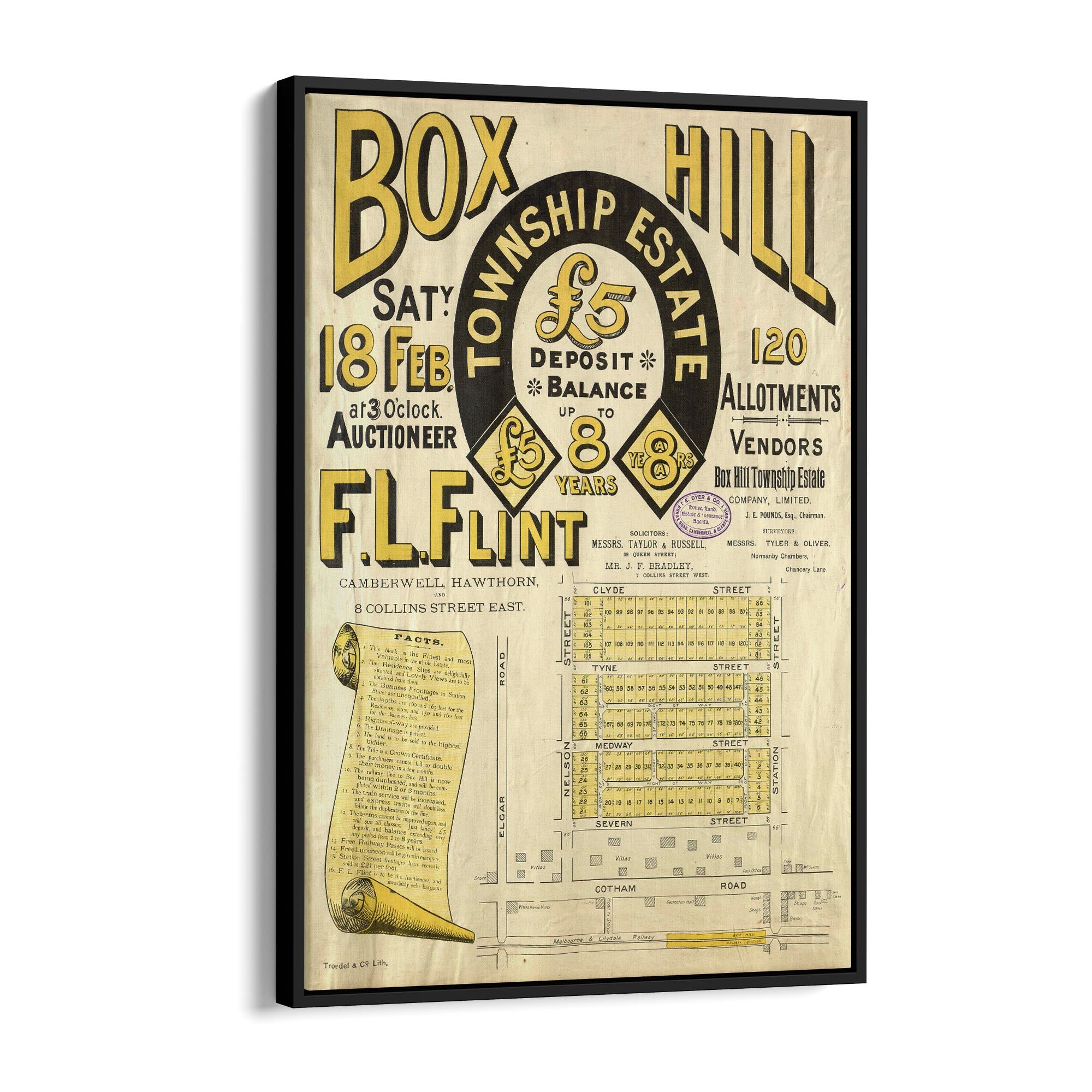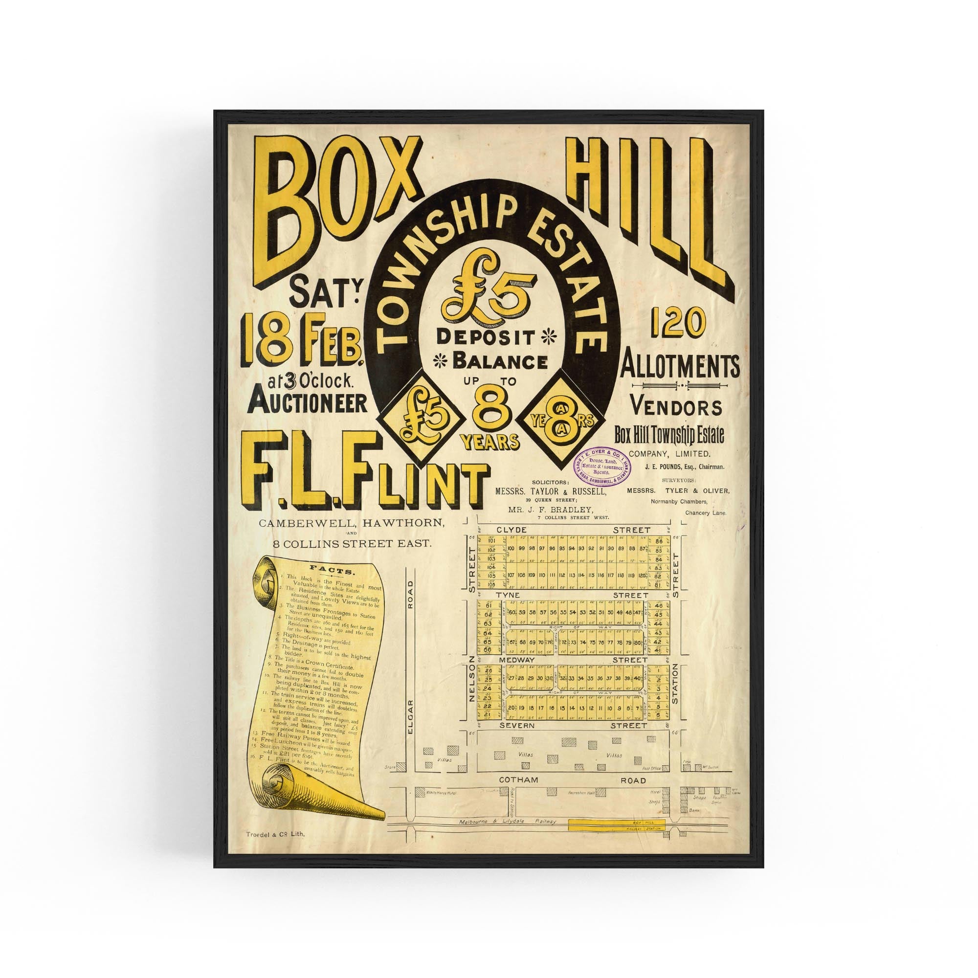 1888 Vintage Map of Box Hill, Victoria Australia