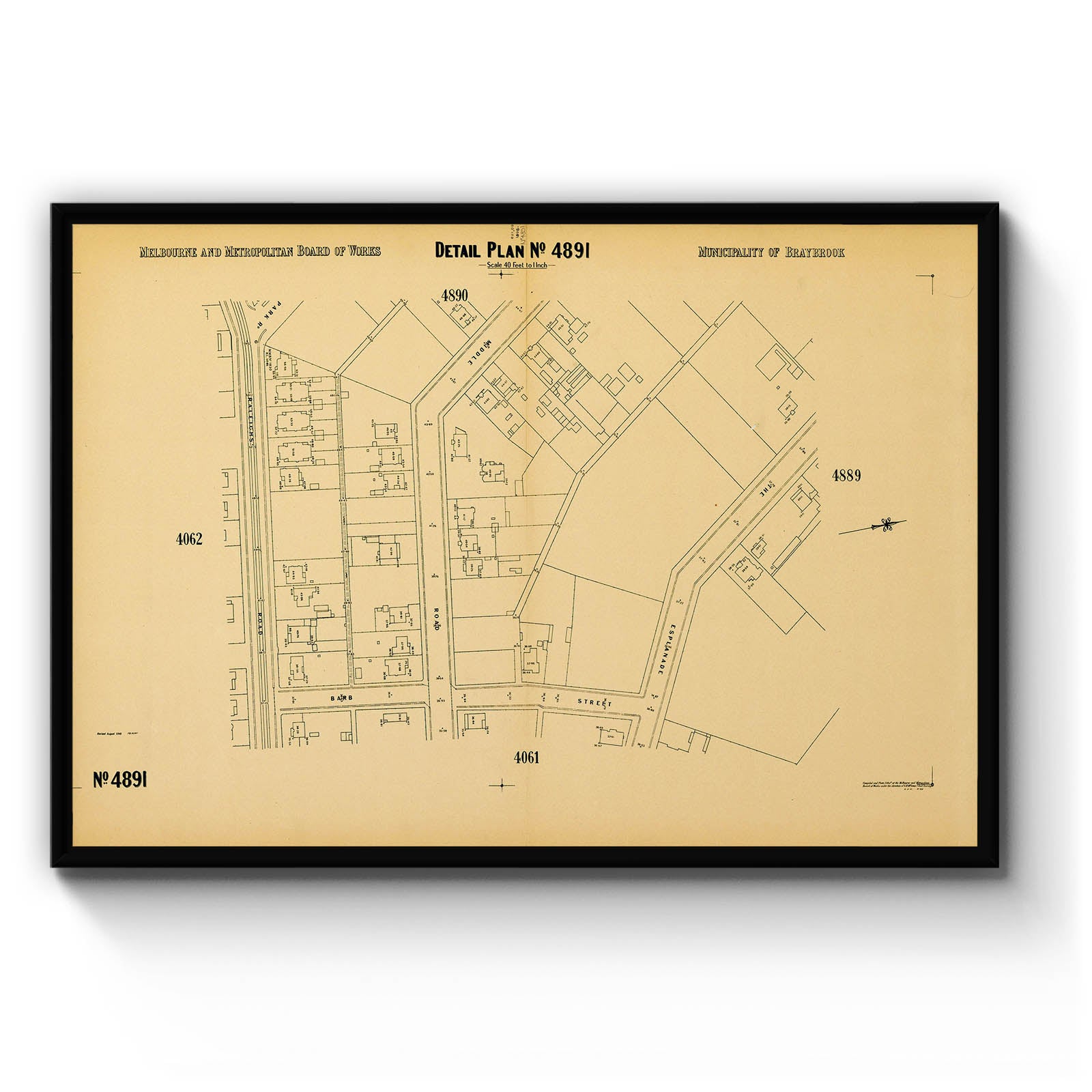 Recently moving to Harcourt and being interested in the history of the area, it seemed fitting to purchase a vintage map of the area which is displayed on our kitchen wall for us to study easily, identifying the block of land we bought. Nicely framed too.