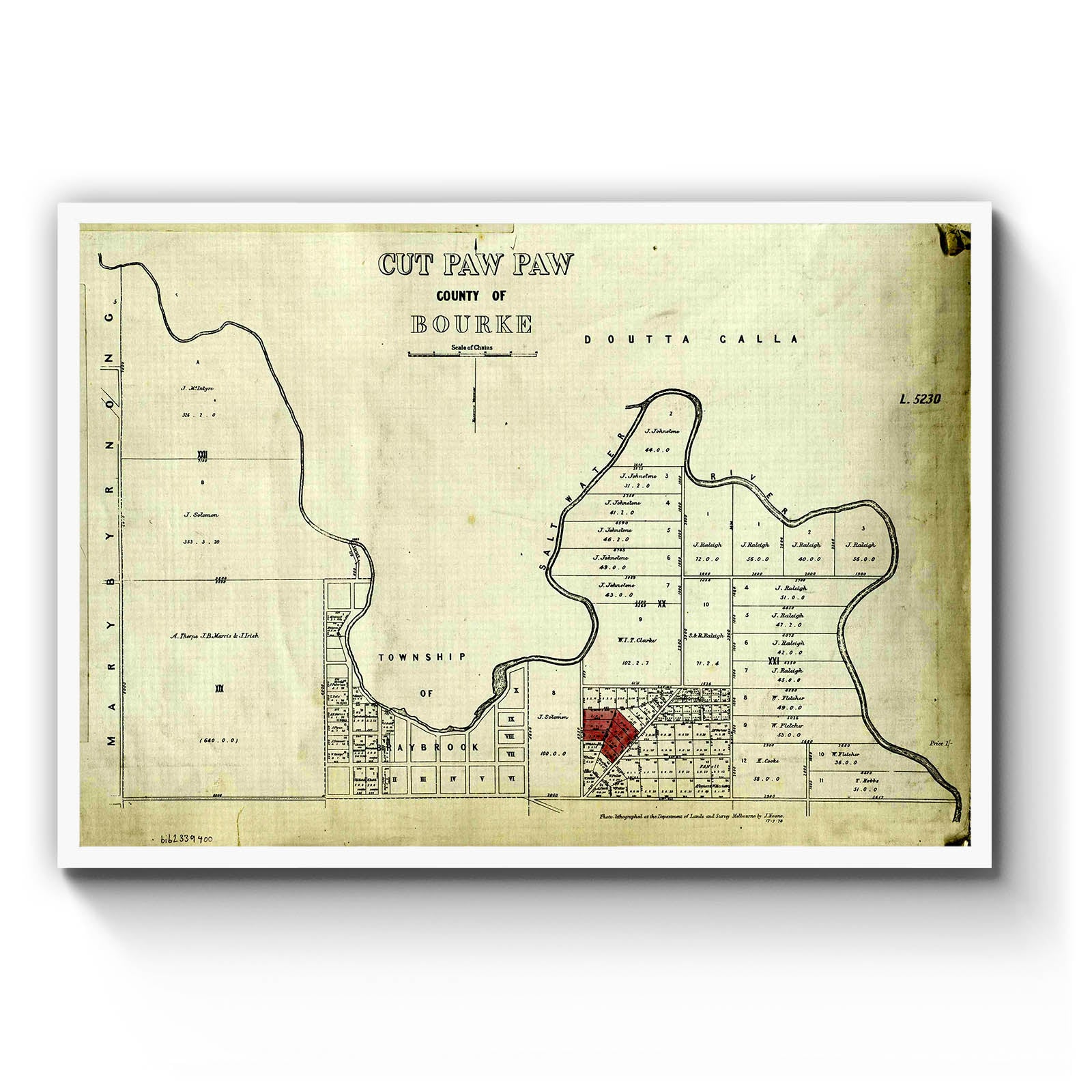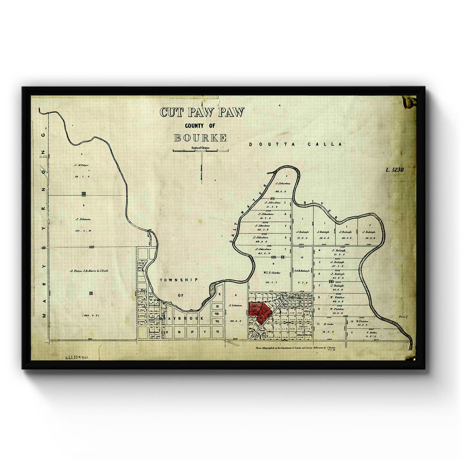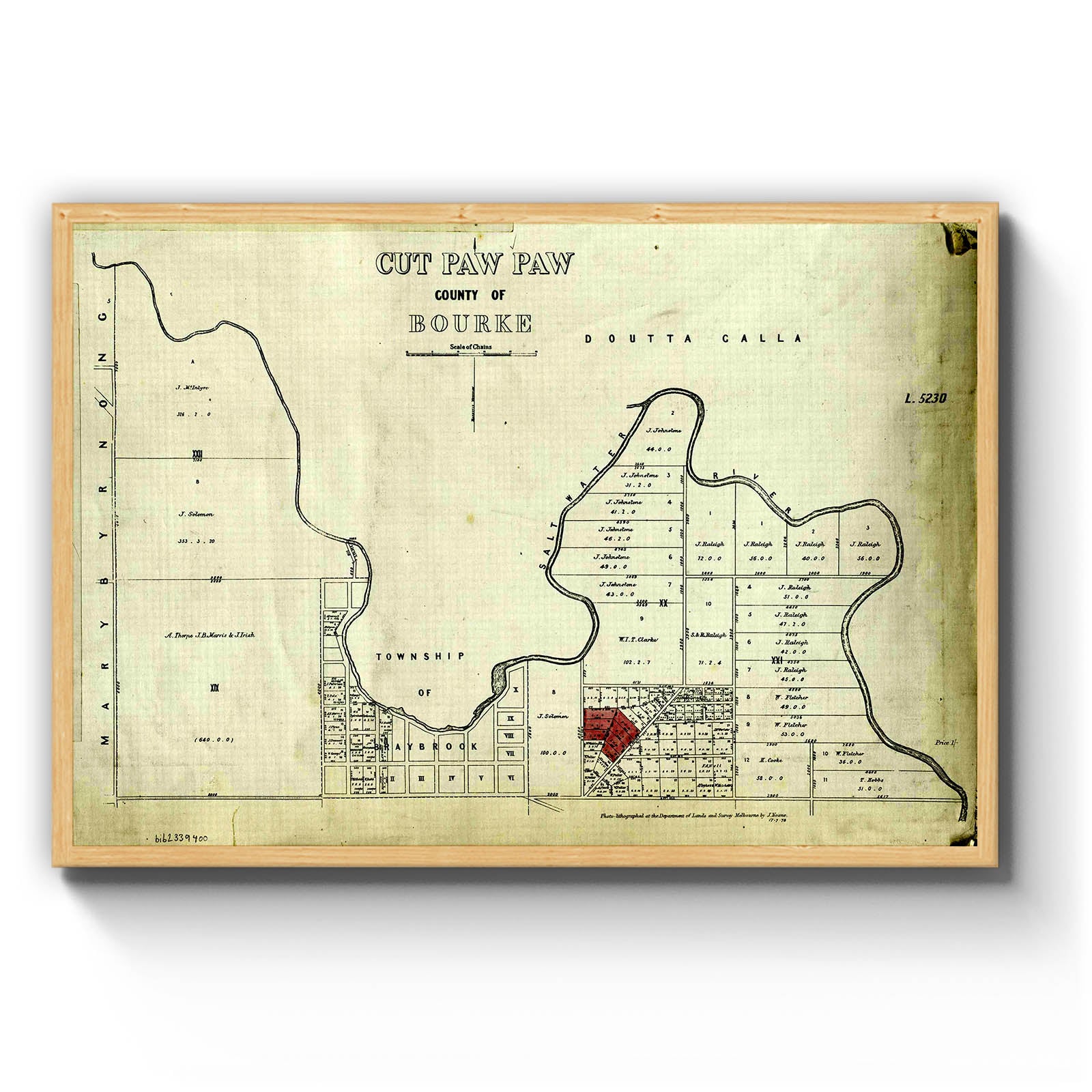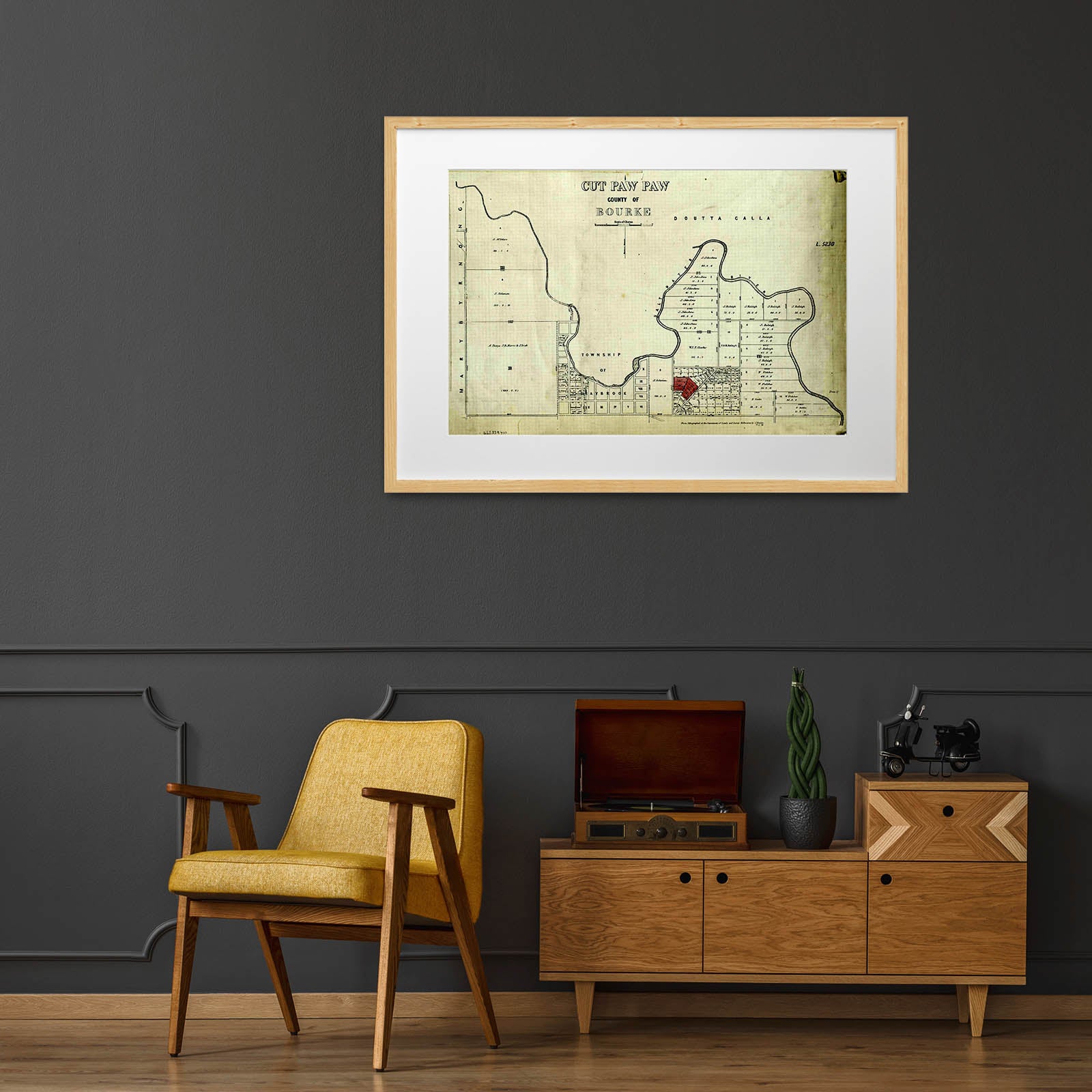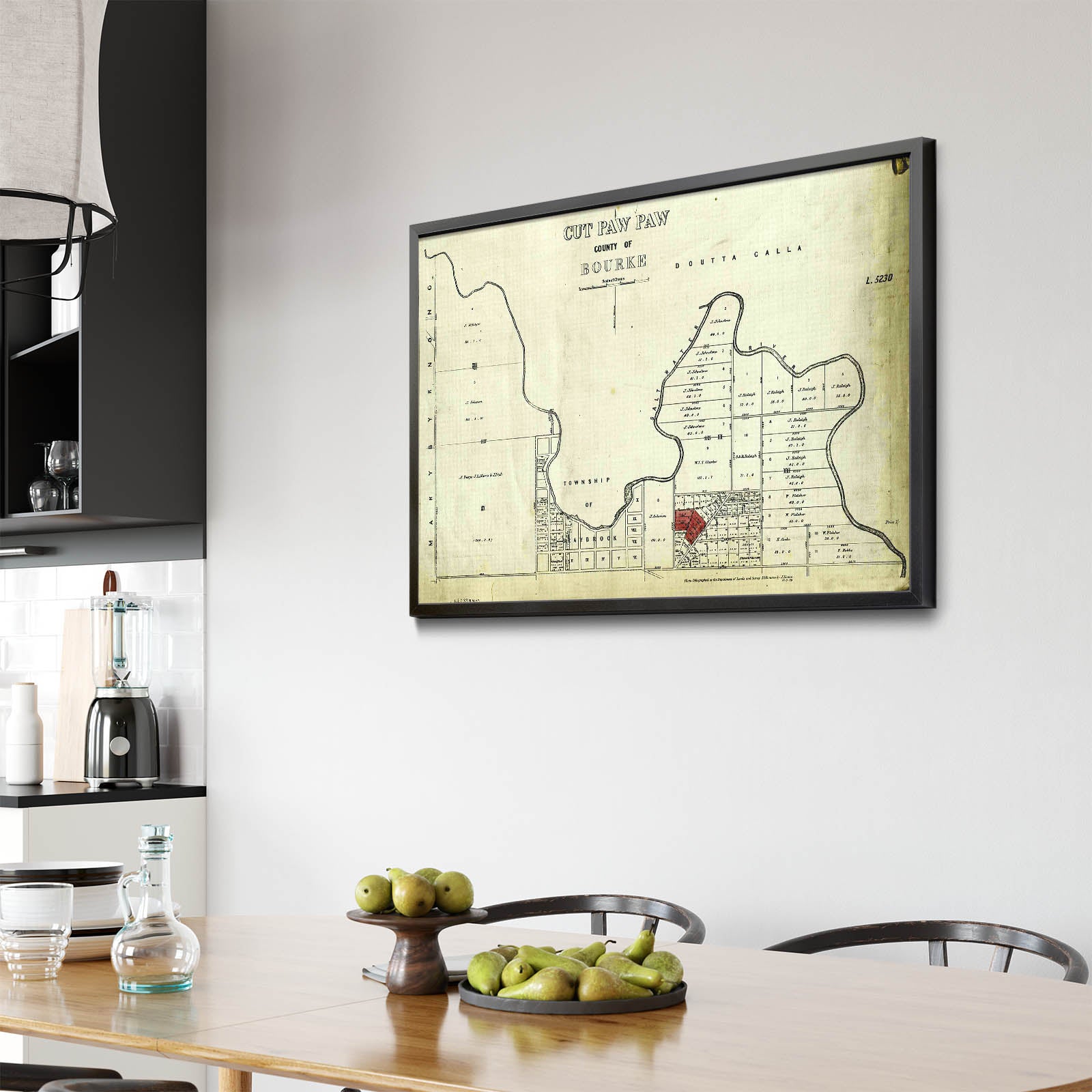 Recently moving to Harcourt and being interested in the history of the area, it seemed fitting to purchase a vintage map of the area which is displayed on our kitchen wall for us to study easily, identifying the block of land we bought. Nicely framed too.