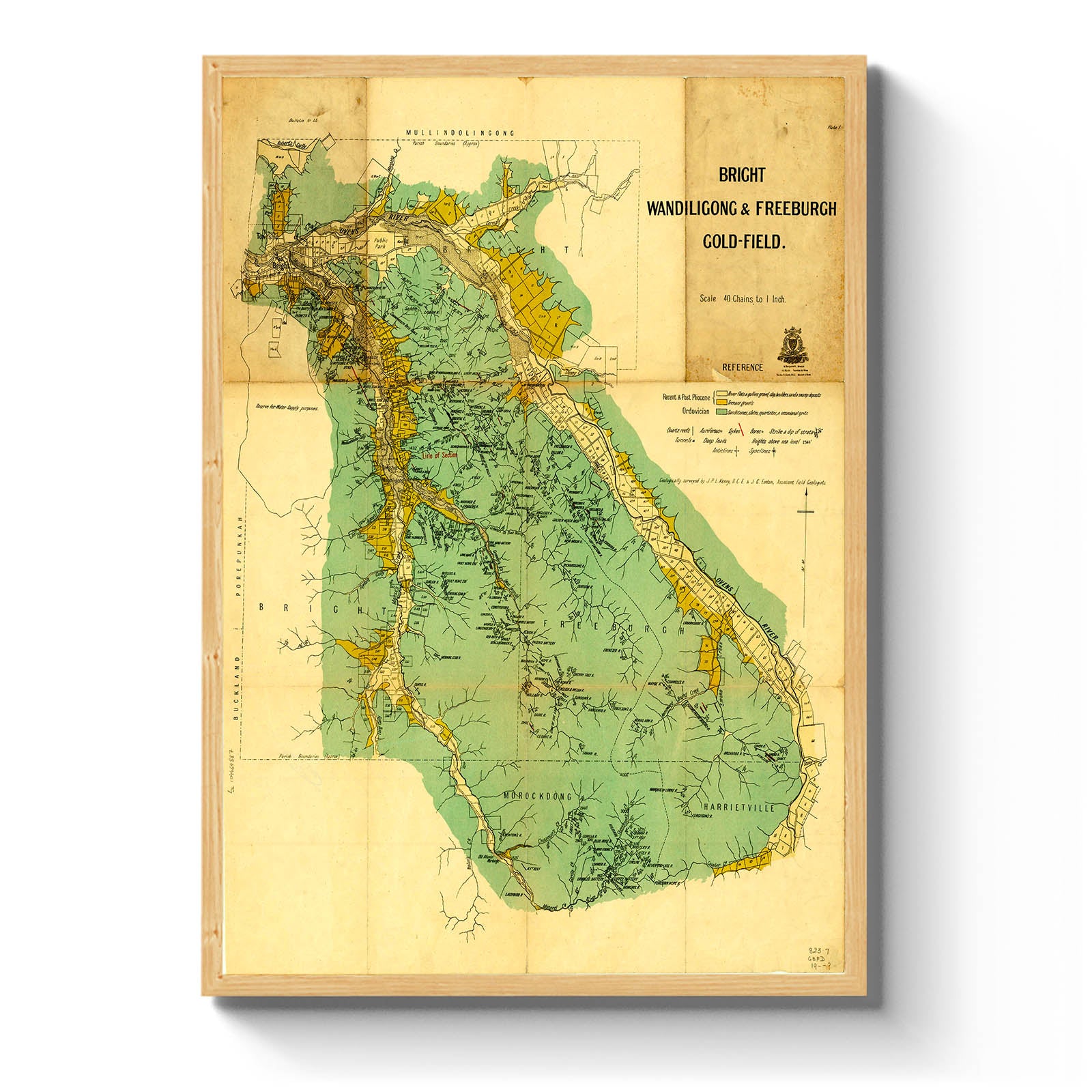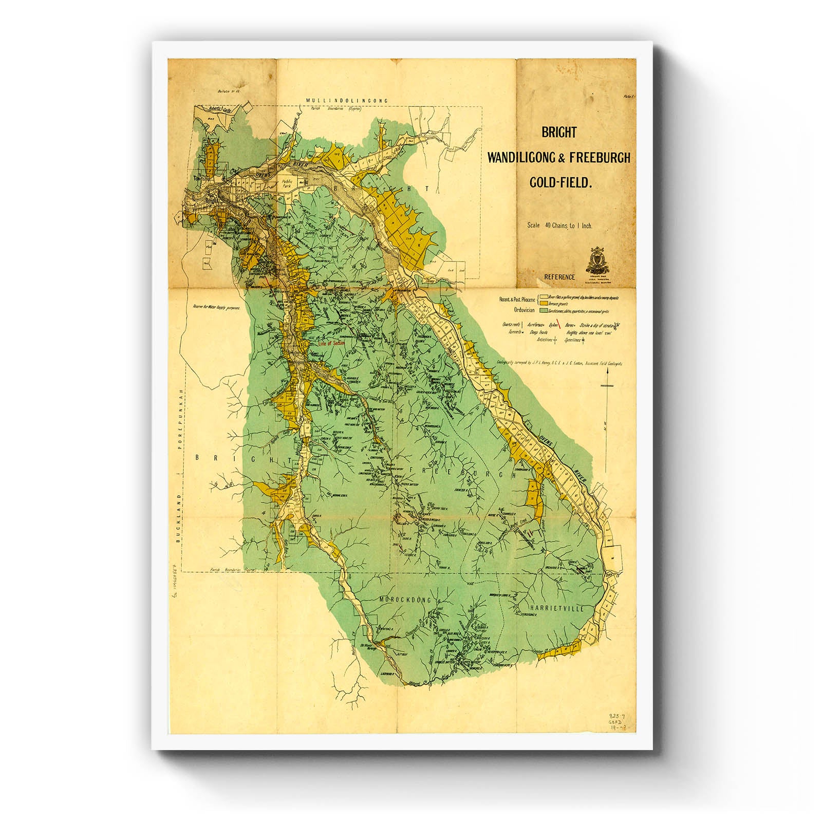Bright, Wandiligong & Freeburgh gold-field [cartographic material] / geologically surveyed by J.P.L. Kenny & J.G. Easton. [1925] "Plate I"