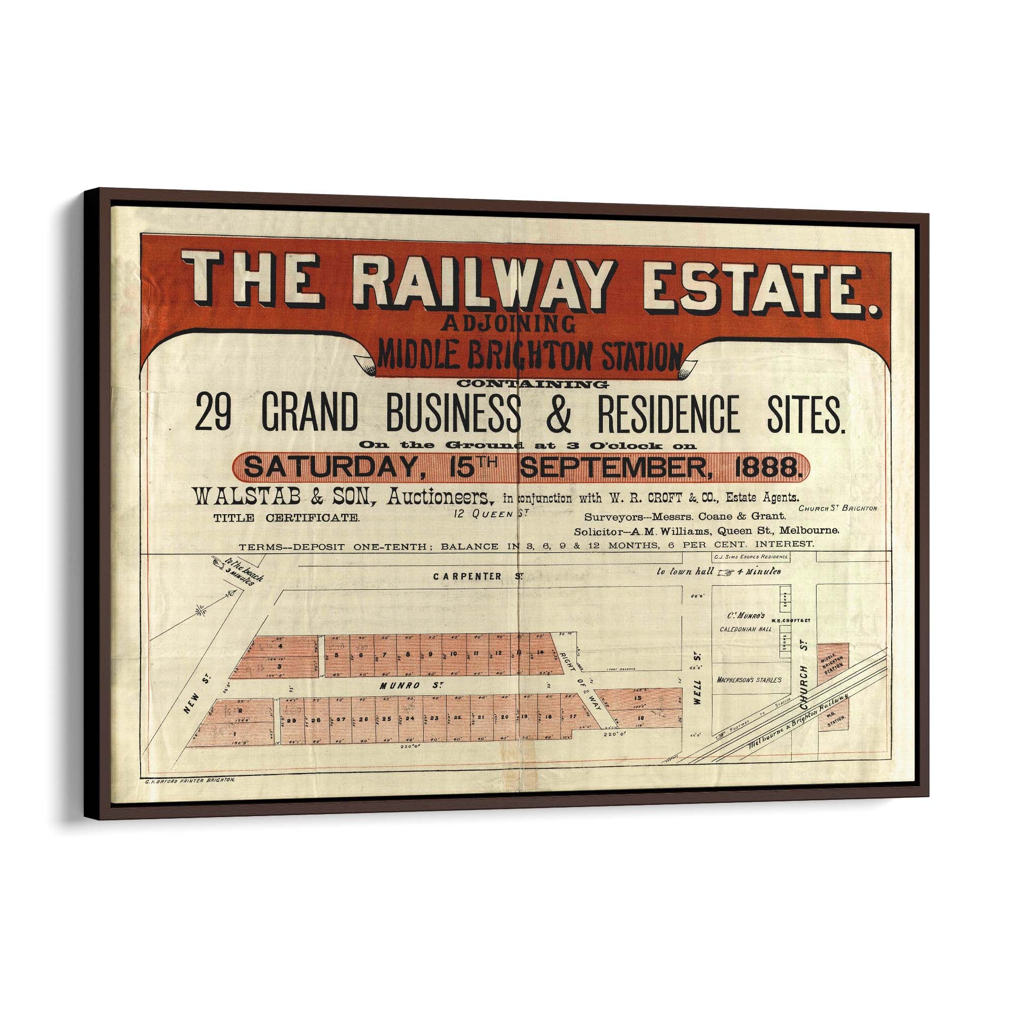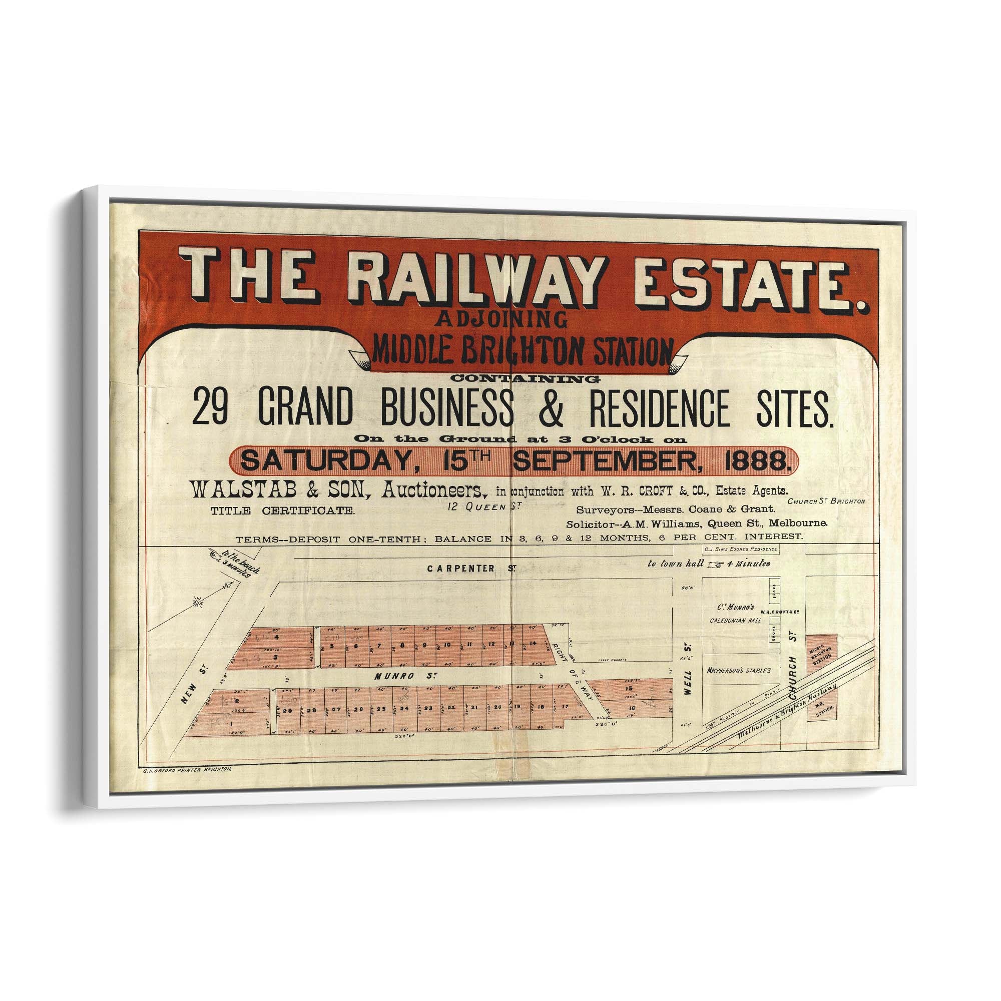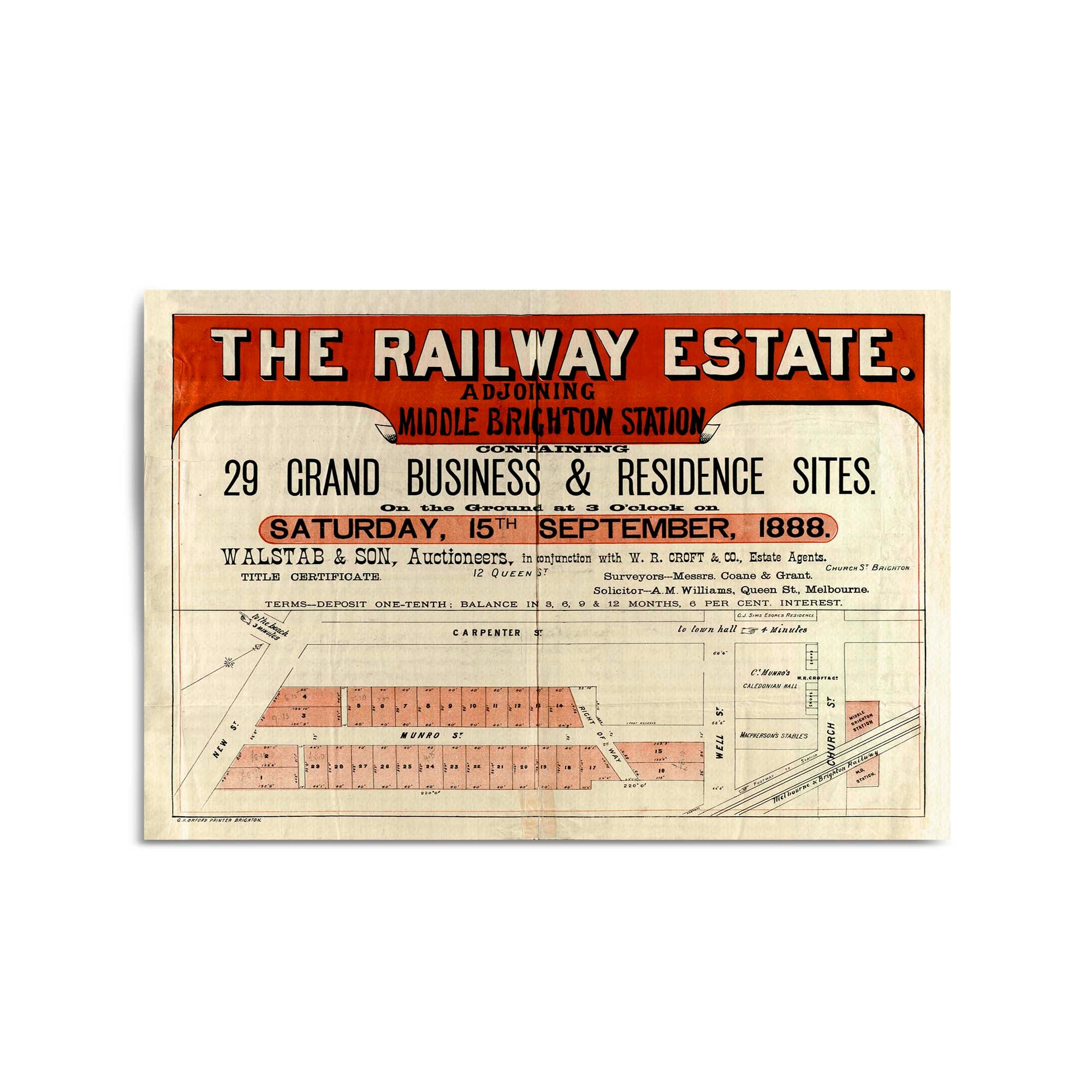 "Containing 29 grand business & residence sites, on the ground at 3 o'clock on Saturday, 15th September, 1888".