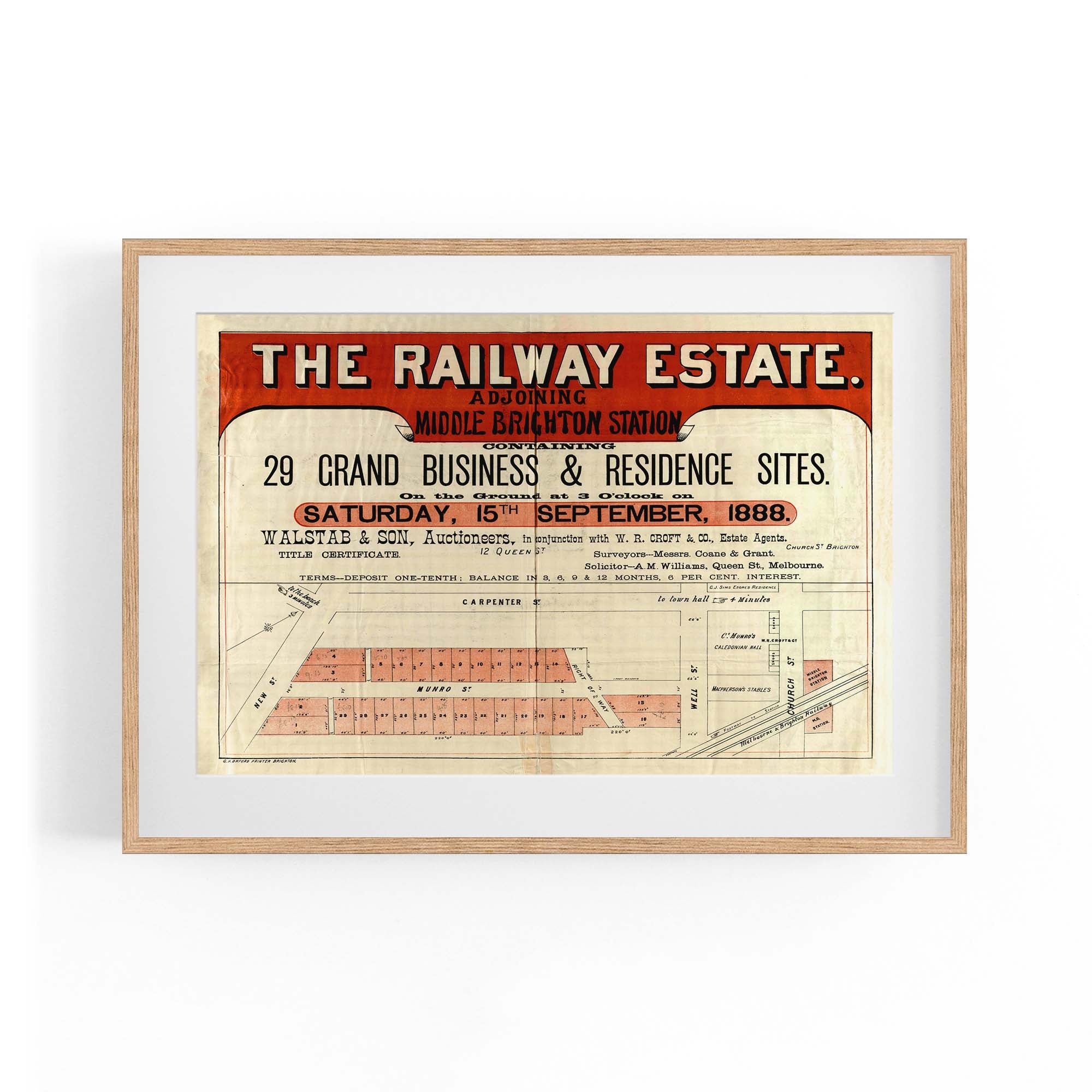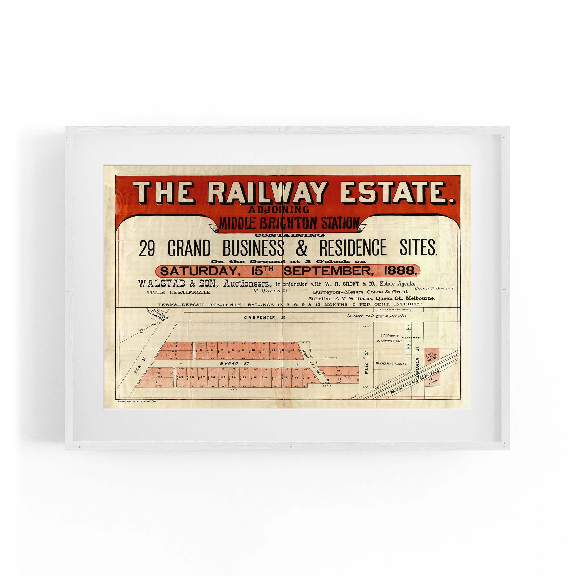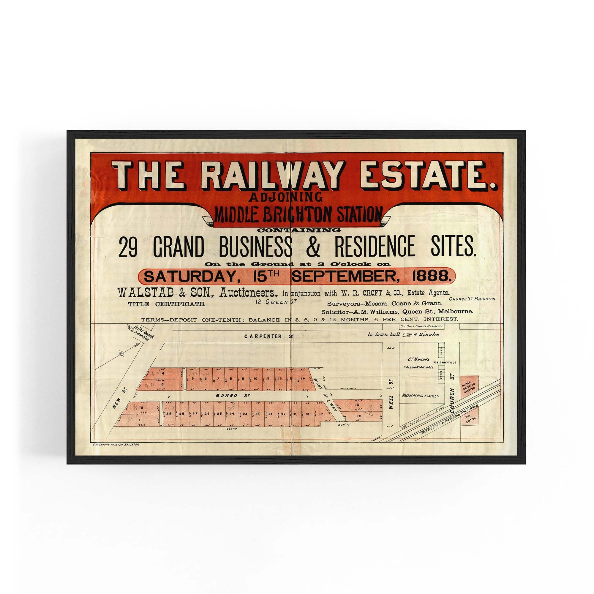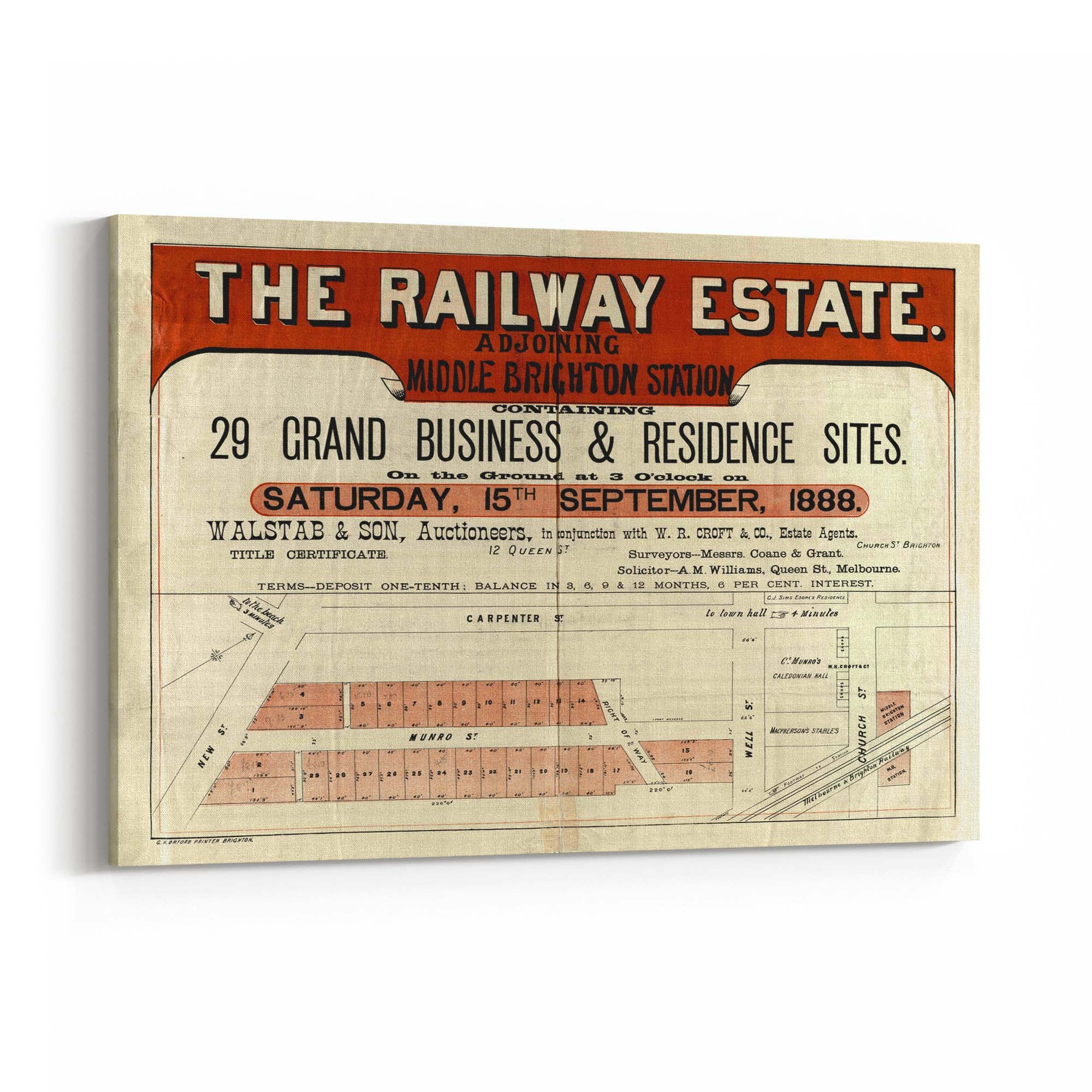 "Containing 29 grand business & residence sites, on the ground at 3 o'clock on Saturday, 15th September, 1888".