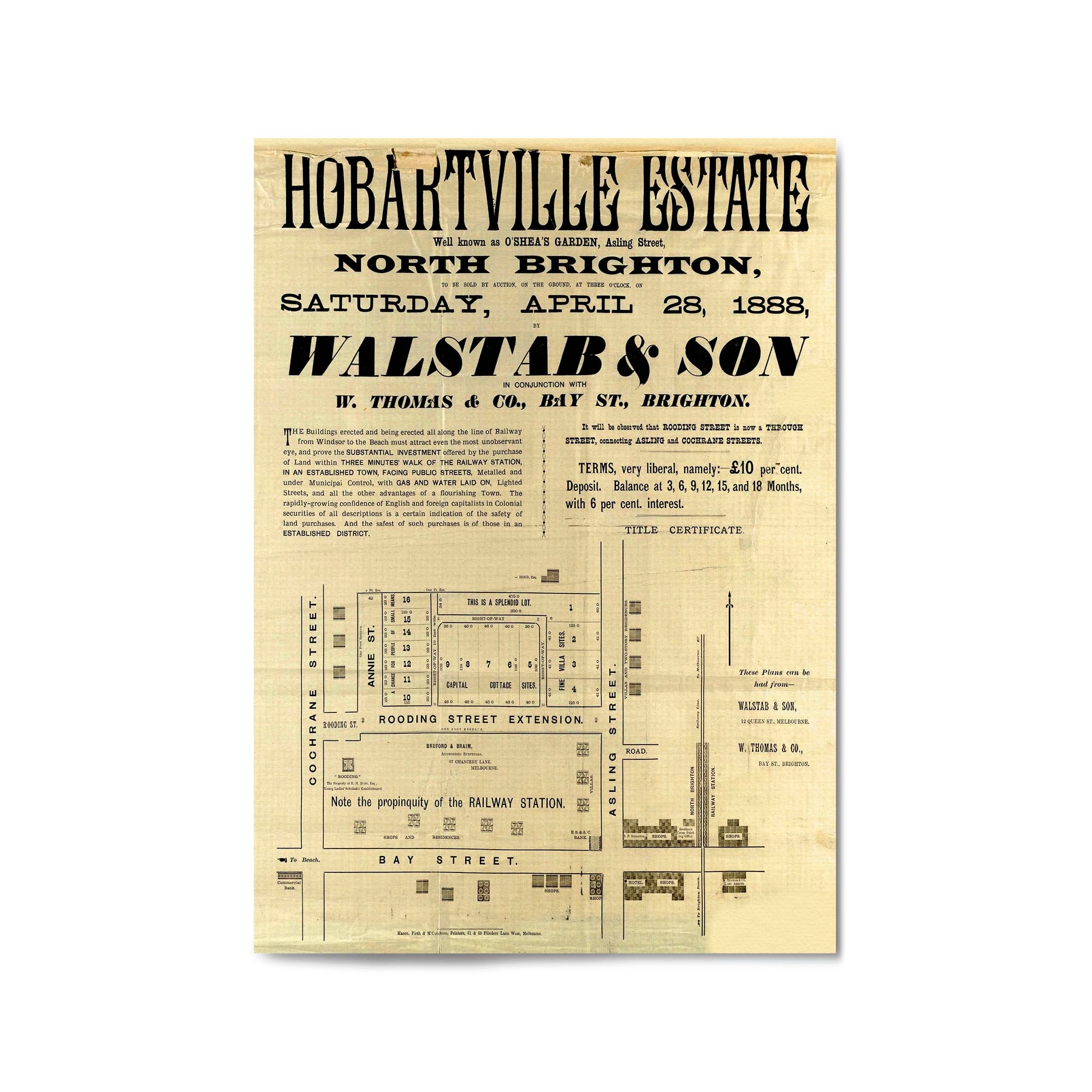 "To be sold by auction, on the ground, at three o'clock, on Saturday, April 28, 1888, by Walstab & Son in conjunction with W. Thomas & Co., Bay St., Brighton".
