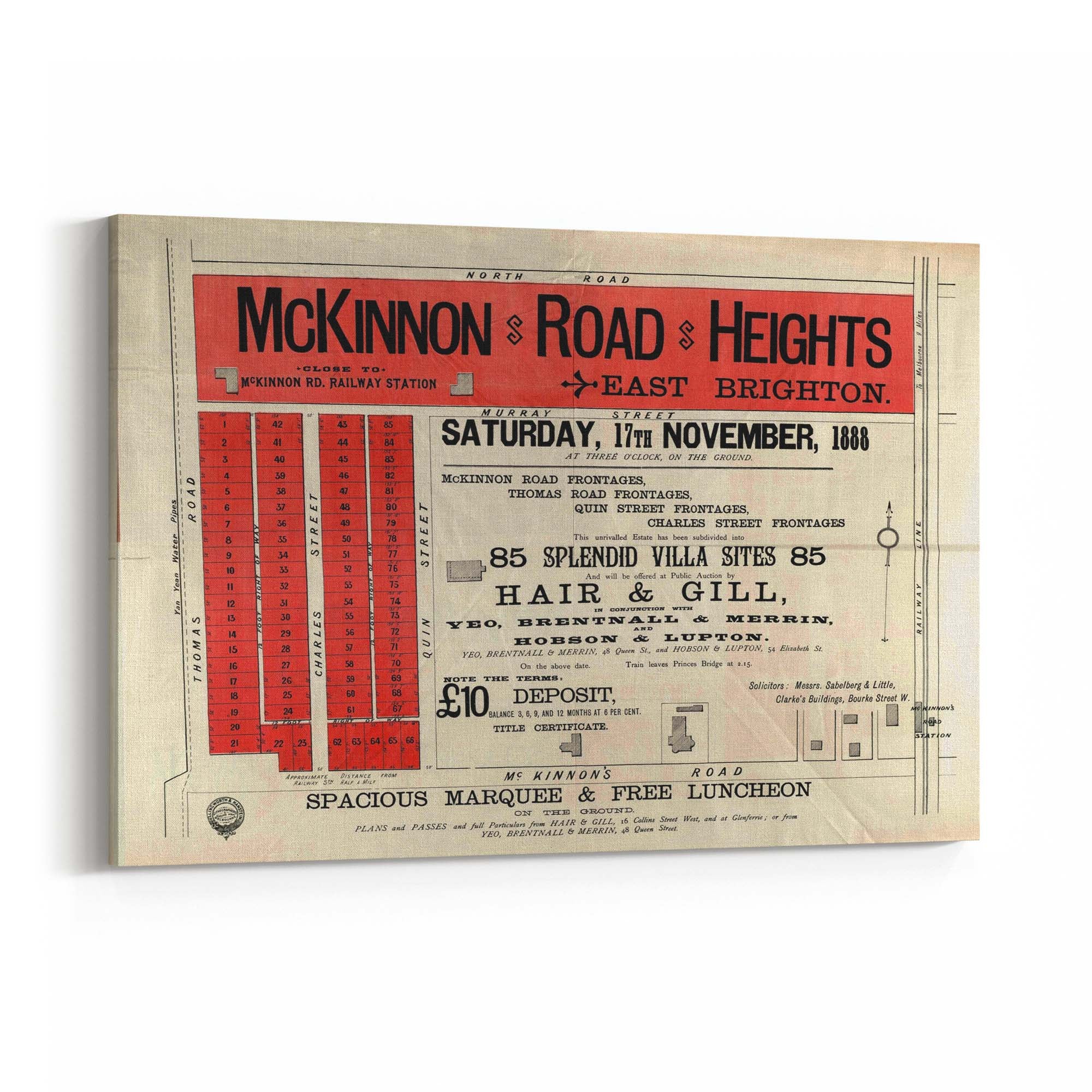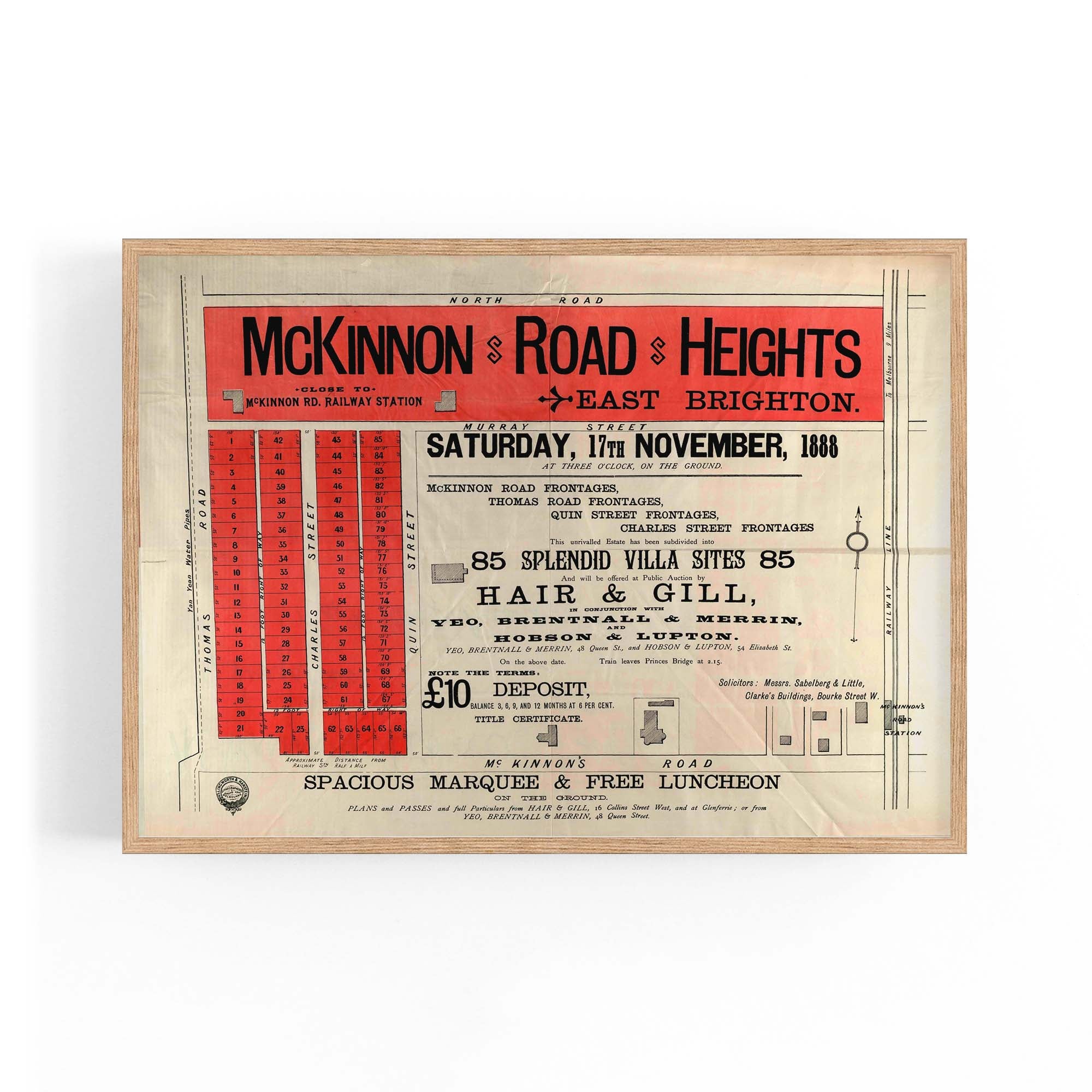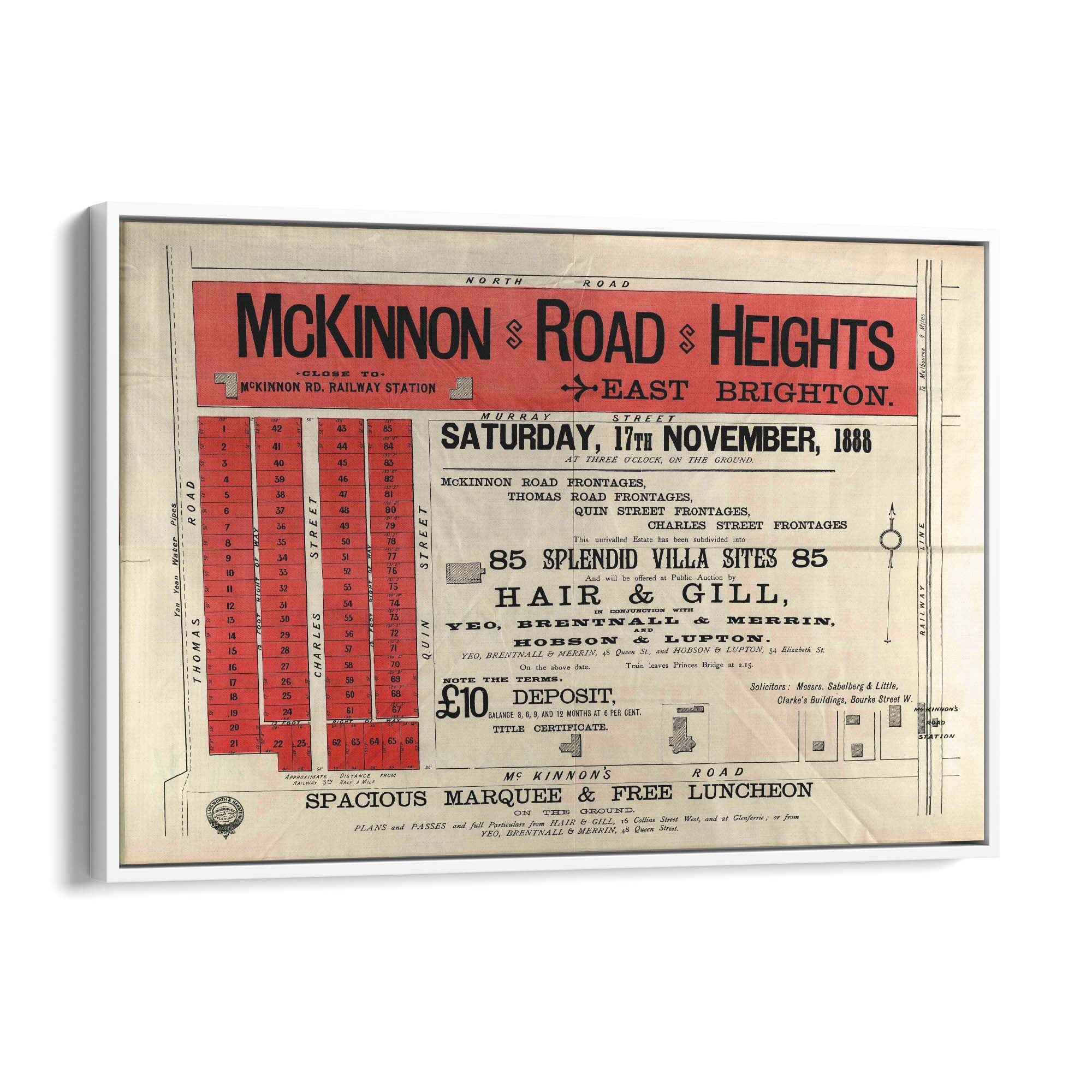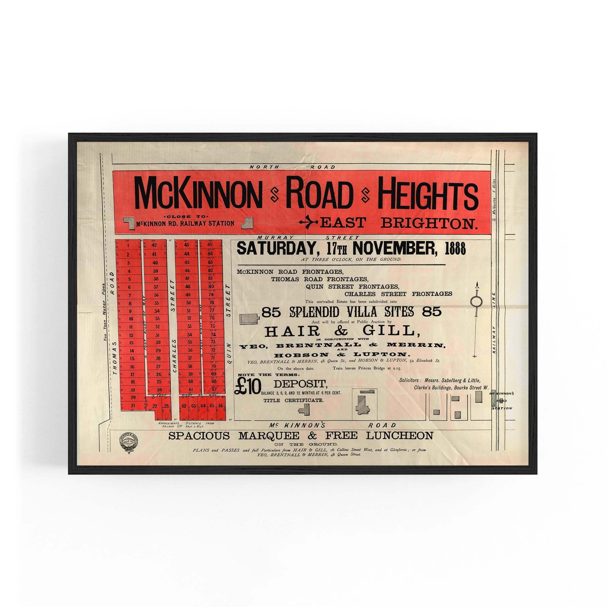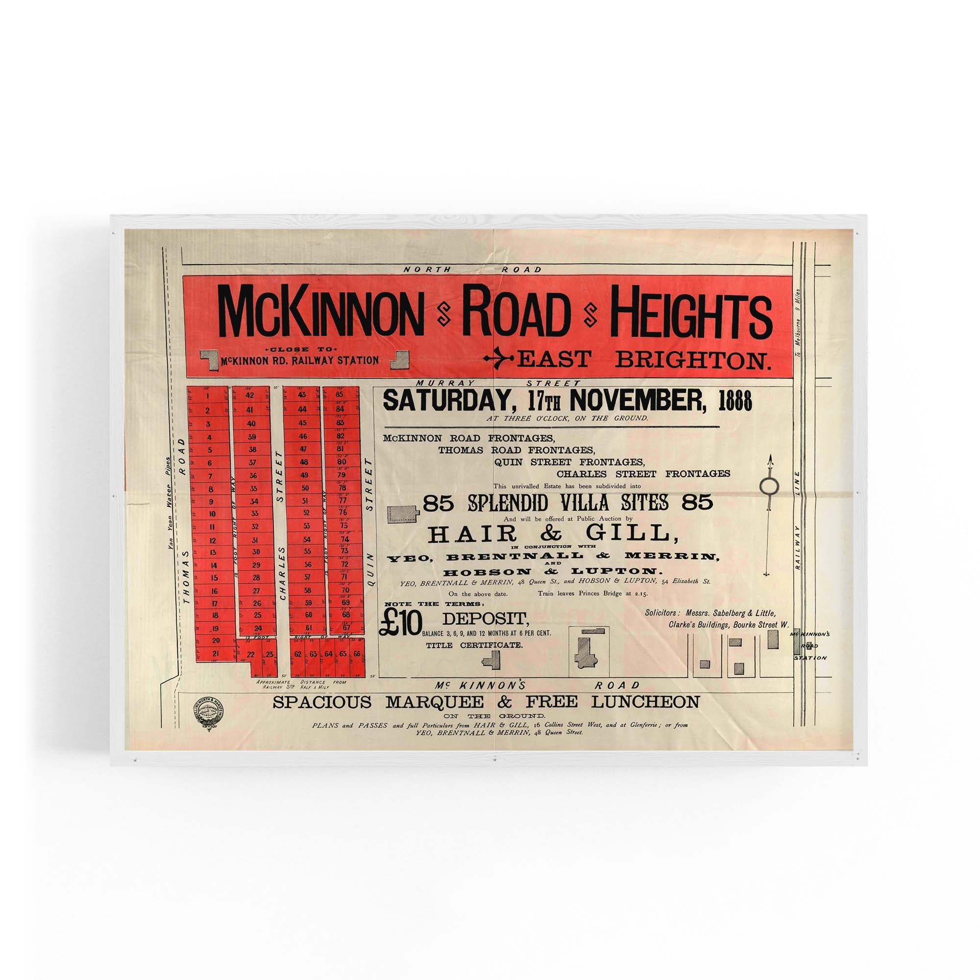 1888 Vintage Map of Brighton, Victoria Australia