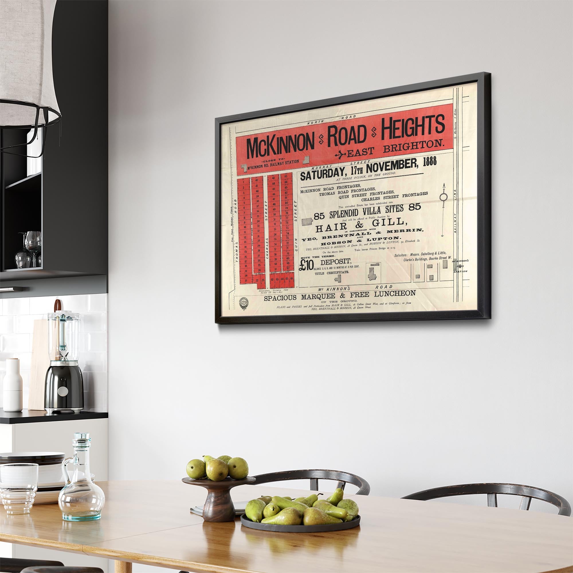 Recently moving to Harcourt and being interested in the history of the area, it seemed fitting to purchase a vintage map of the area which is displayed on our kitchen wall for us to study easily, identifying the block of land we bought. Nicely framed too.