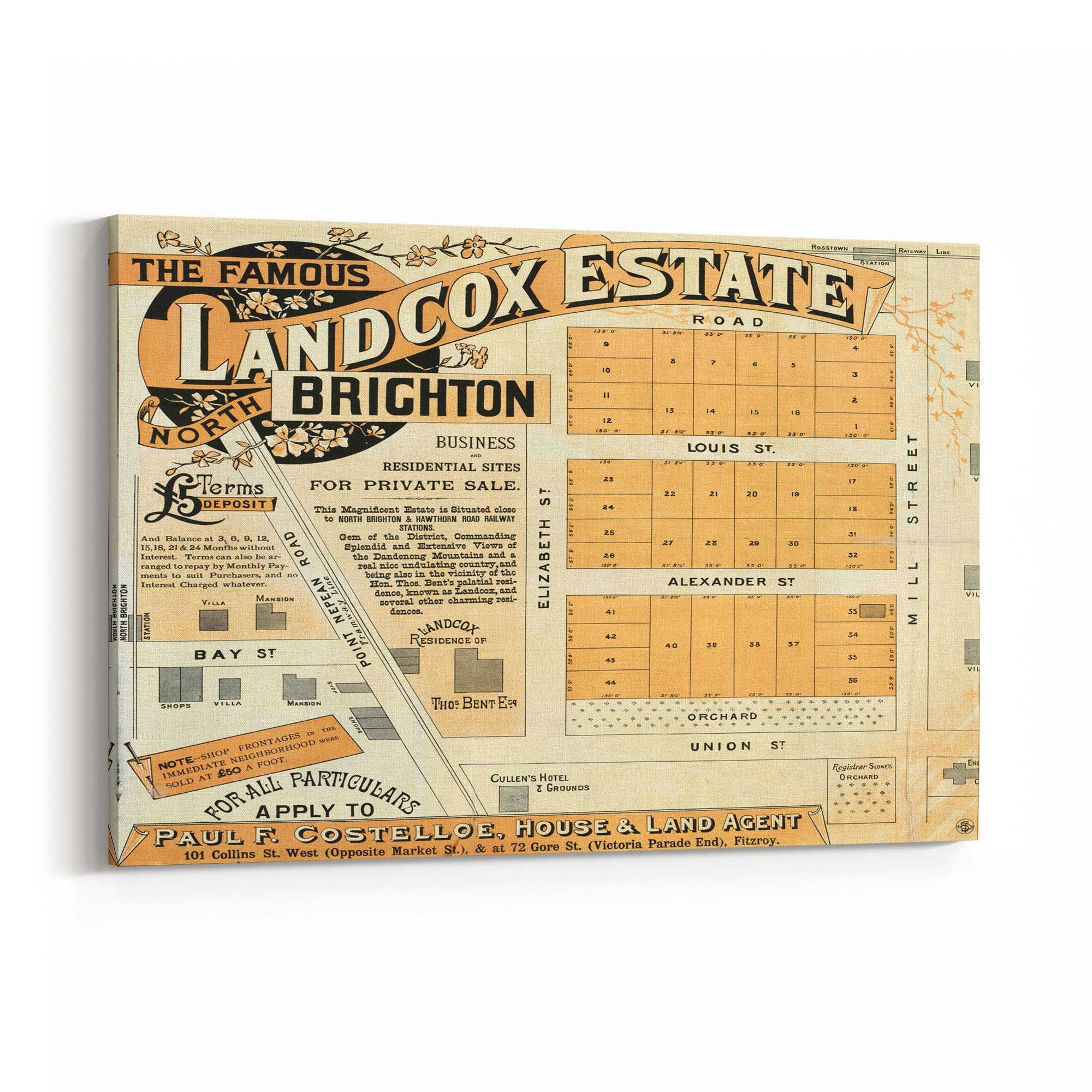 Indicates the location of Hawthorn Road railway station on the Rosstown railway line. Shows the location of "the Hon. Thomas Bent's palatial residence, known as Landcox".
