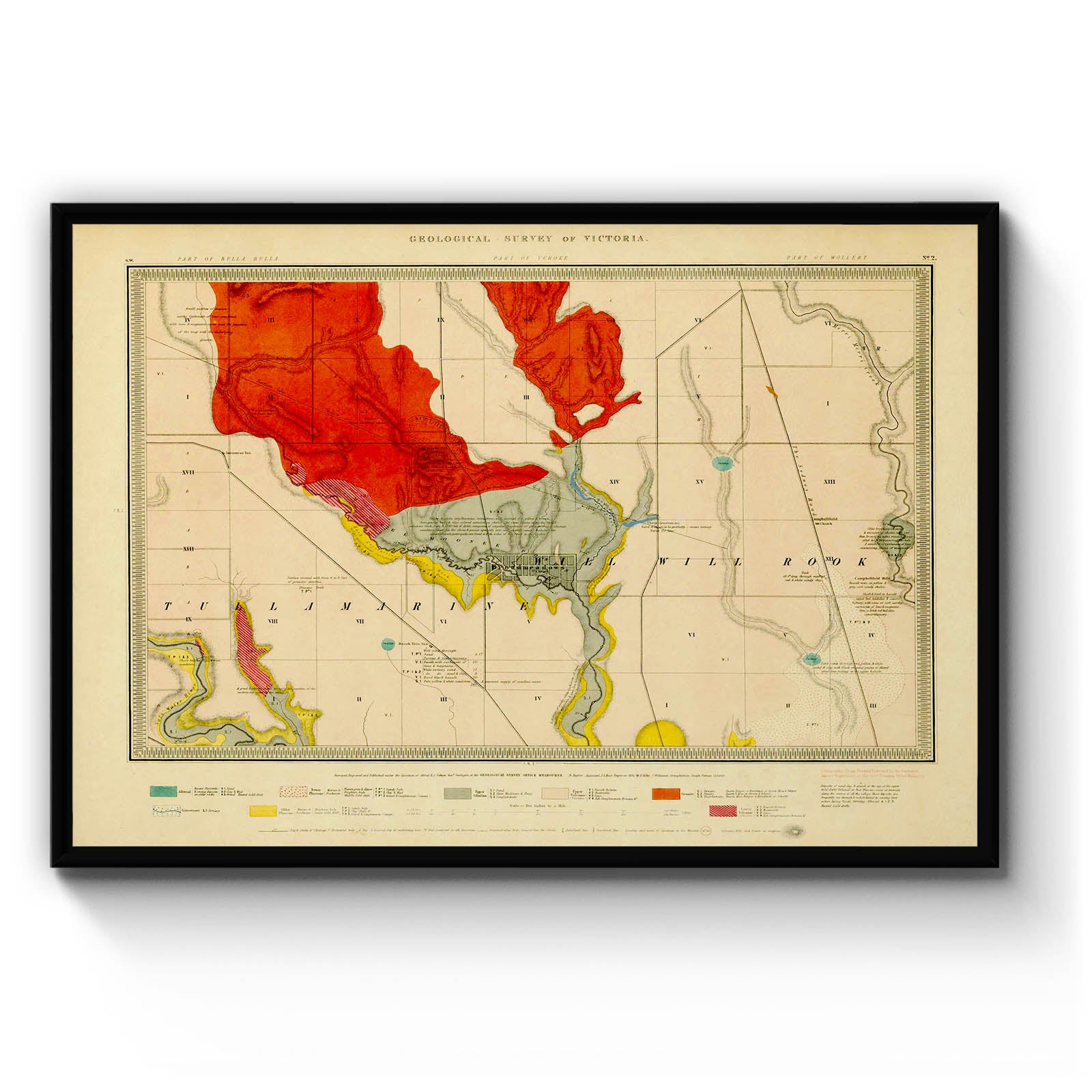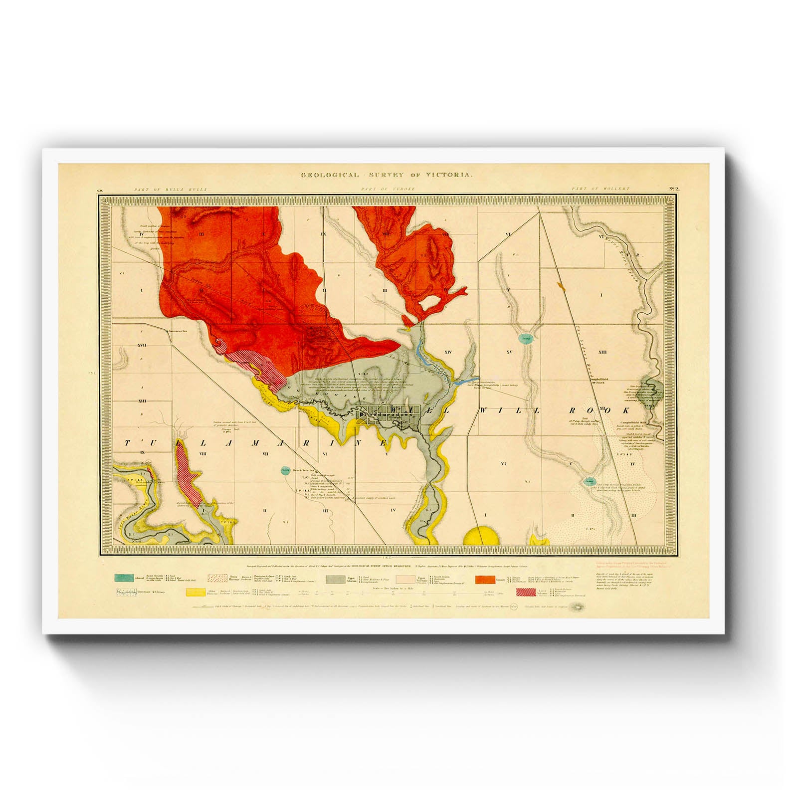 [Parts of parishes of Bulla Bulla, Yuroke, Will Will Rook and Tullamarine] [cartographic material] / surveyed, engraved and published under the direction of Alfred. R.C Selwyn, Govt. Geologist at the Geological Survey Office, melbourne ; N. Taylor, Assistant ; hills by E. Gilks ; J. Wilkinson, Draughtsman. [1860]