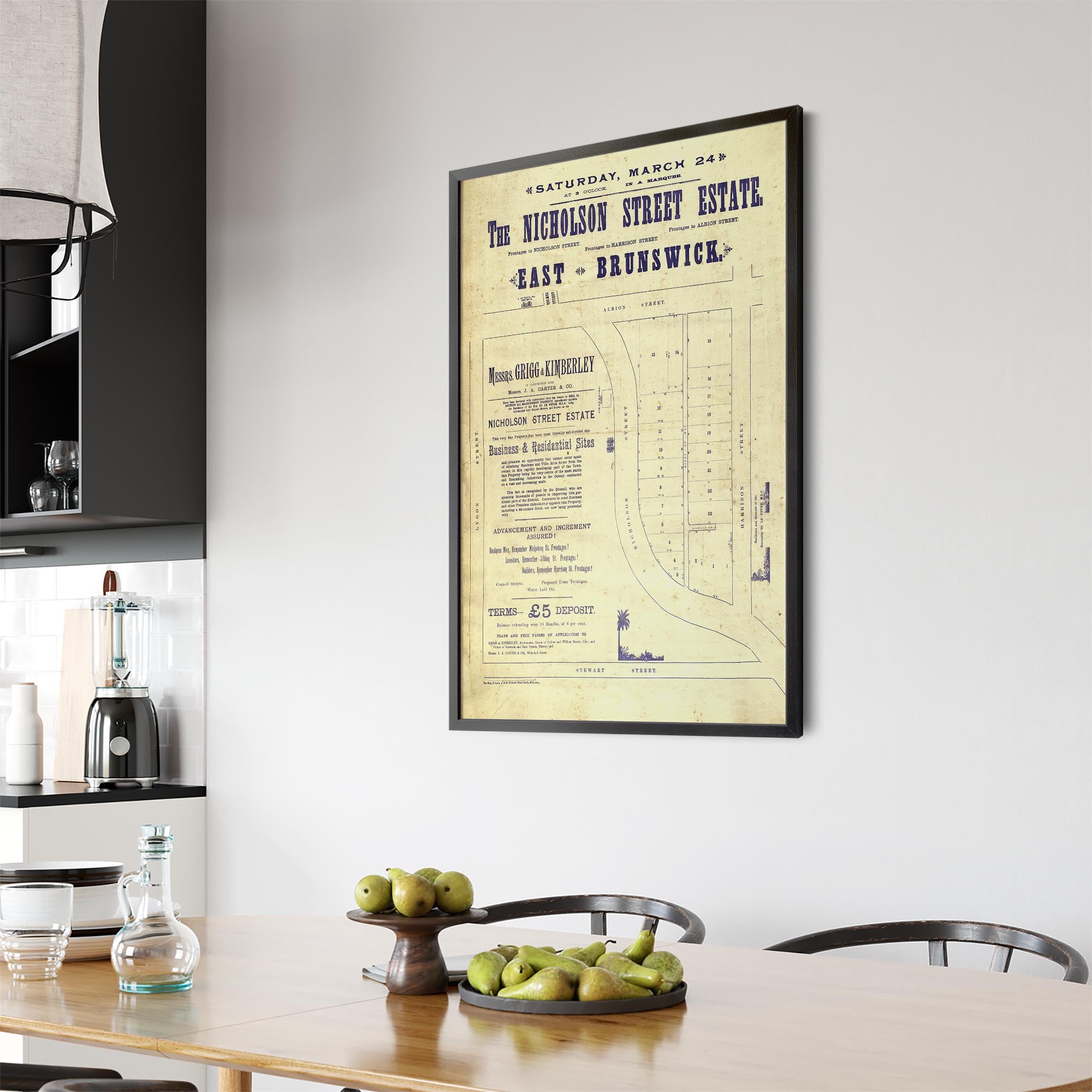 Recently moving to Harcourt and being interested in the history of the area, it seemed fitting to purchase a vintage map of the area which is displayed on our kitchen wall for us to study easily, identifying the block of land we bought. Nicely framed too.