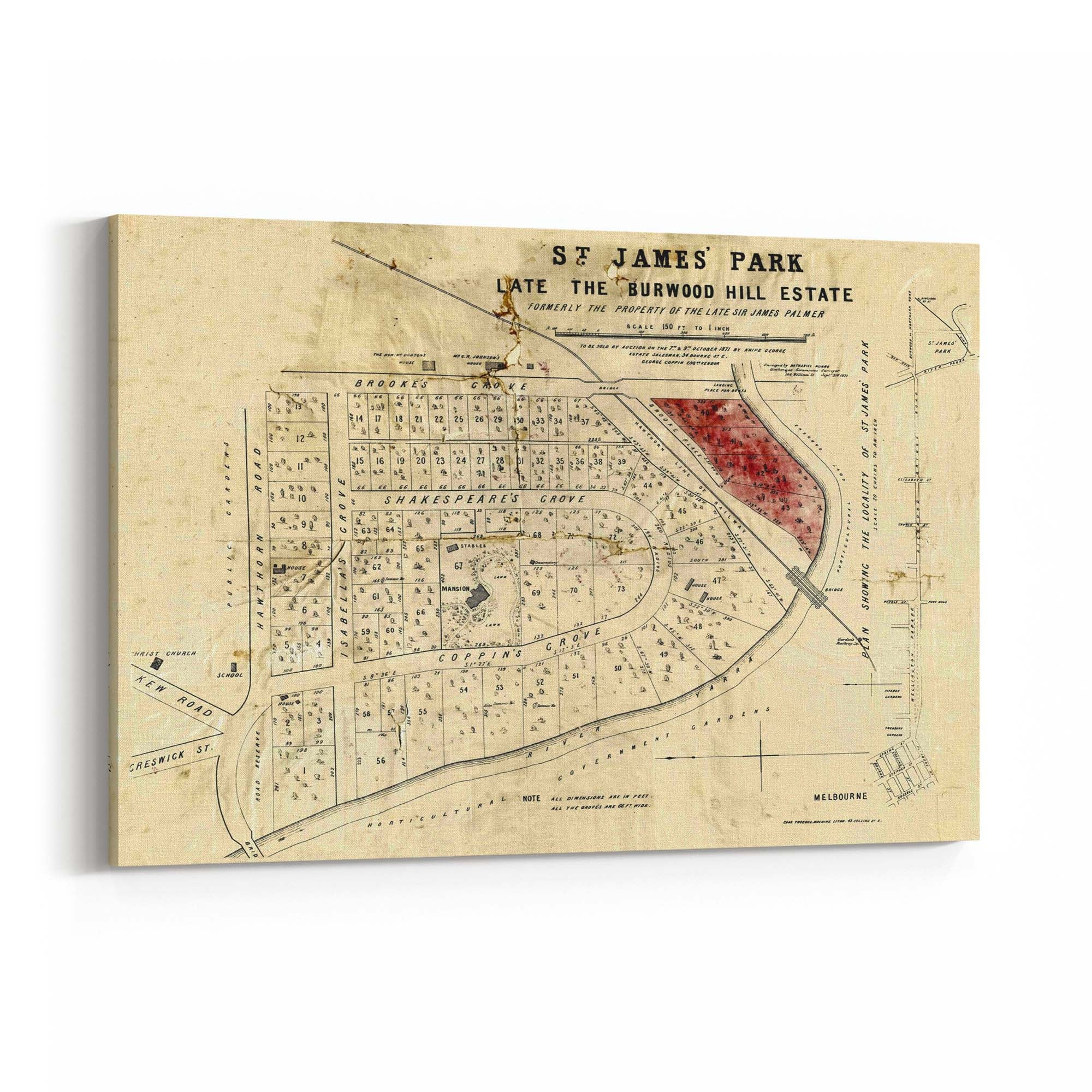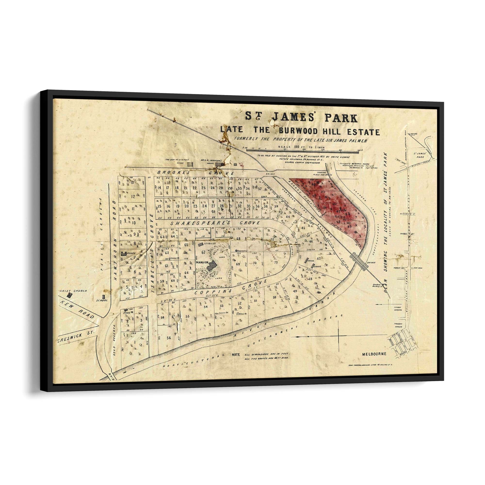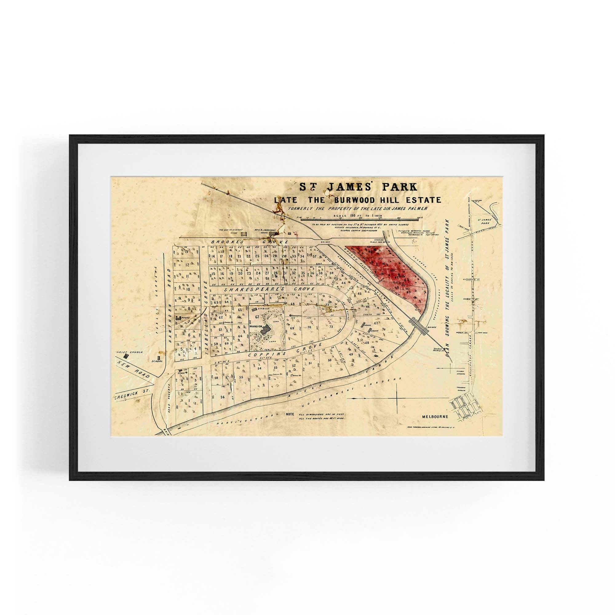 1871 Vintage Map of Burnley, Victoria Australia